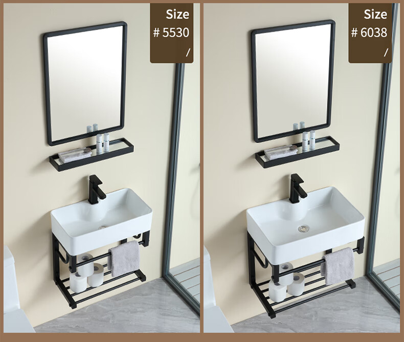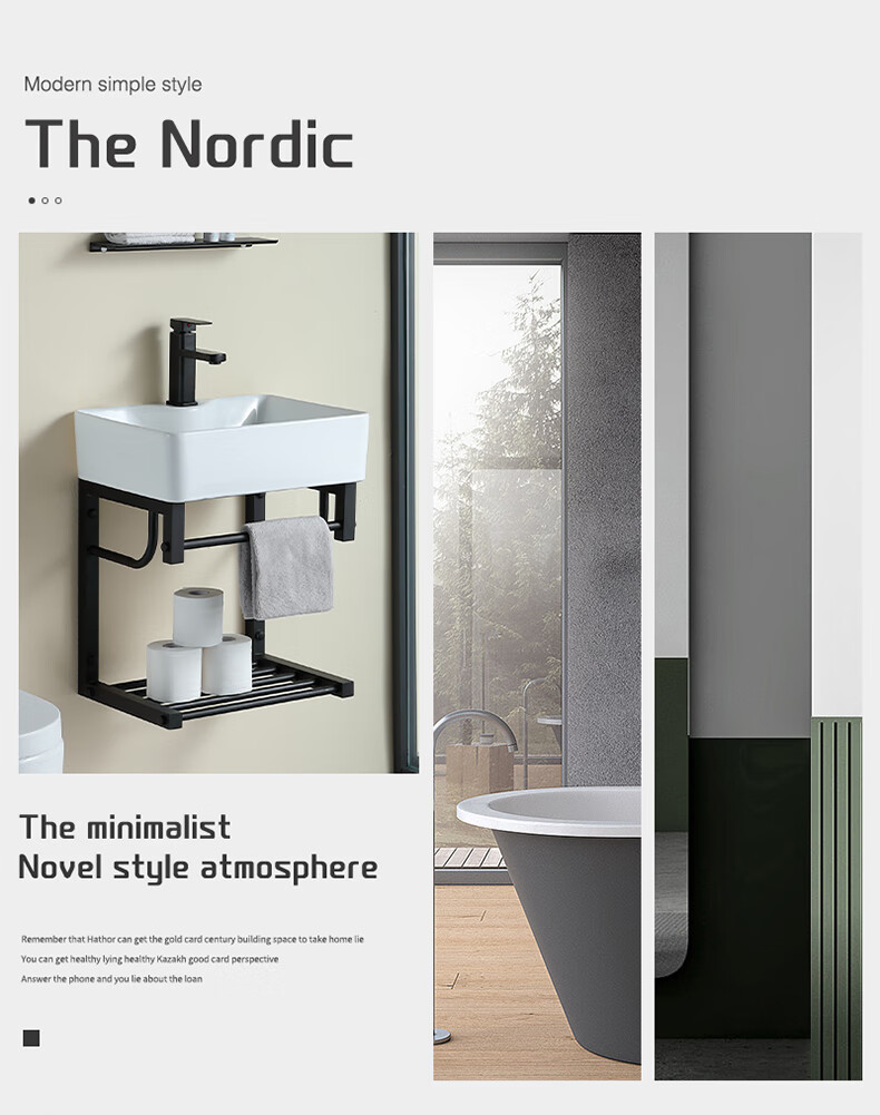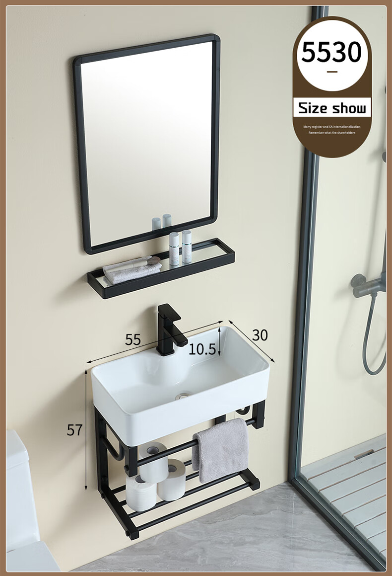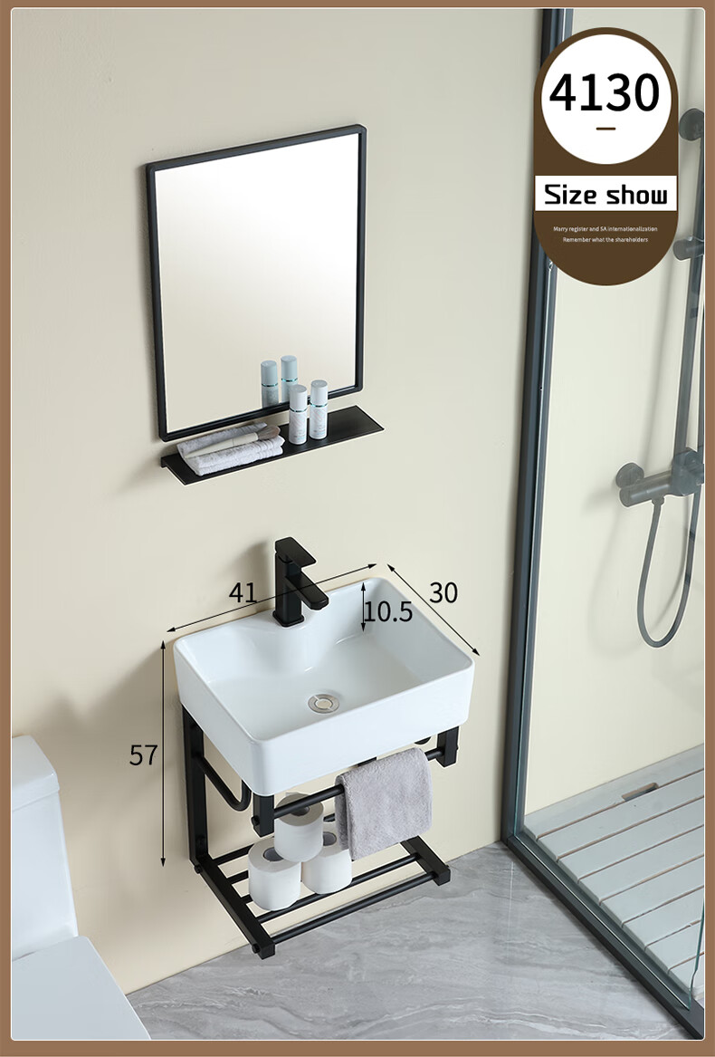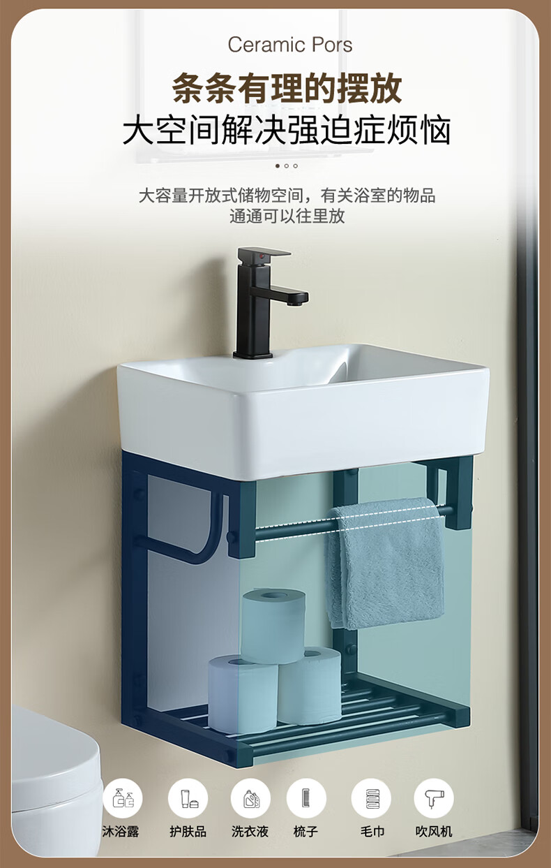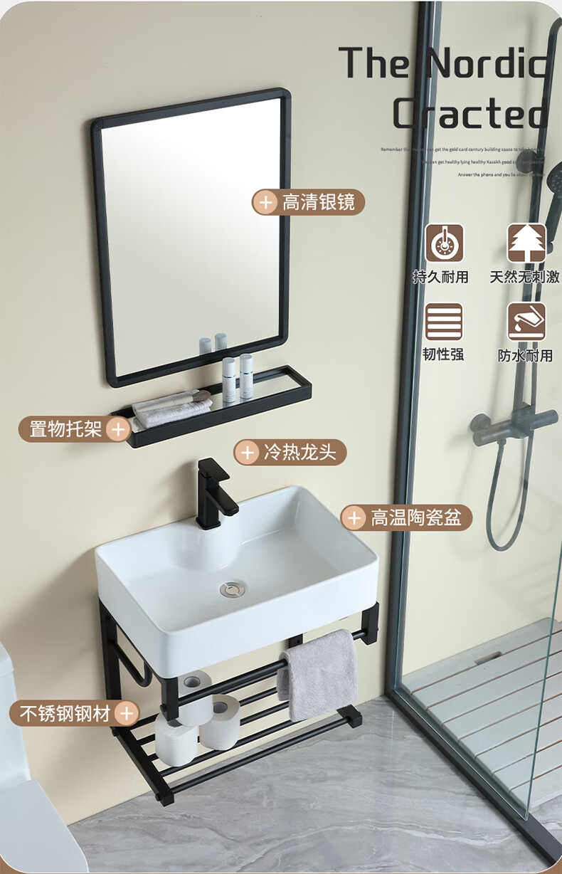 毅越挂墙式洗手盆简约陶瓷洗脸盆卫生间阳台支架挂盆家用面盆池洗漱台 D款+4837黑鹿盆(送龙头)