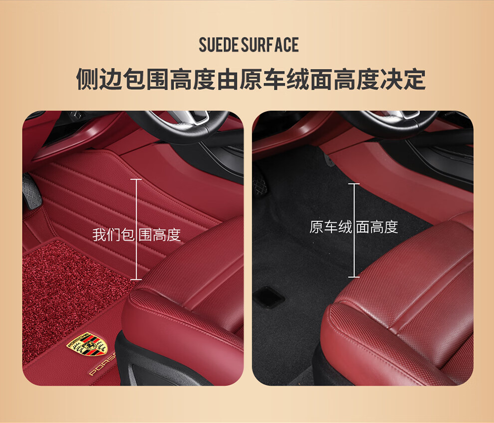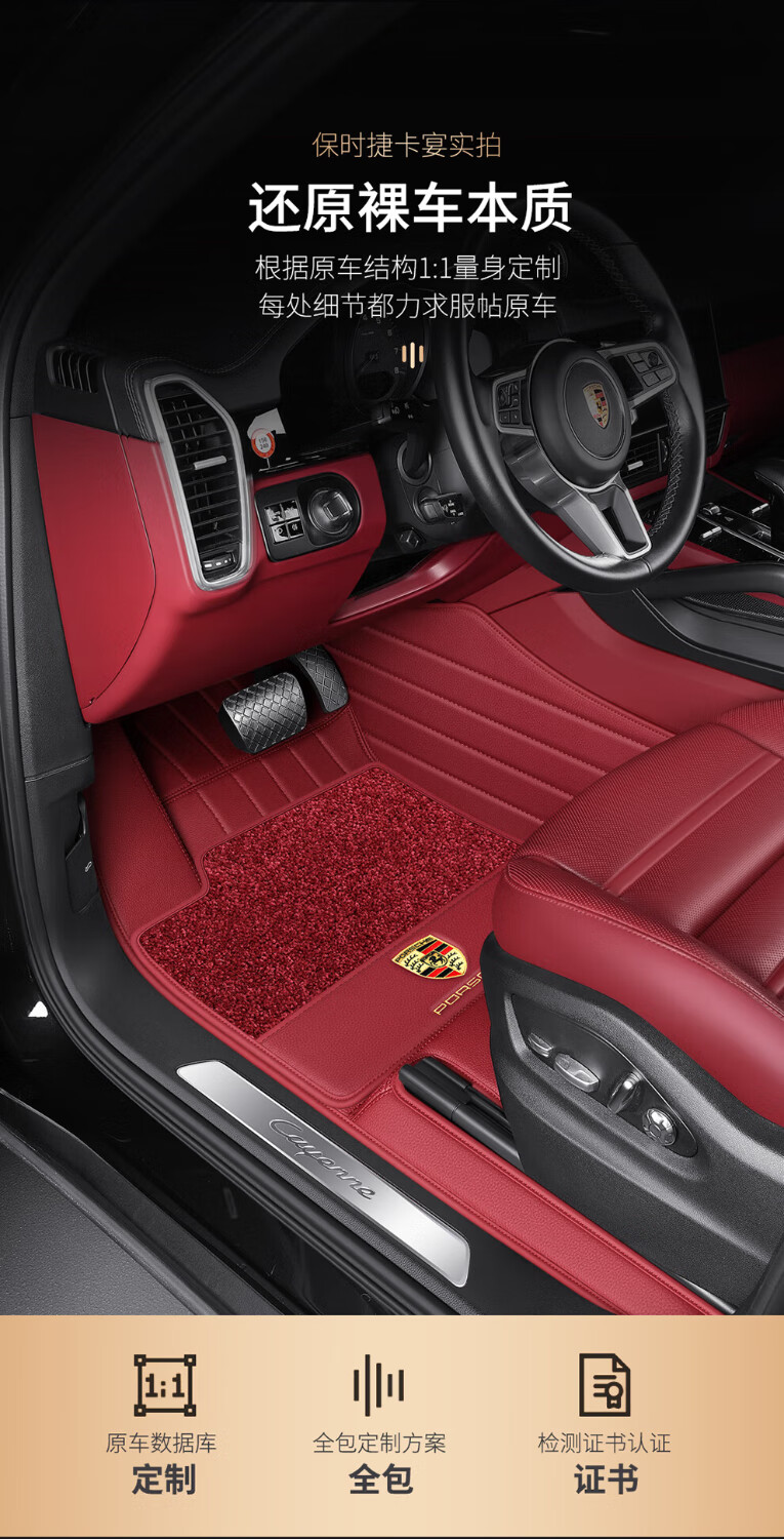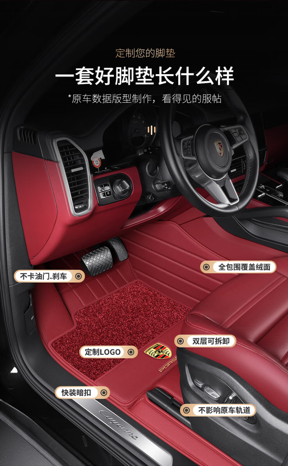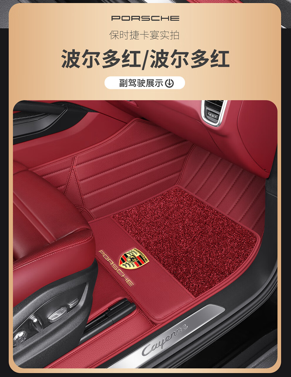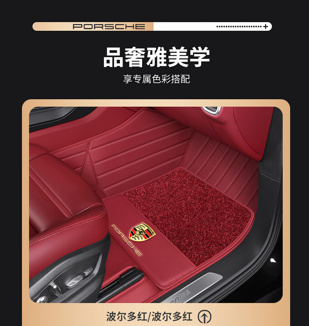 班树适用于24/25款保时捷卡宴帕拉梅拉911 718MacaTaycan全包围脚垫瑕 法拉皮+爱尔兰绒 (波尔多红) 保时捷Taycan