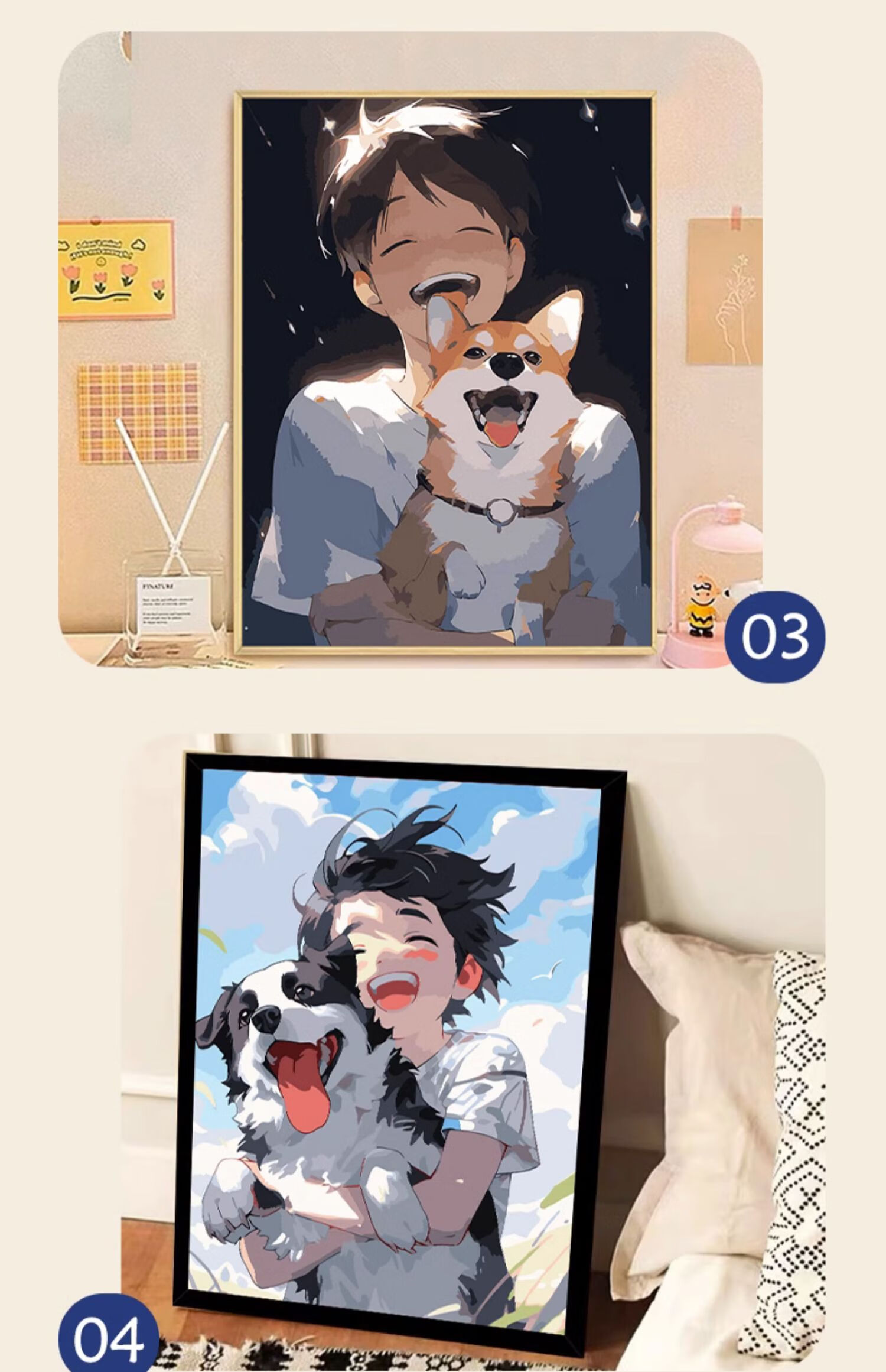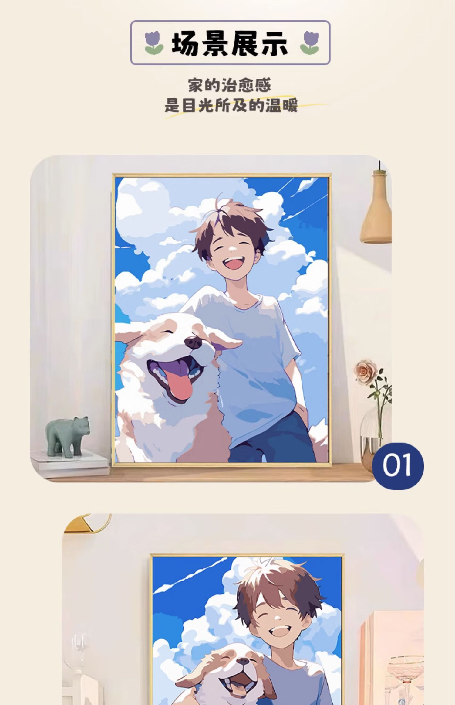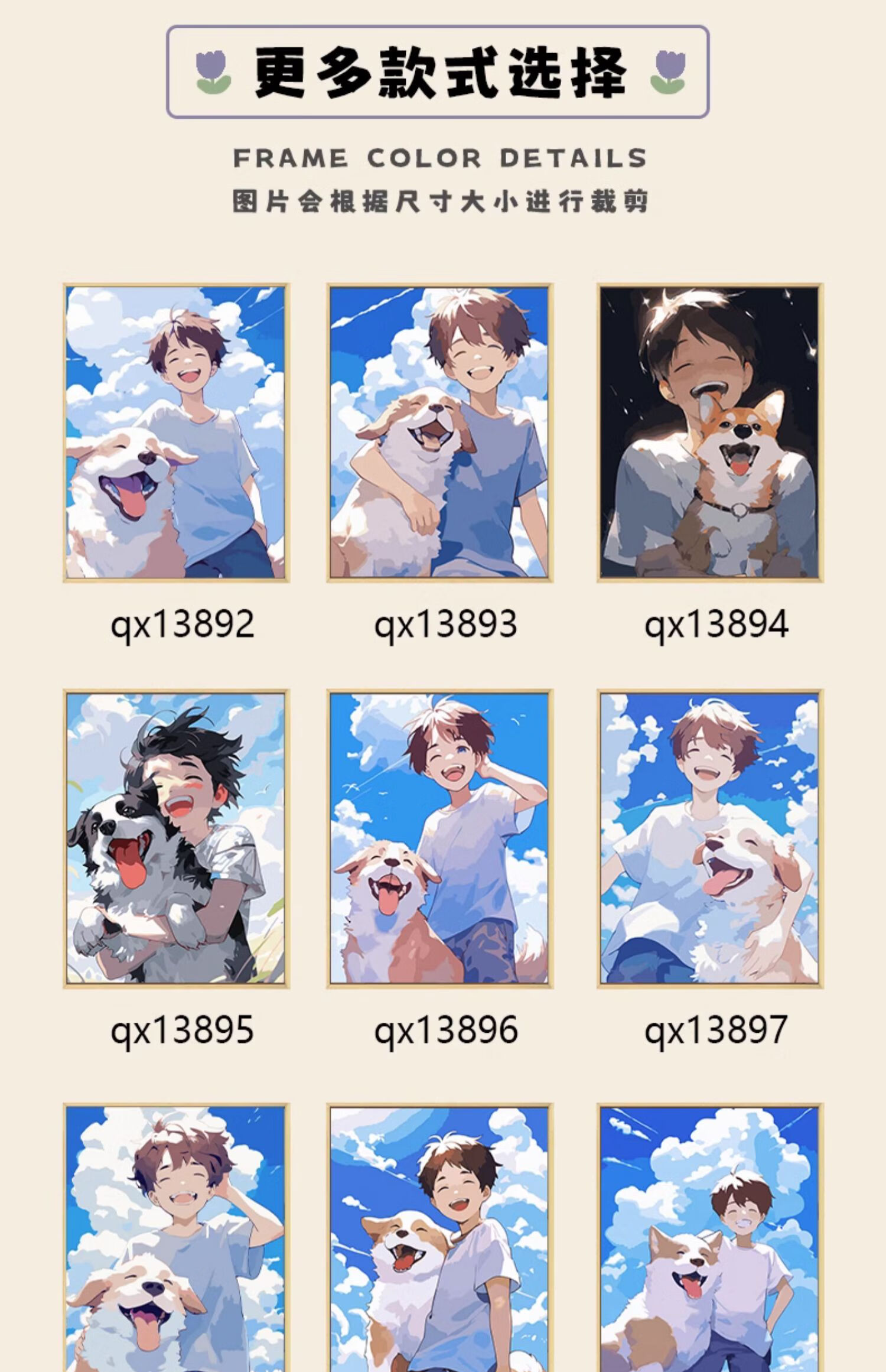 Healing animation boy dog ​​digital oil painting diy filling and coloring handmade painting Miyazaki Hayao decorative painting qx13892 60*70cm thickened solid wood inner frame + decorative outer frame (