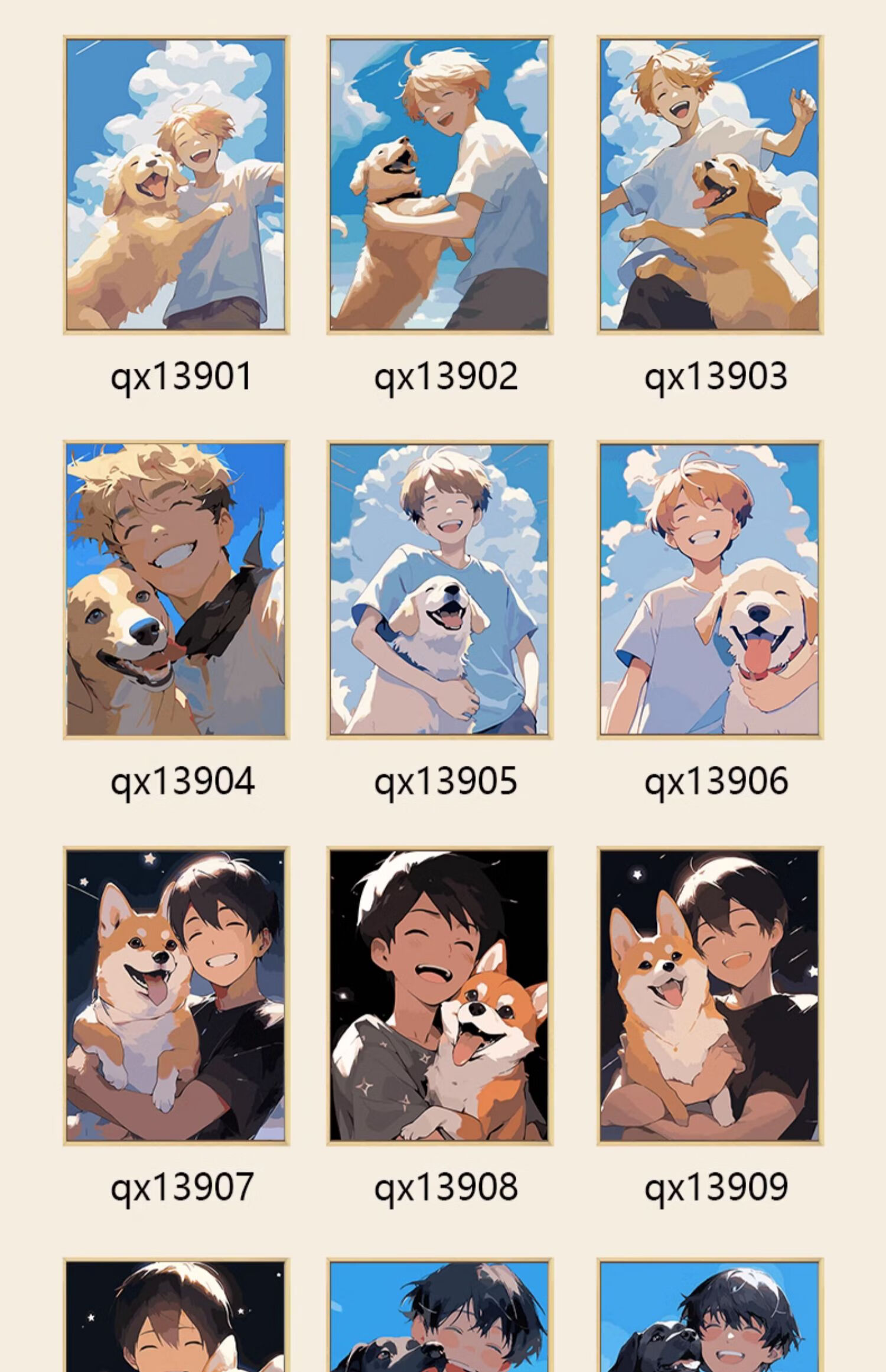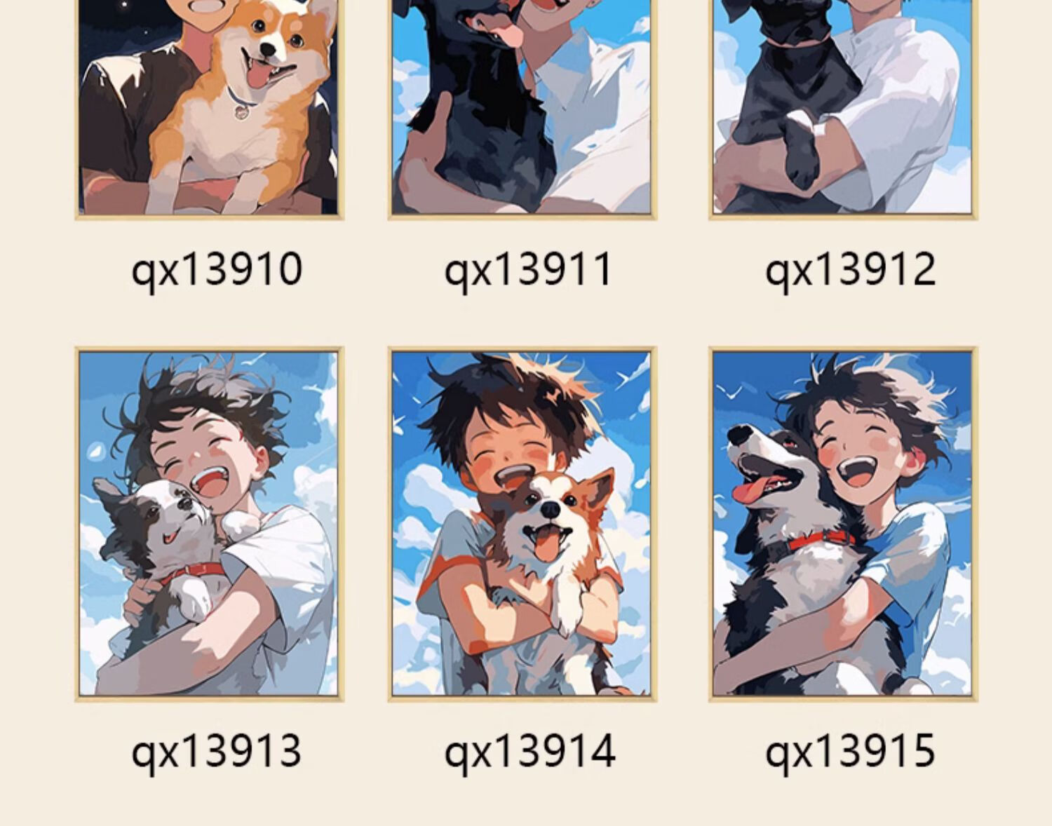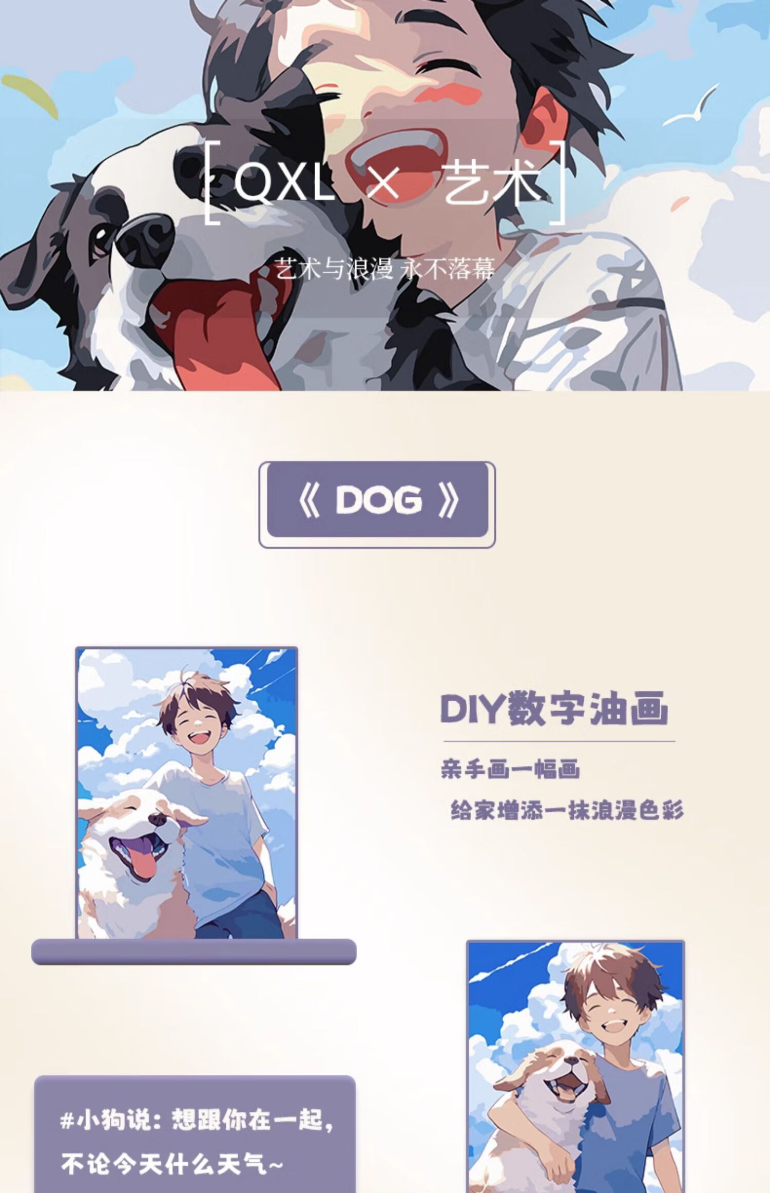Healing animation boy dog ​​digital oil painting diy filling and coloring handmade painting Miyazaki Hayao decorative painting qx13892 60*70cm thickened solid wood inner frame + decorative outer frame (
