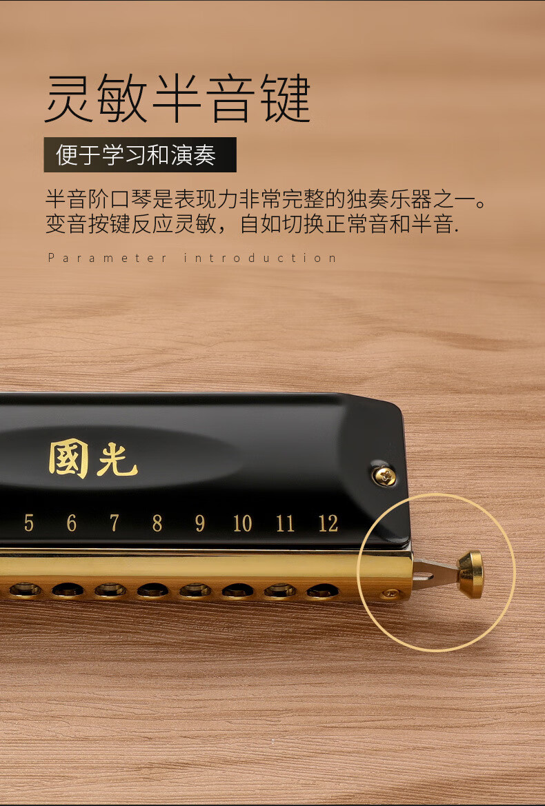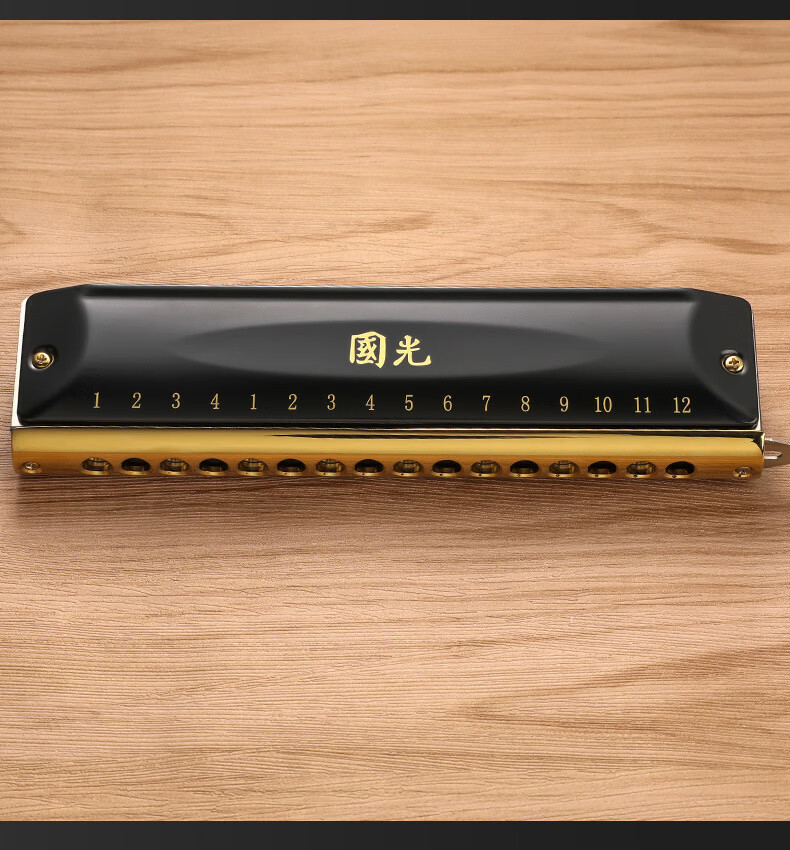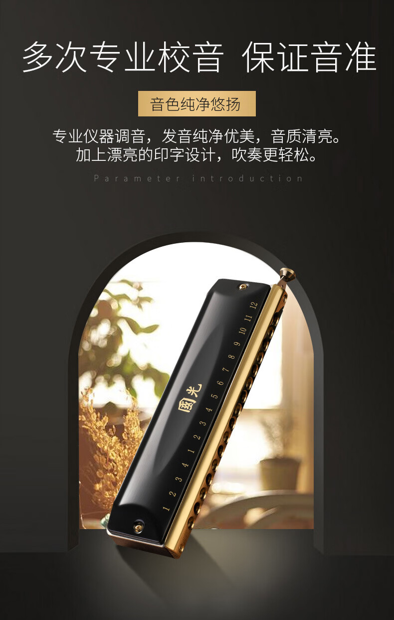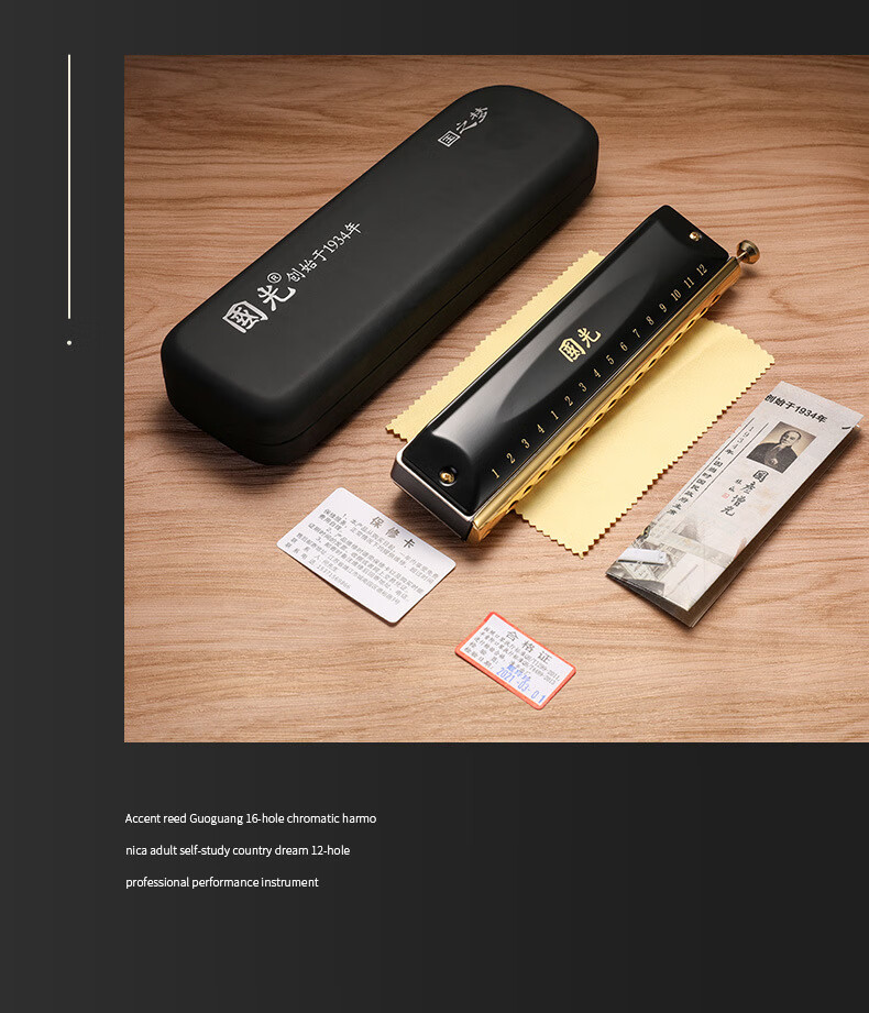 国光半音阶口琴12孔48音C调16孔高级专业演奏初学者成人儿童小学生 16孔 C调 国之梦磨砂黑(圆口标配)