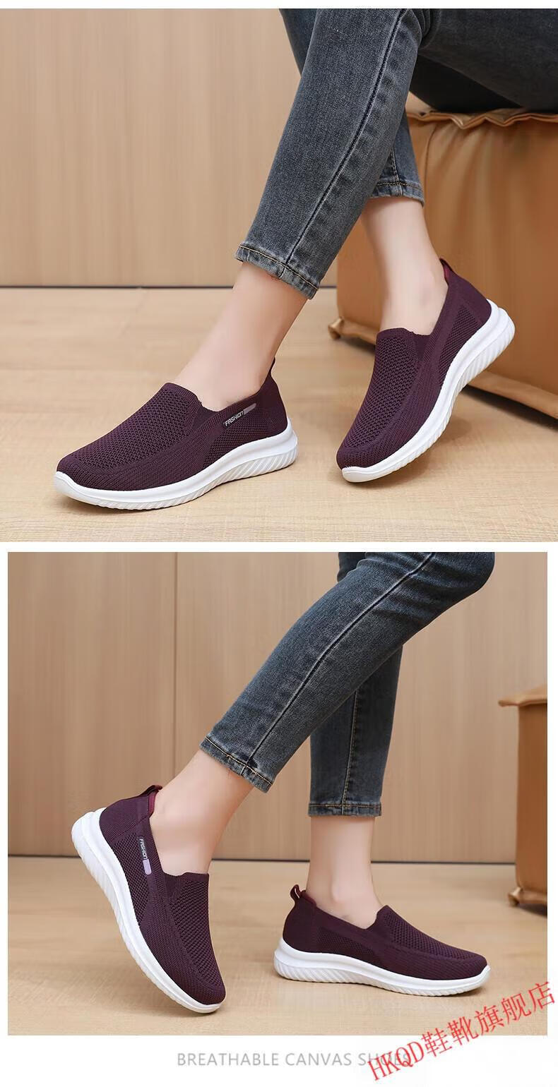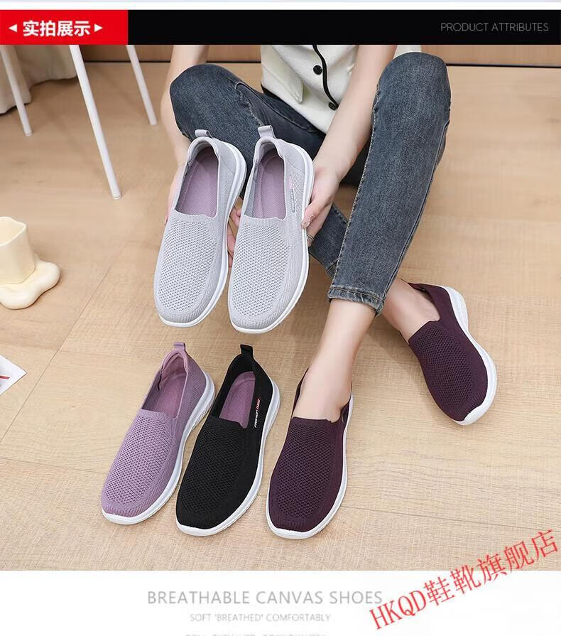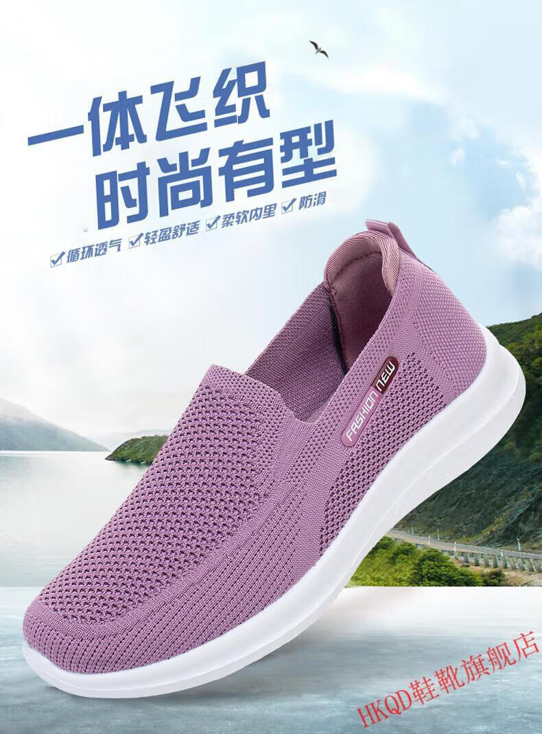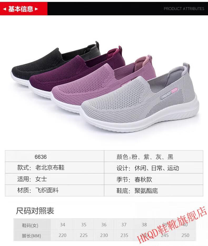 HKQD春秋老北京布鞋女单鞋休闲透气女士妈妈鞋防滑软底中老年人奶奶鞋 6636-粉色【正常码】 37