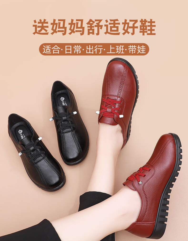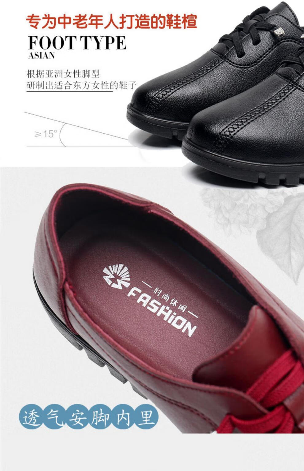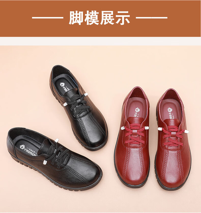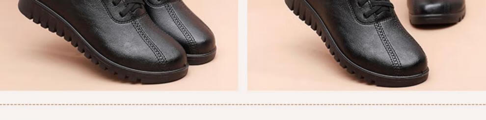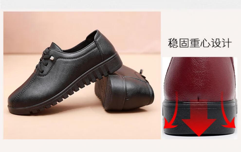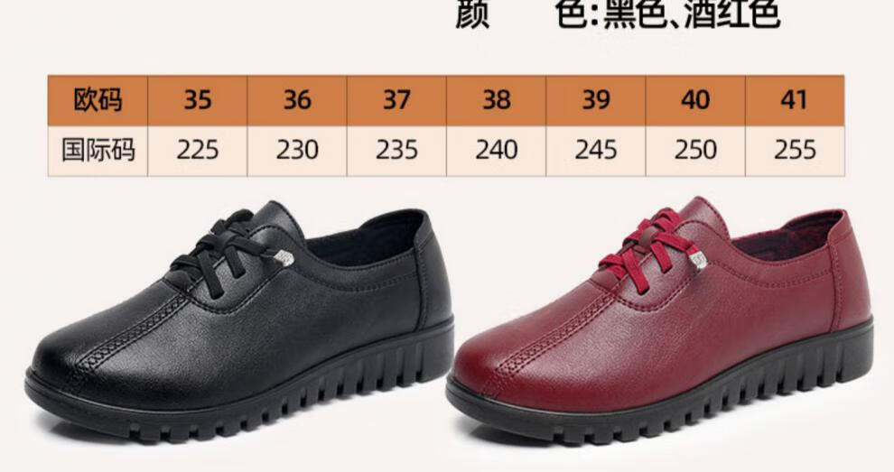 西域骆驼(VANCAMEL)妈妈鞋春秋款软底舒适中老年皮鞋女士平底防滑老人防水工作鞋加绒 6629黑色 38 标准尺码