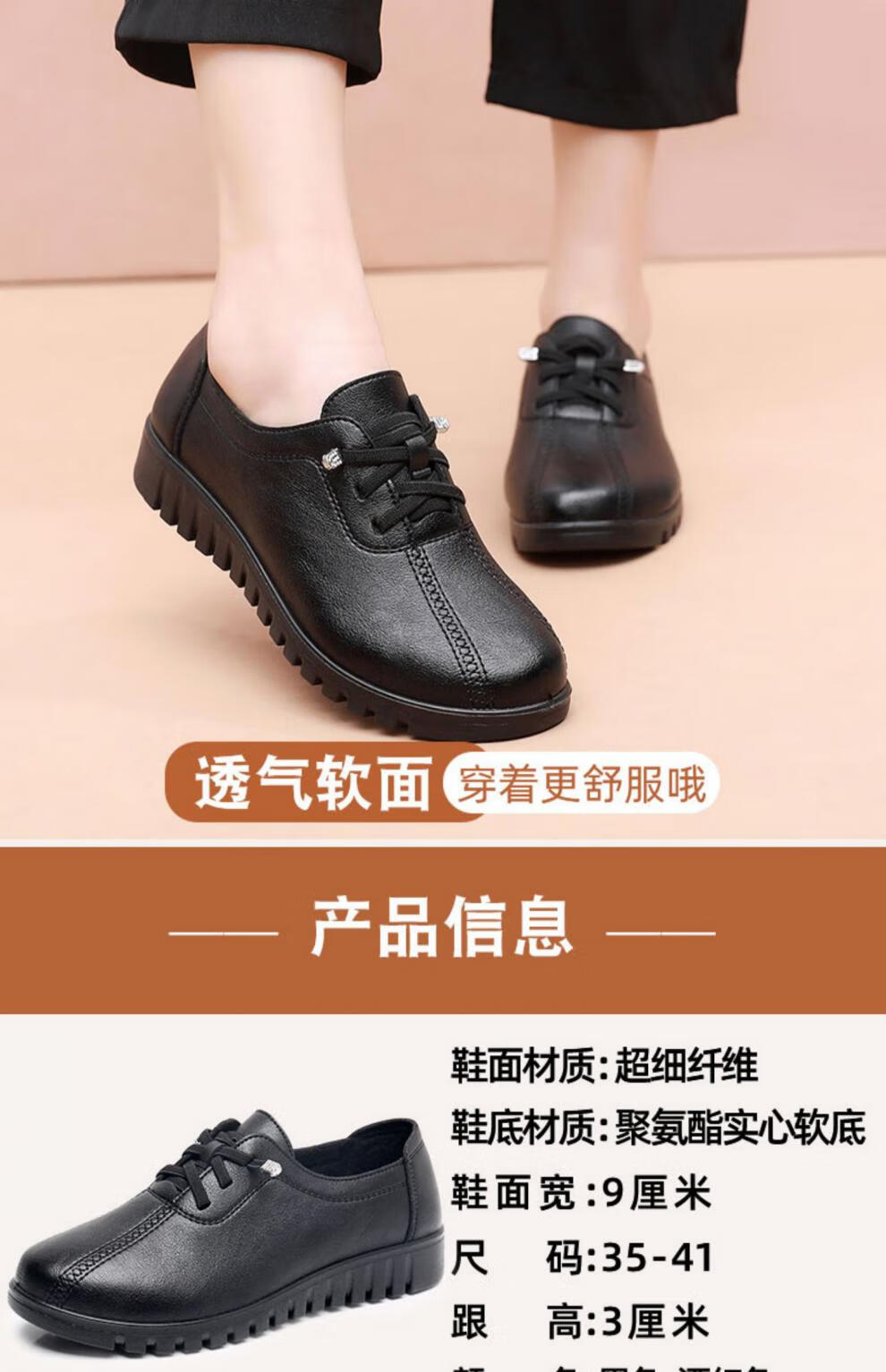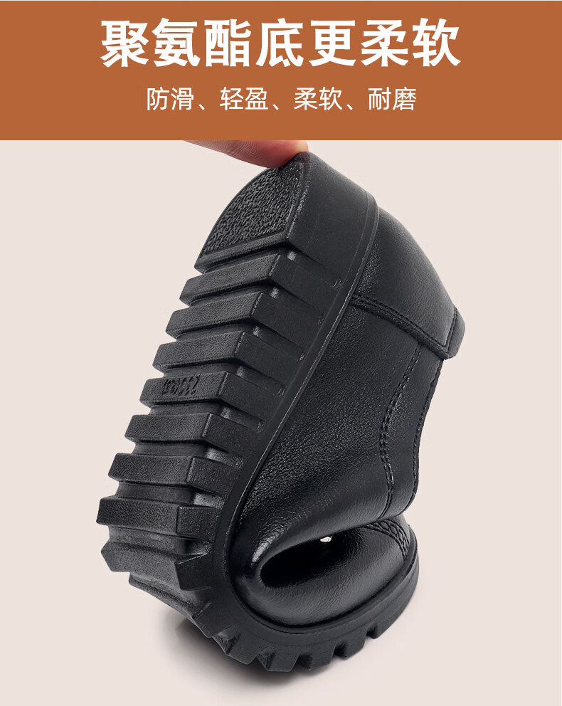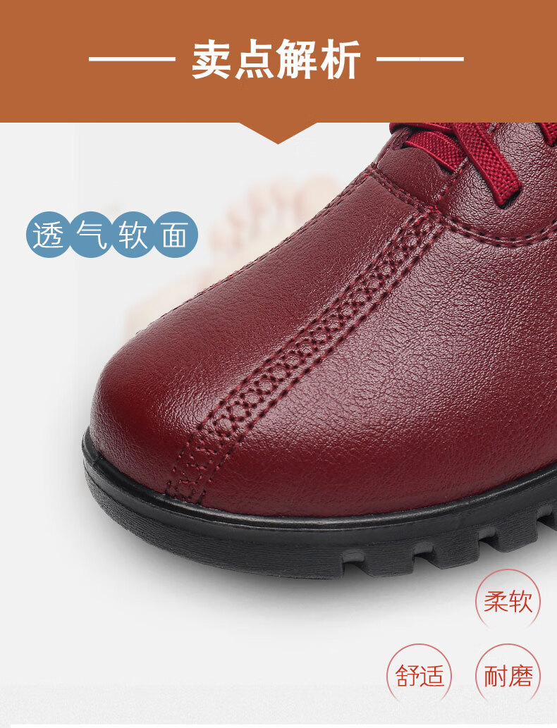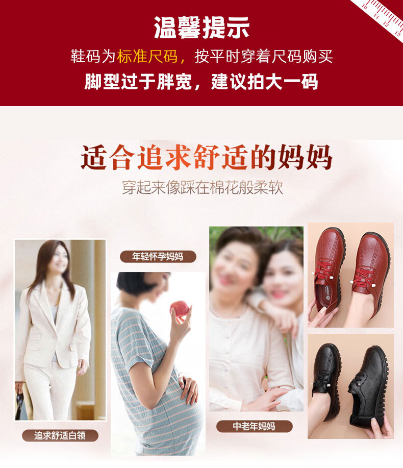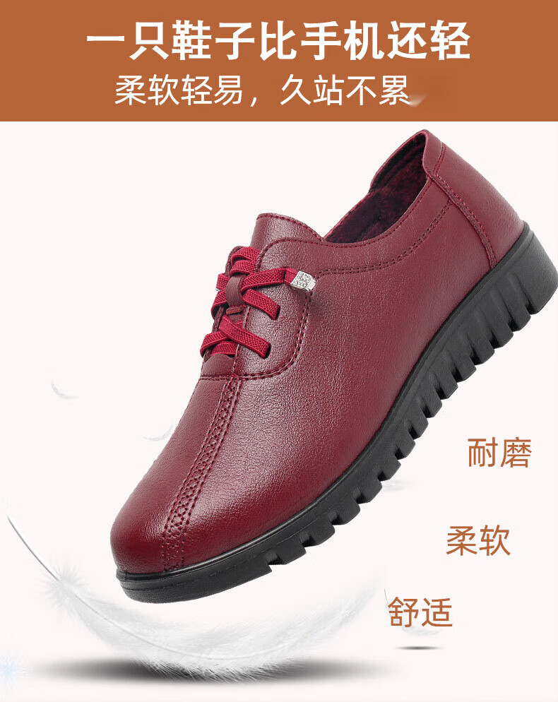 西域骆驼(VANCAMEL)妈妈鞋春秋款软底舒适中老年皮鞋女士平底防滑老人防水工作鞋加绒 6629黑色 38 标准尺码