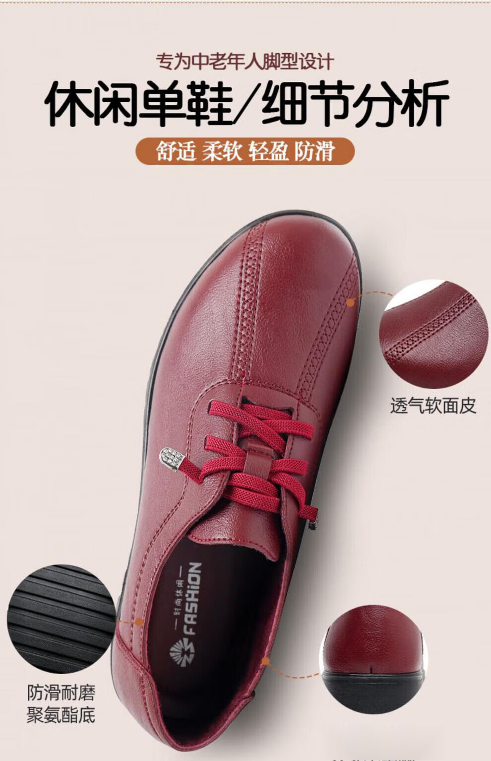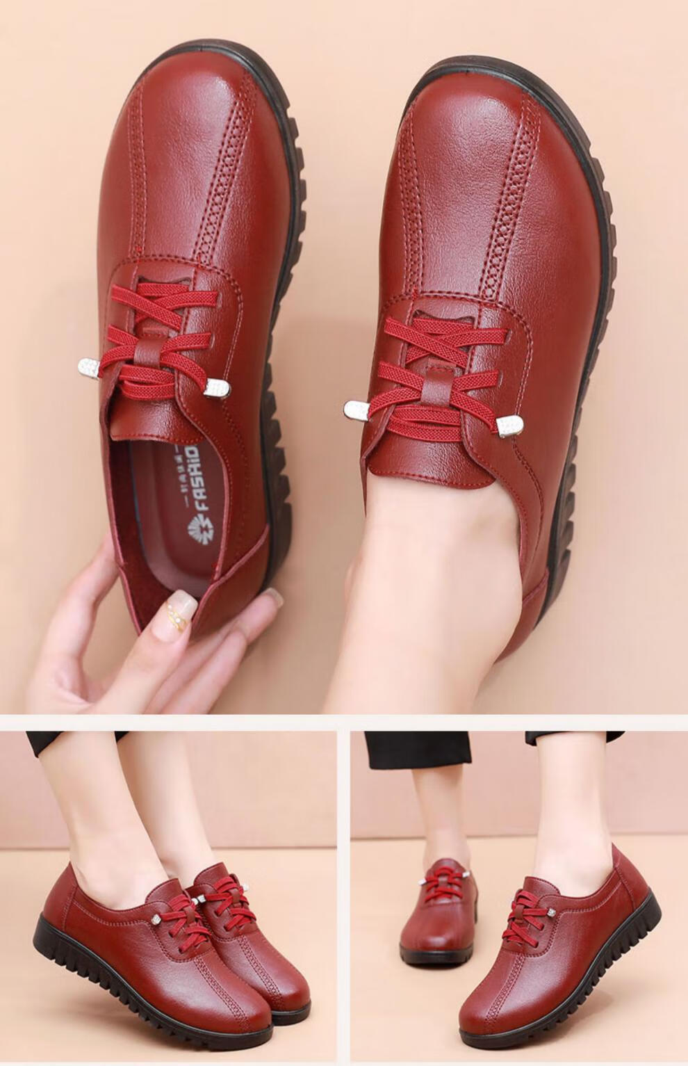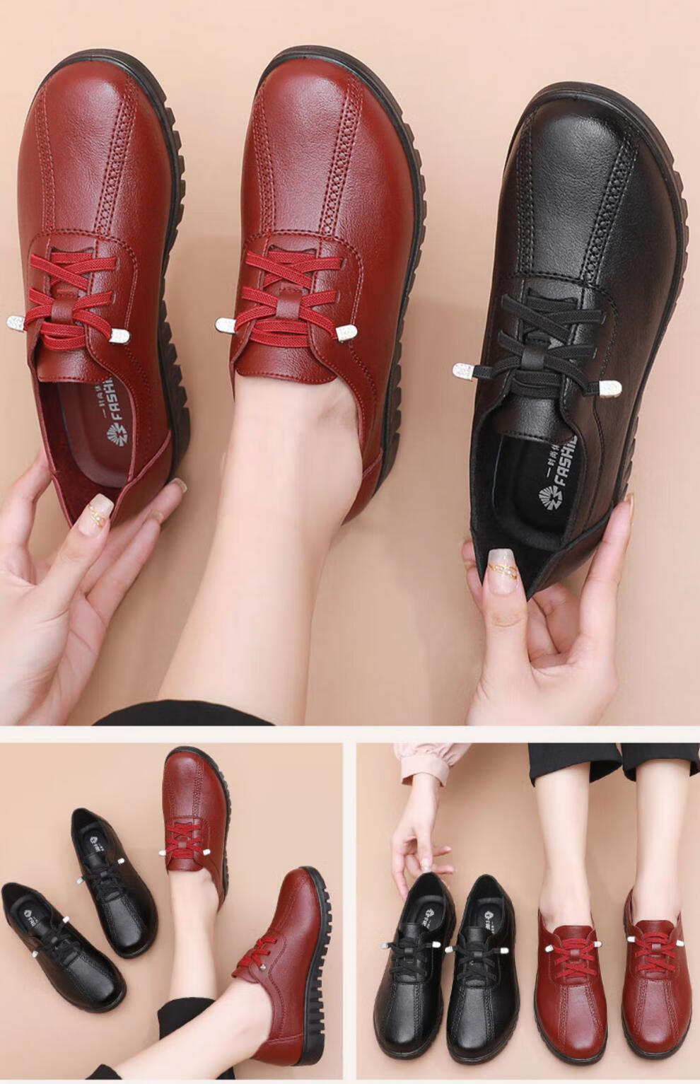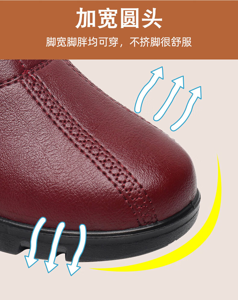 西域骆驼(VANCAMEL)妈妈鞋春秋款软底舒适中老年皮鞋女士平底防滑老人防水工作鞋加绒 6629黑色 38 标准尺码