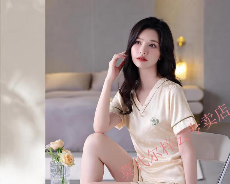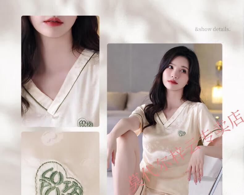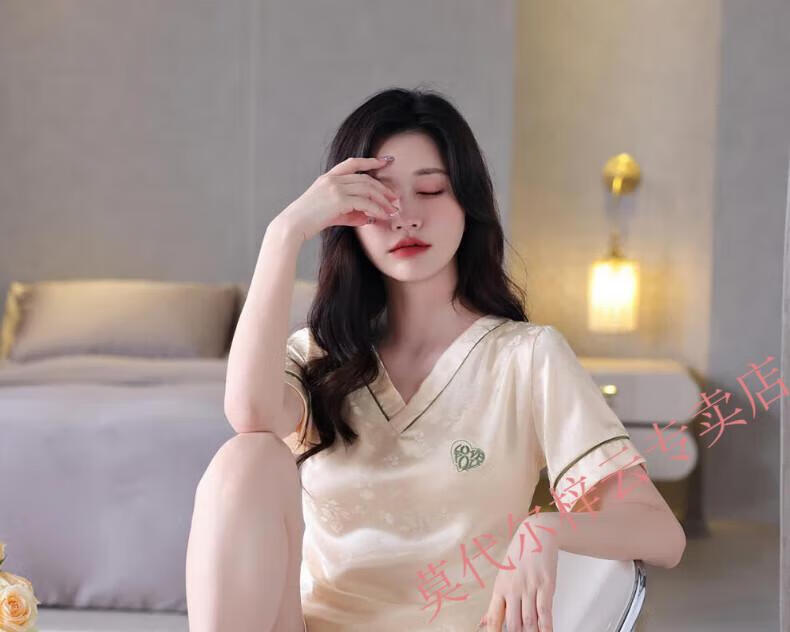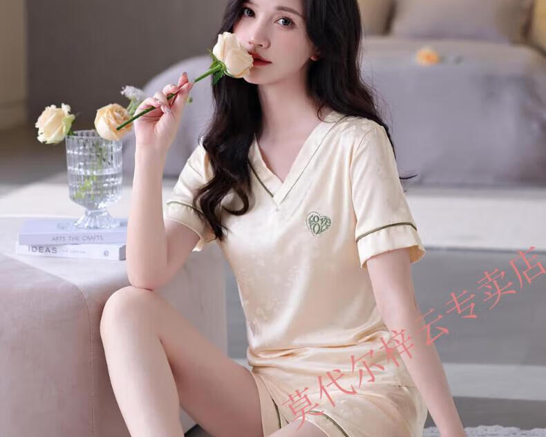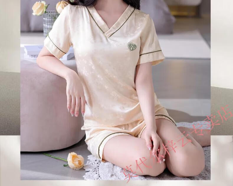莫代尔冰丝睡衣女2025夏季新款薄款短袖短裤女士夏天休闲简约家居服套装 1342-绿色 M 建议80-100斤