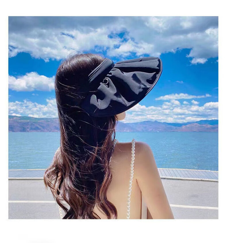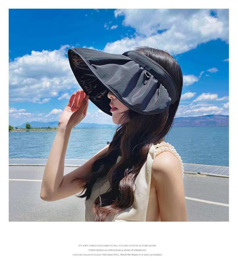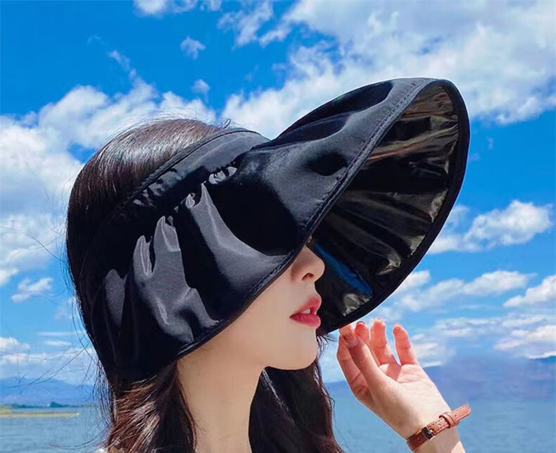 CHANEELR & KARITH sun protection hat for women 2025 new summer shell hat black plastic empty top hat birthday niche gift for girlfriend and wife black - black rubber bottom