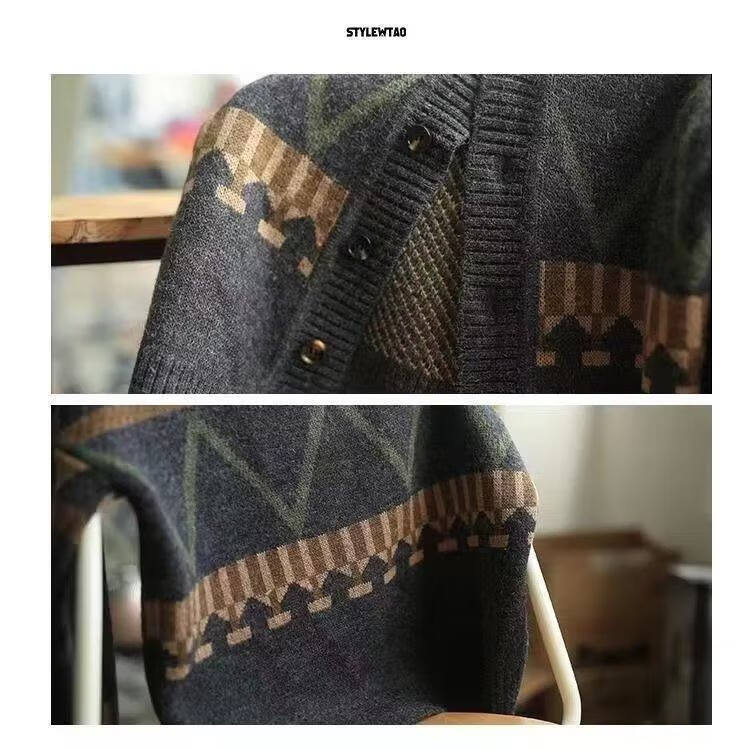 NASA XVVX official co-branded V-neck contrasting color knitted cardigan sweater for boys spring and autumn trendy loose casual straight jeans XH.A150-LK1098-70 black (pants) 2XL