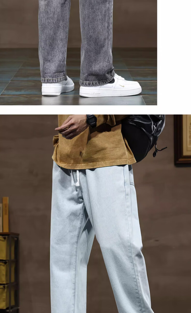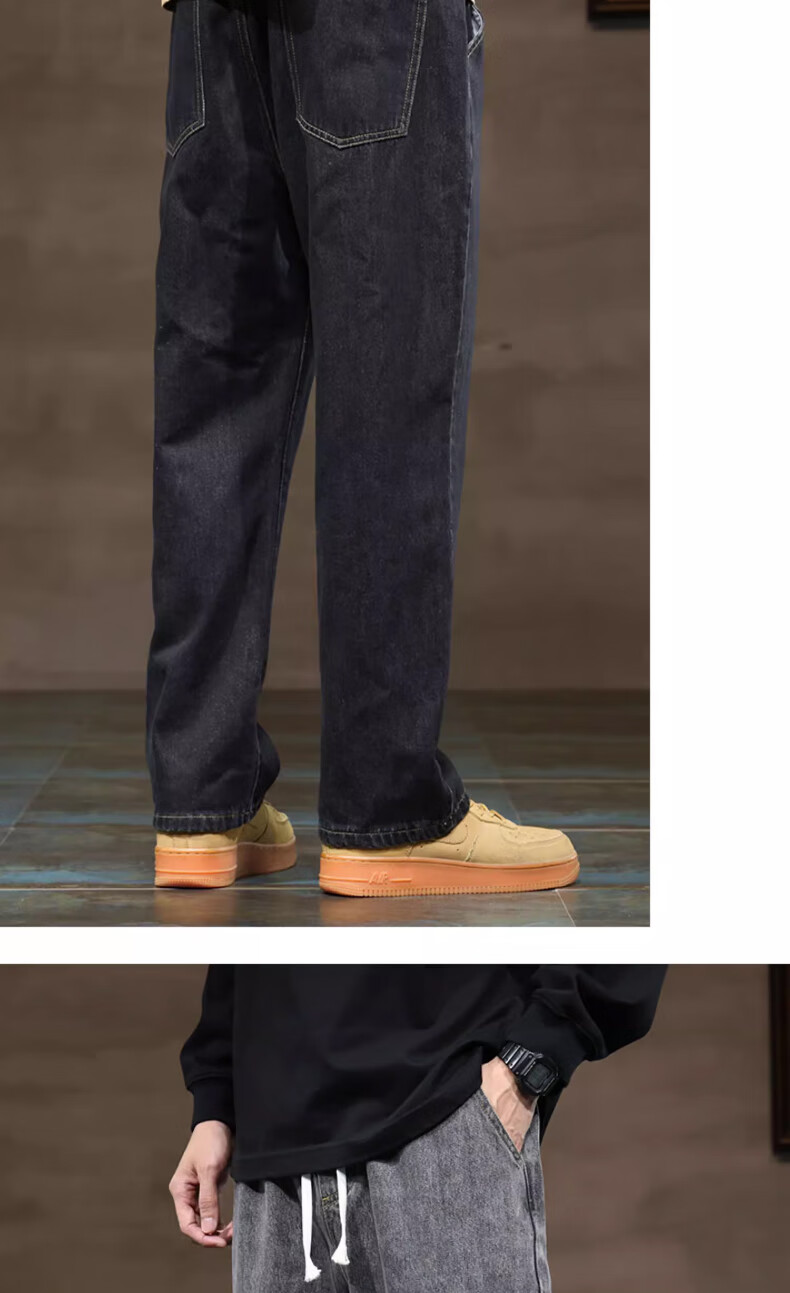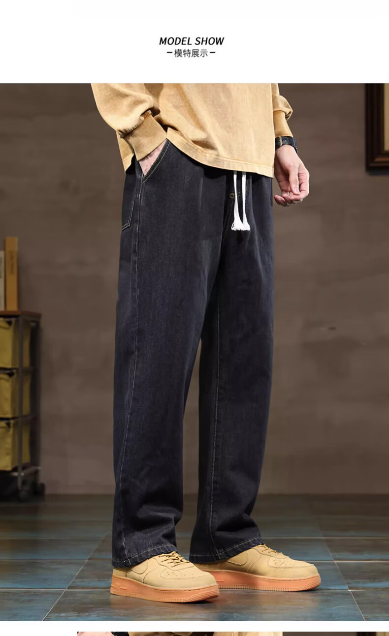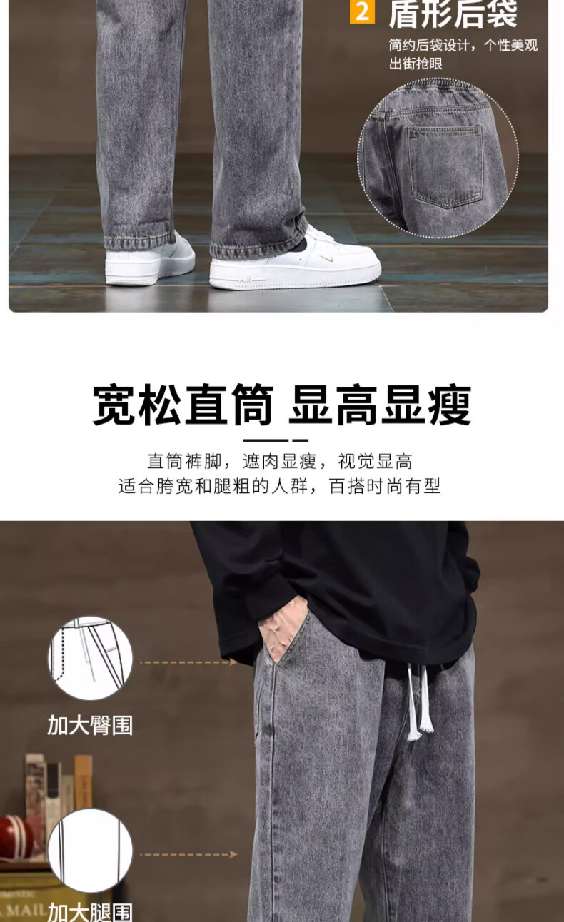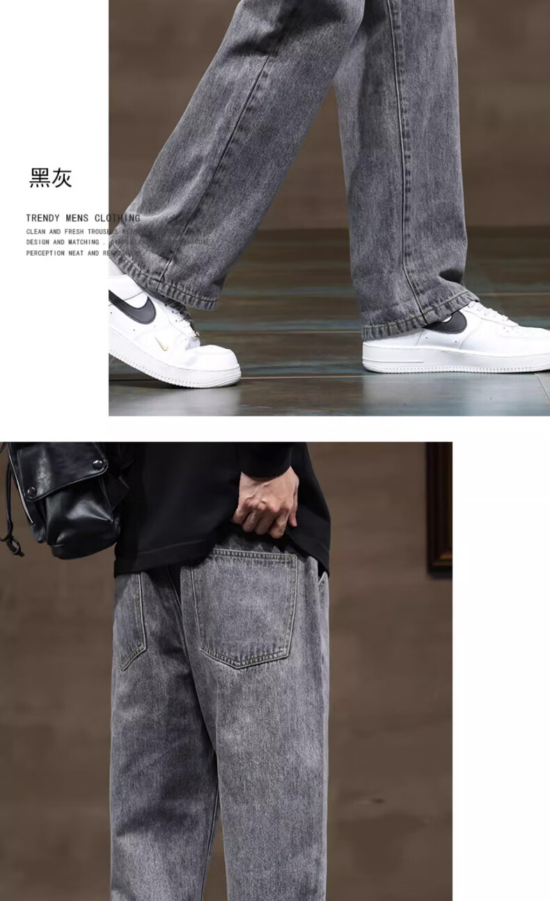 NASA BASE牛仔裤男春秋新款男士2025新款弹力潮款男裤宽松直筒休闲阔腿裤子 黑灰 XL (建议125-145斤)