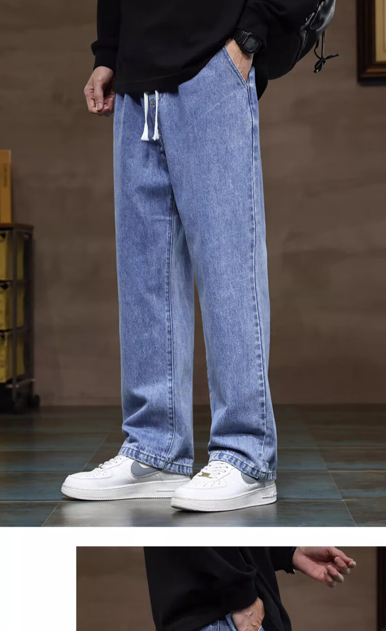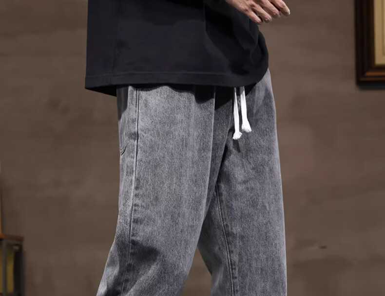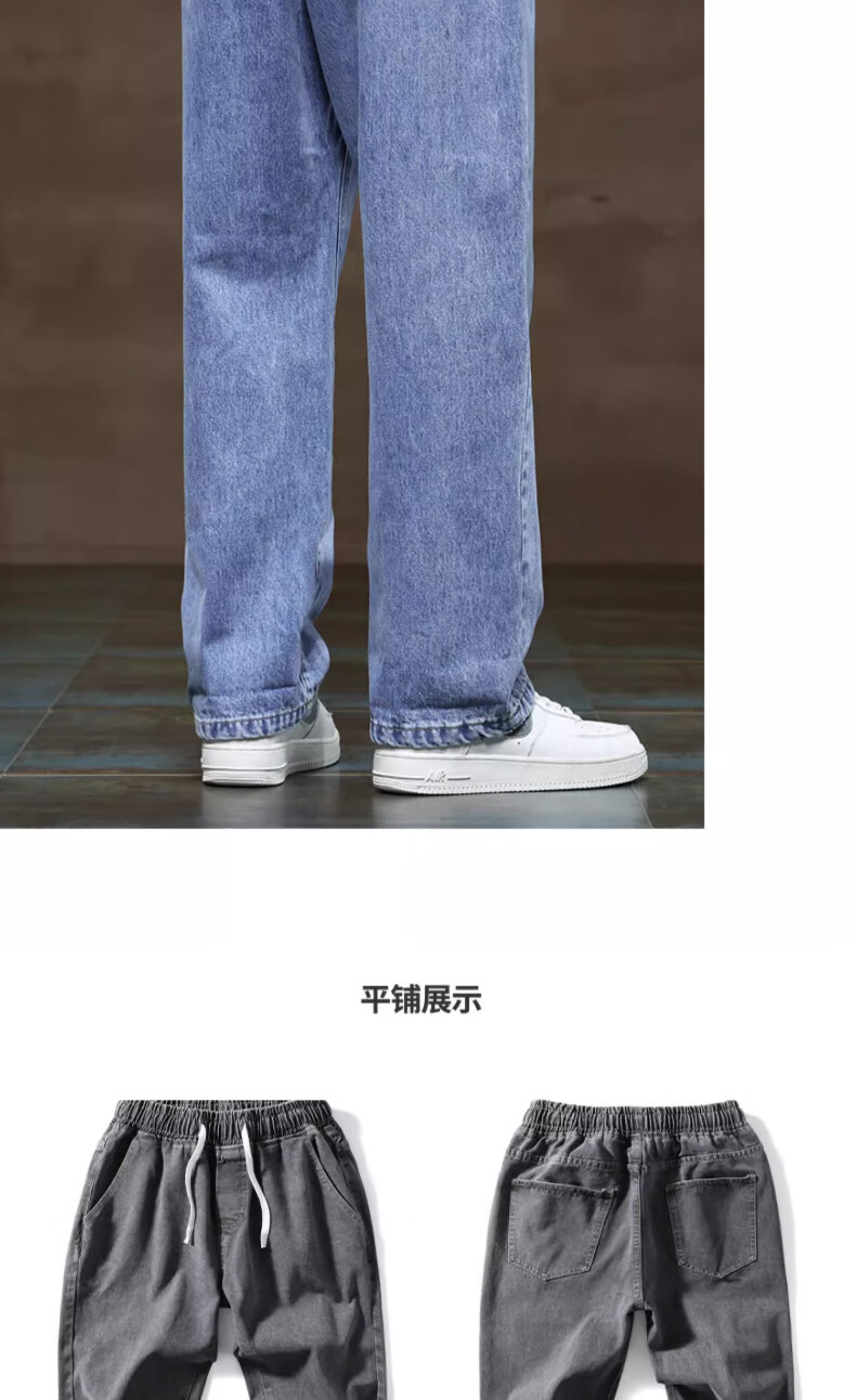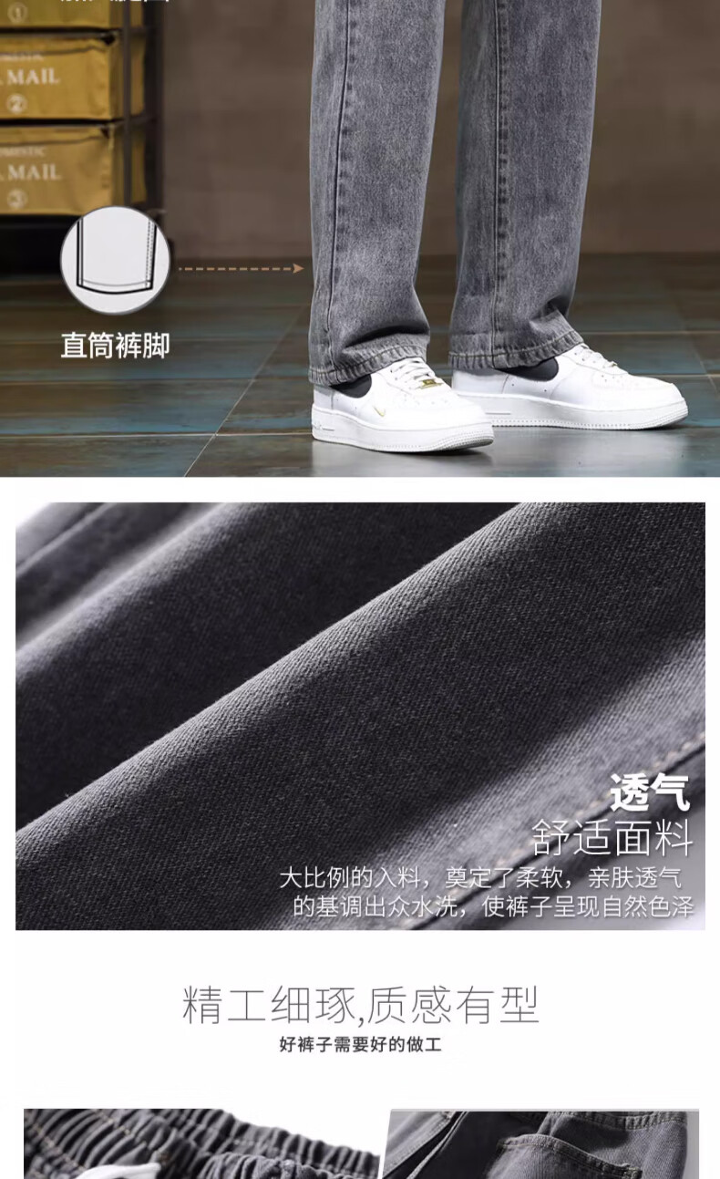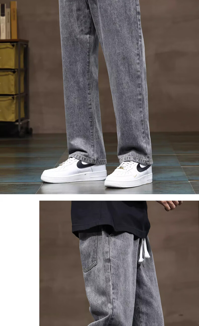 NASA BASE牛仔裤男春秋新款男士2025新款弹力潮款男裤宽松直筒休闲阔腿裤子 黑灰 XL (建议125-145斤)