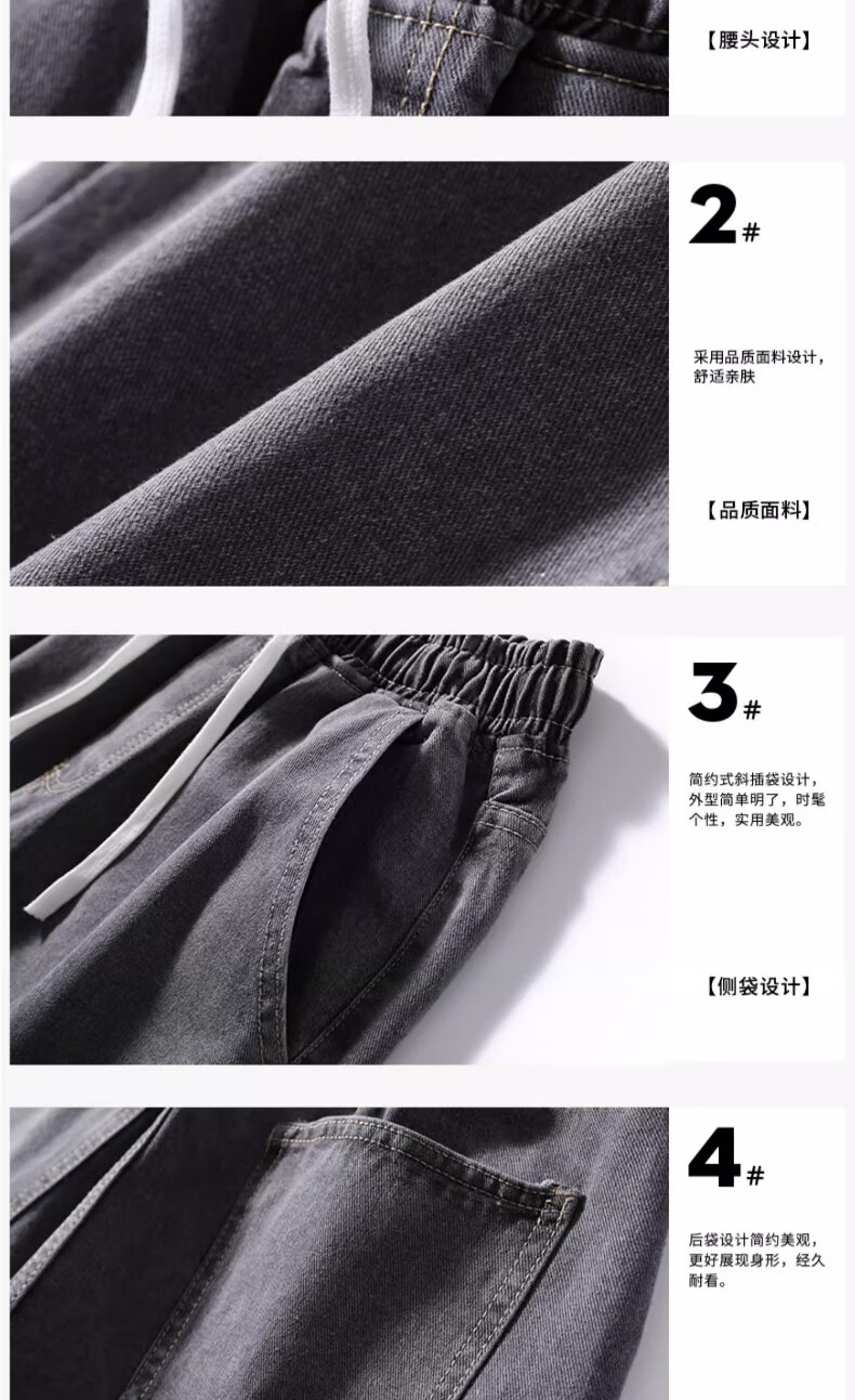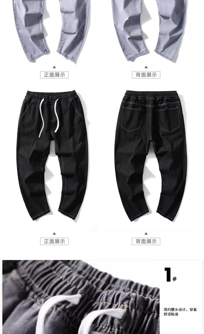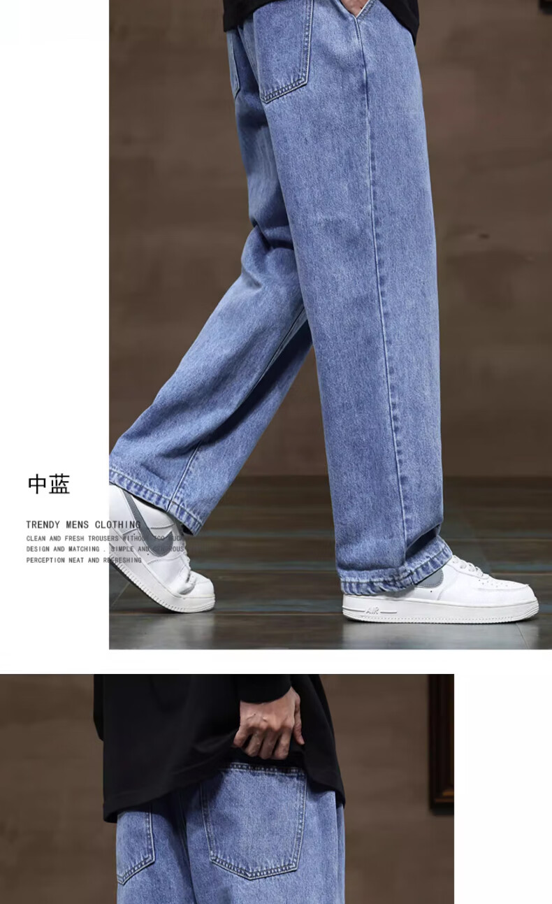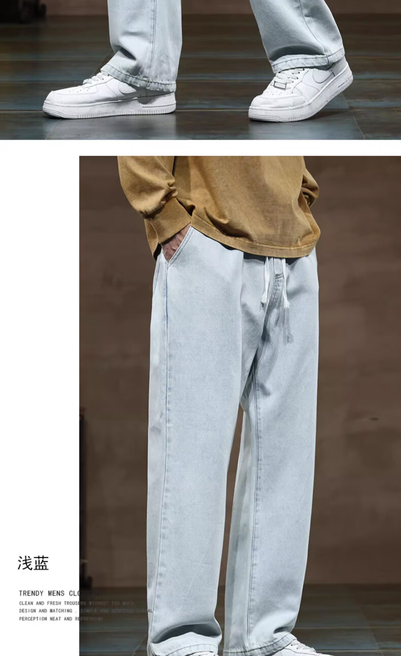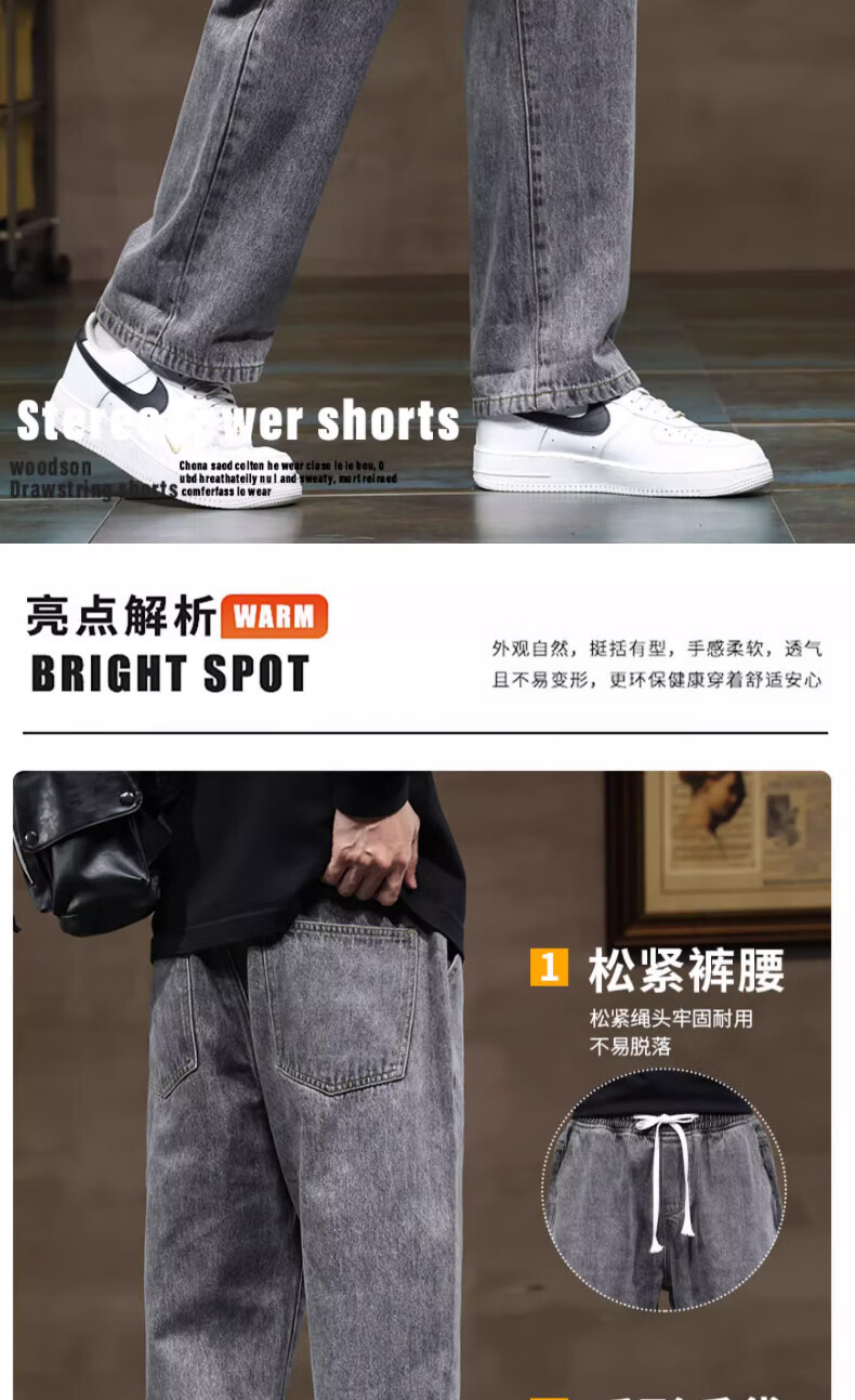 NASA BASE牛仔裤男春秋新款男士2025新款弹力潮款男裤宽松直筒休闲阔腿裤子 黑灰 XL (建议125-145斤)