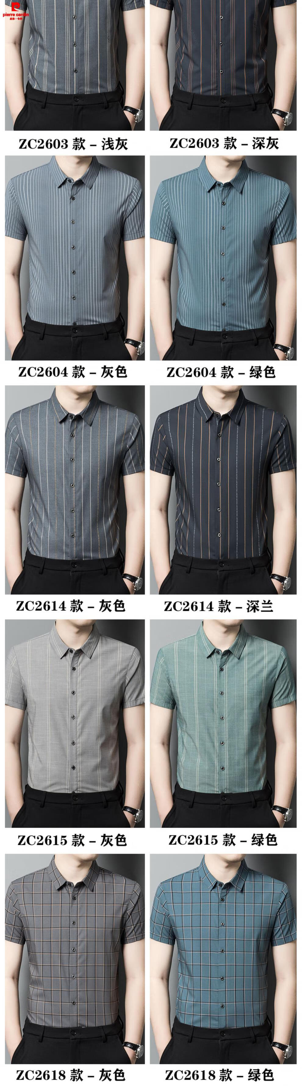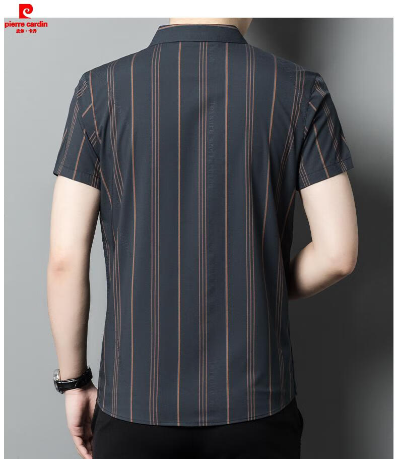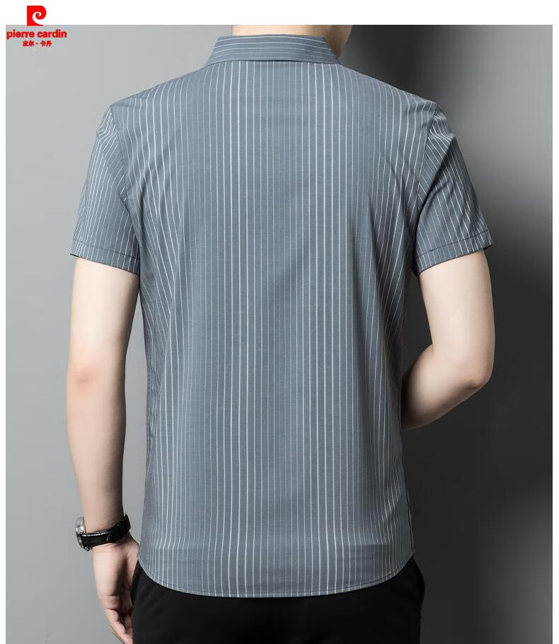 皮尔卡丹(pierre cardin)2025夏季新款高档条纹冰.丝短袖衬衫男含桑蚕丝商务休闲衬衣男装 FC2603款-浅灰 XL 180 【适合体重150-170斤】