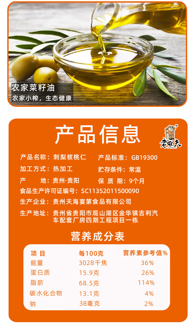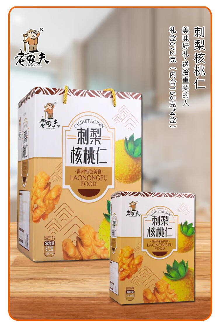 琥珀老农夫贵州刺梨核桃仁礼盒672克琥珀坚果零食特产小吃去皮核桃 刺 刺梨核桃仁168克*2盒
