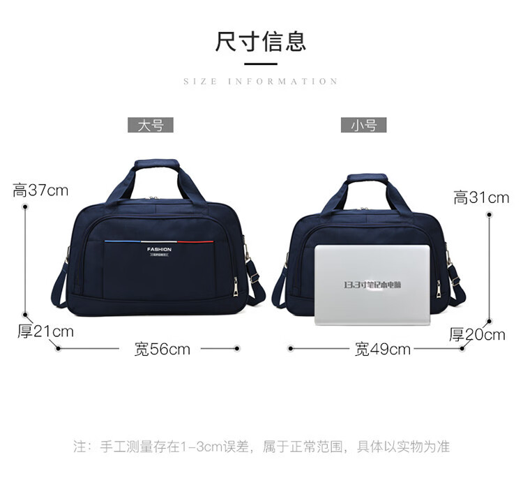 畅印大容量手提旅行包男出差行李袋可挂拉杆箱单肩手提衣服旅行袋 灰色小号