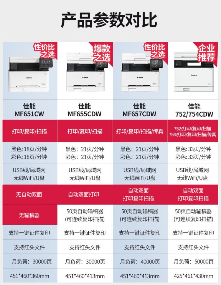 佳能MF752cdw/754CDW/657CDW/655cdw彩色激光打印机 无线自动高速双面打印复印扫描办公一体机 655CDW【无线三合一+双面打印 一/标配+易加粉硒鼓1支+碳粉2瓶