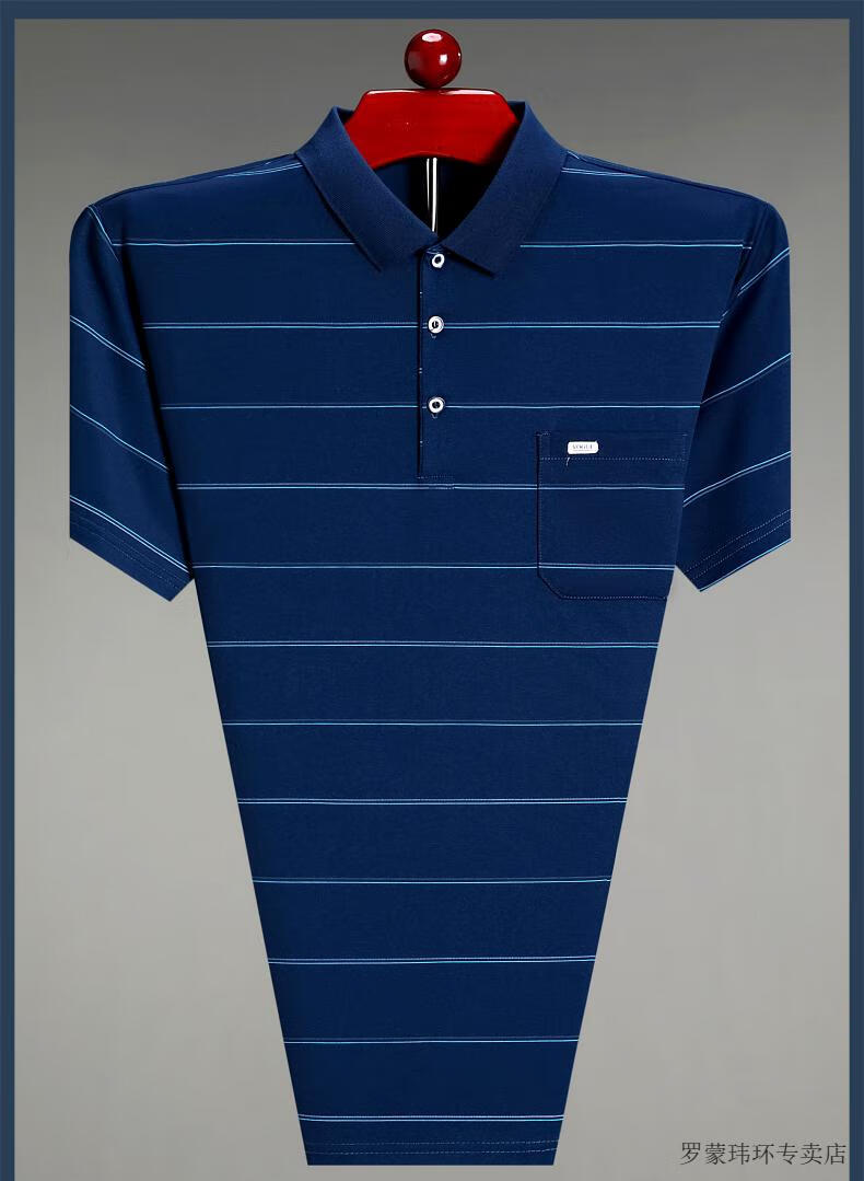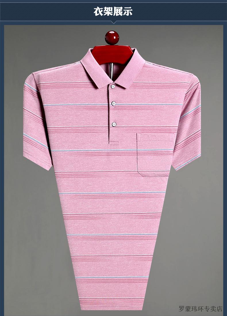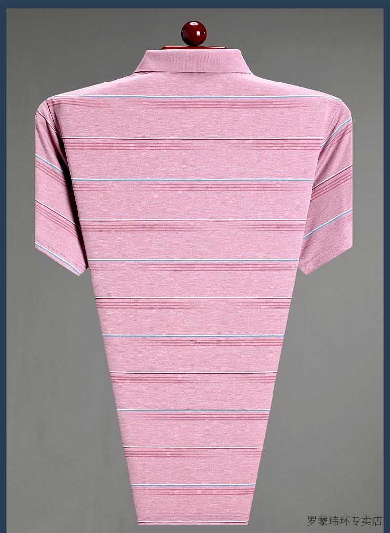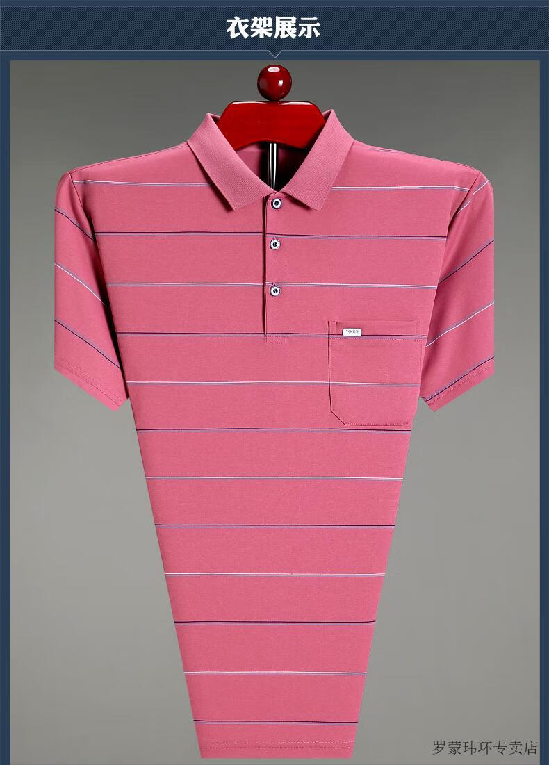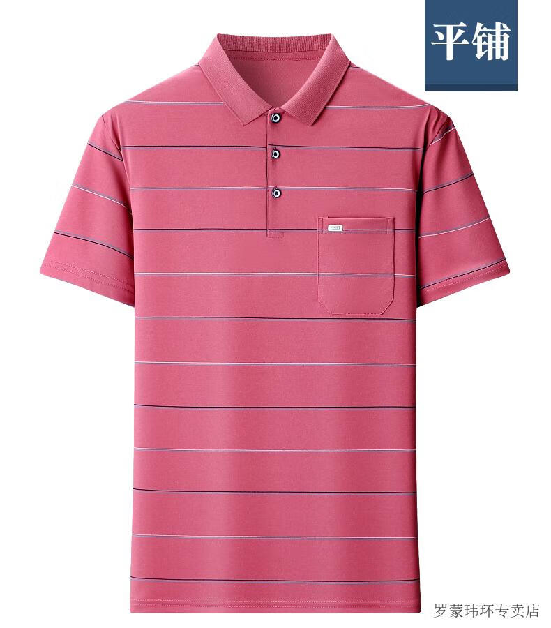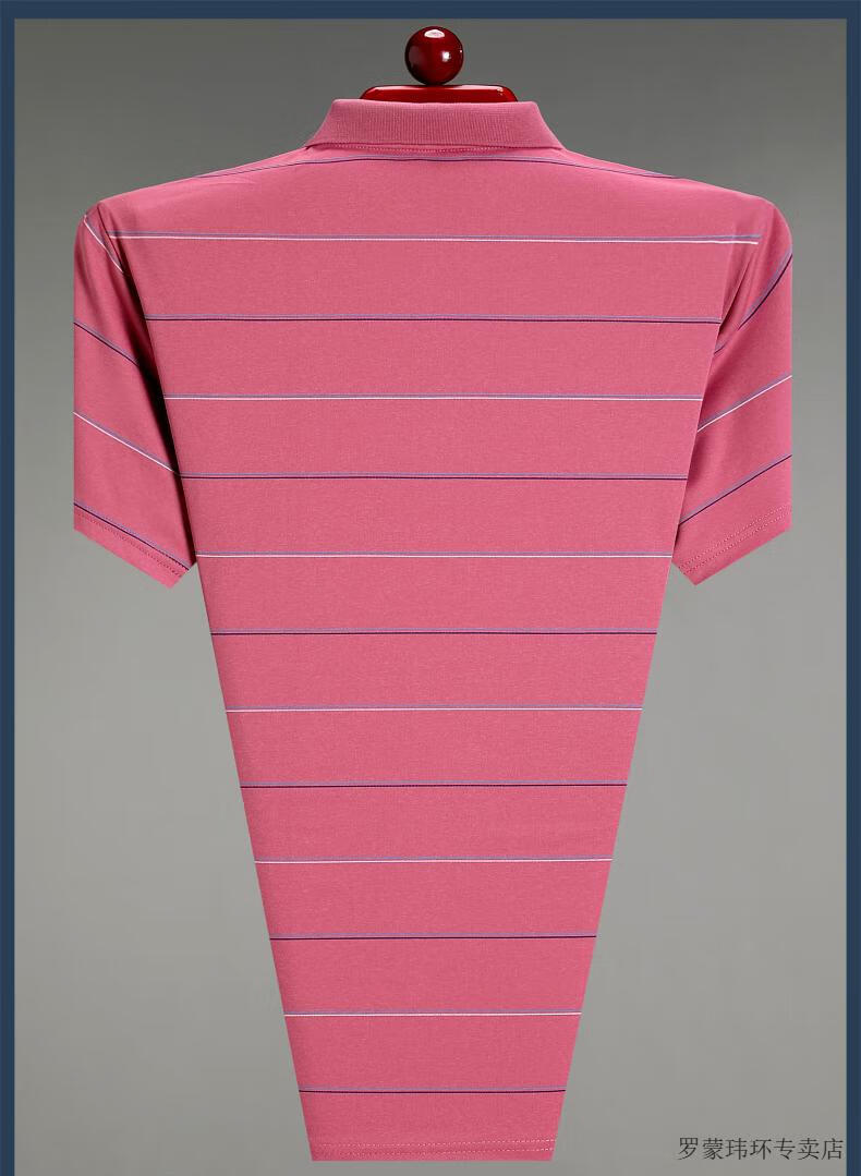 罗蒙(ROMON)翻领短袖t恤男夏季高档棉条纹爸爸高档真口袋潮流衫 ST733皮红 180/2XL(建议150-170斤)