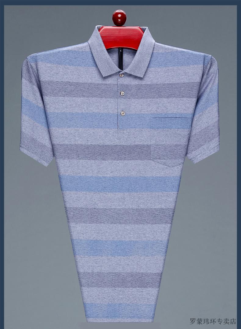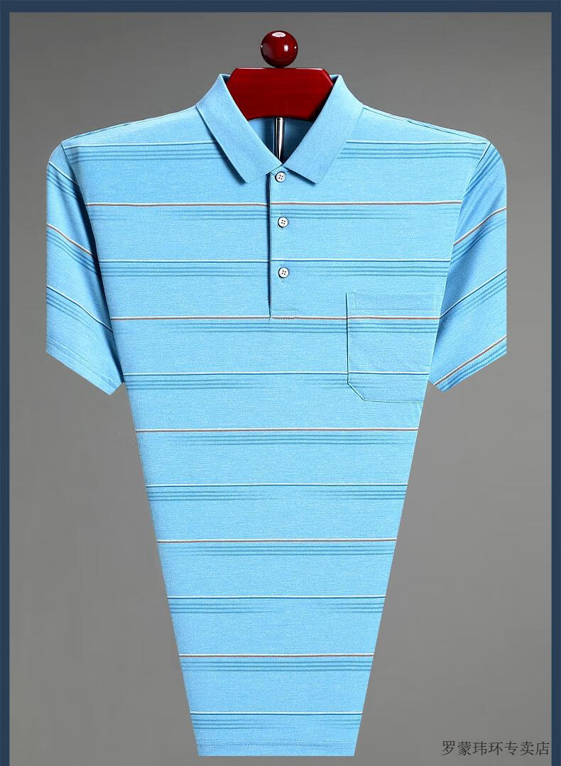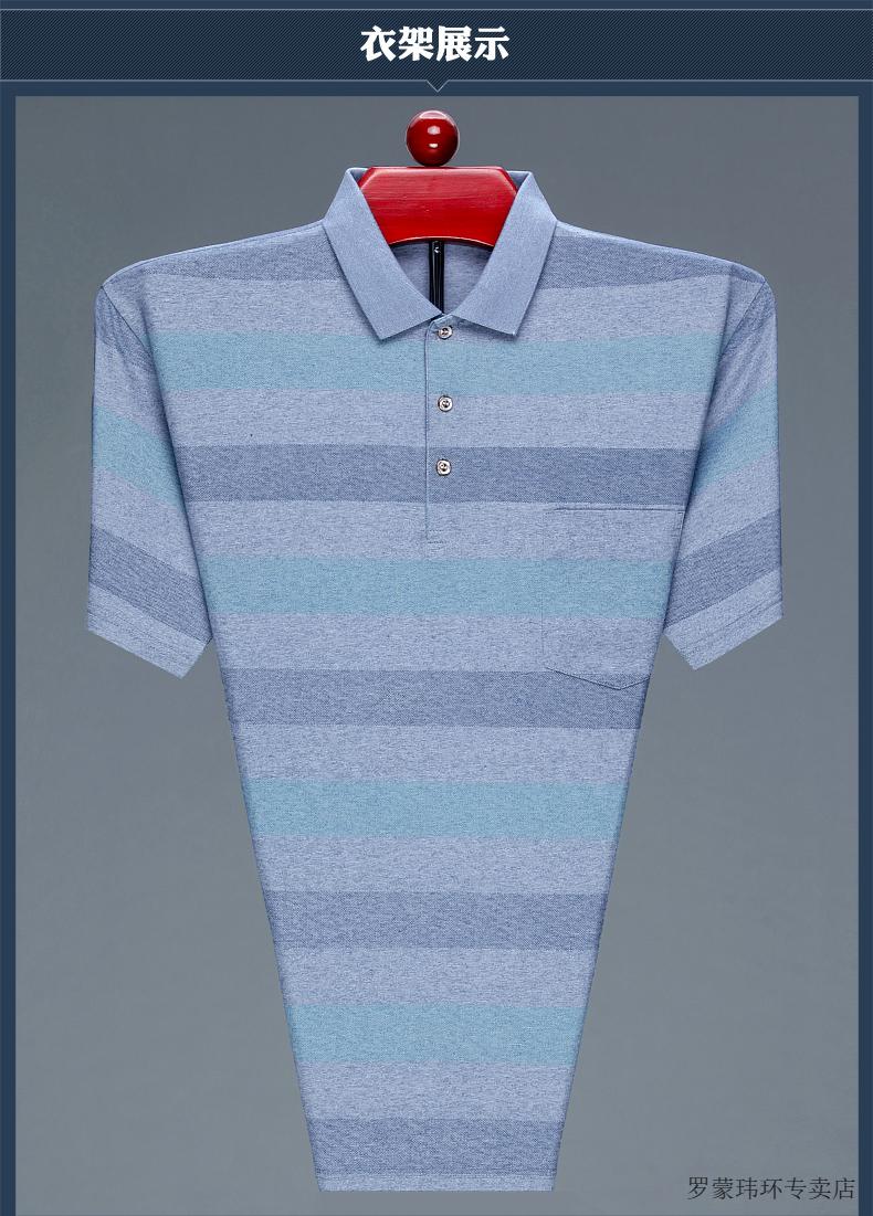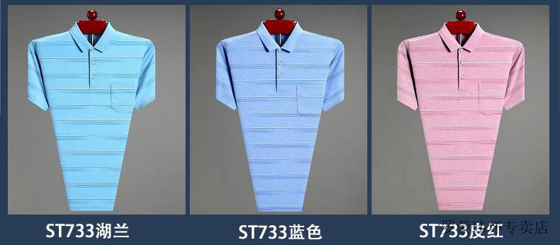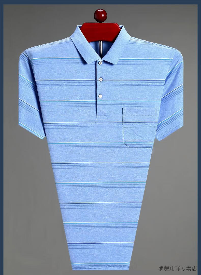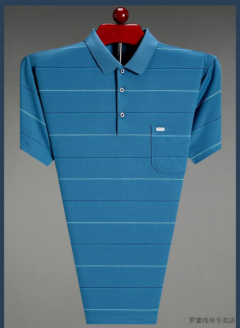 罗蒙(ROMON)翻领短袖t恤男夏季高档棉条纹爸爸高档真口袋潮流衫 ST733皮红 180/2XL(建议150-170斤)