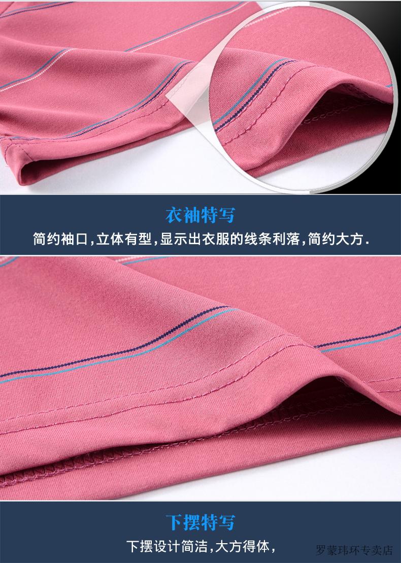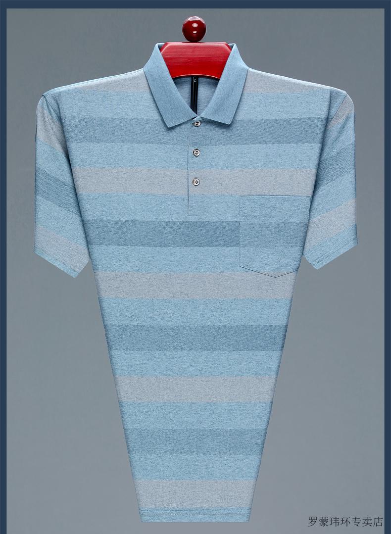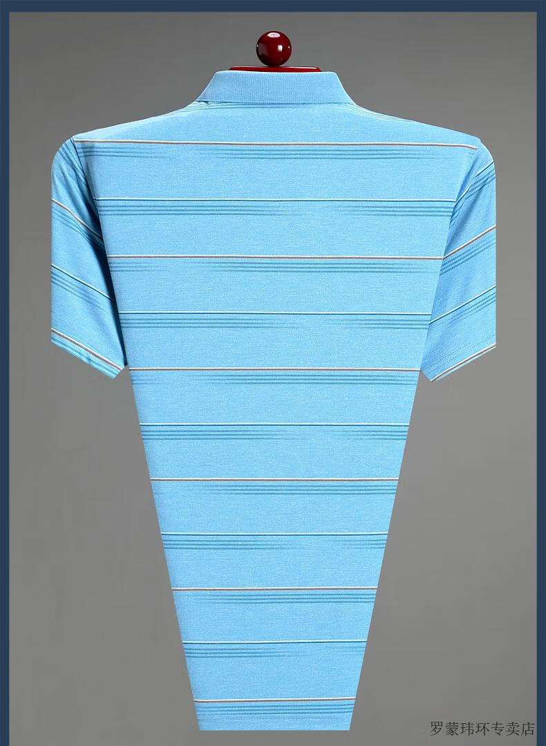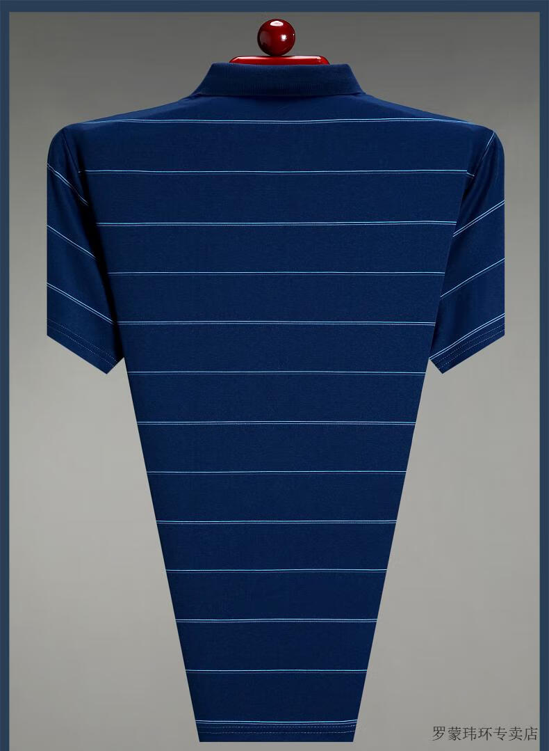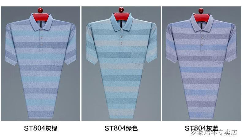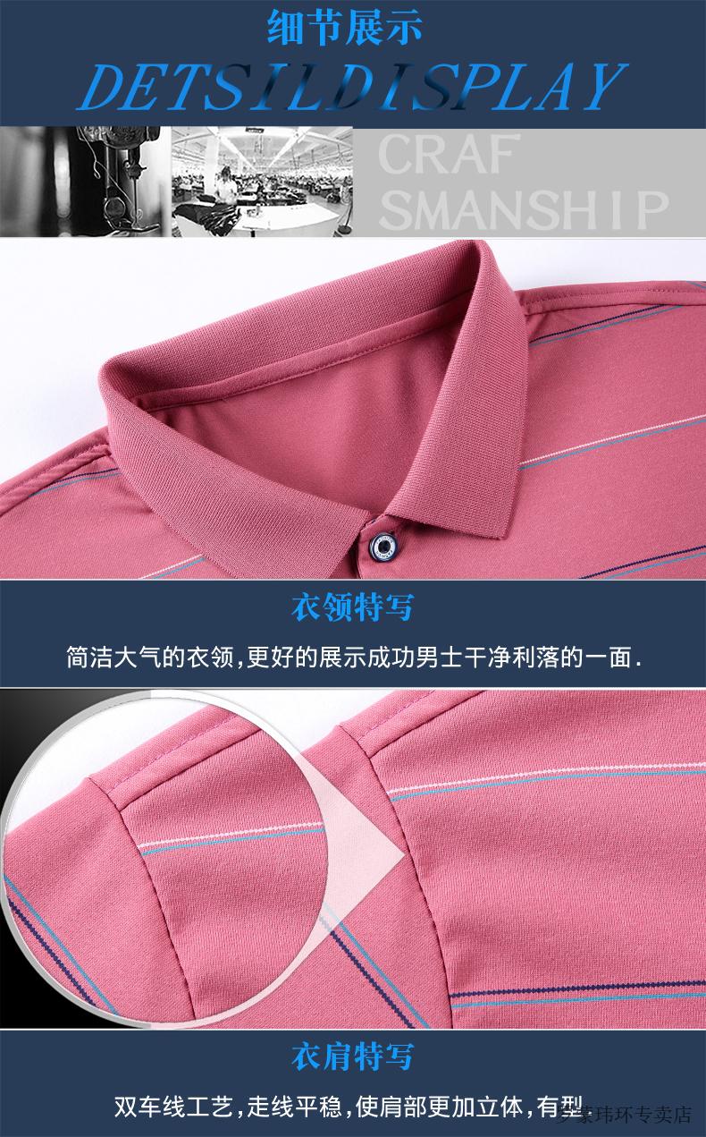 罗蒙(ROMON)翻领短袖t恤男夏季高档棉条纹爸爸高档真口袋潮流衫 ST733皮红 180/2XL(建议150-170斤)