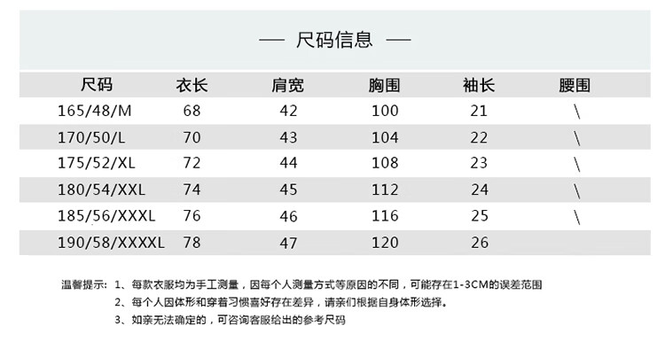 China (cm) 160-165/84-86 165-170 / 88-90 167-172 / 92-96 168-173 / 98-102 170-176 / 106-110