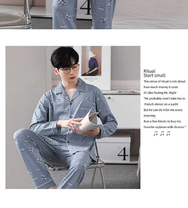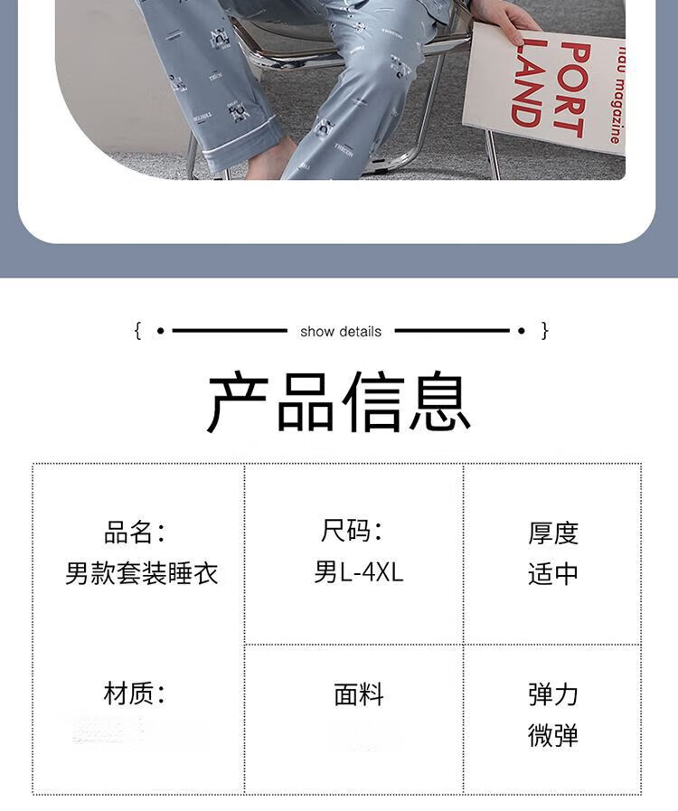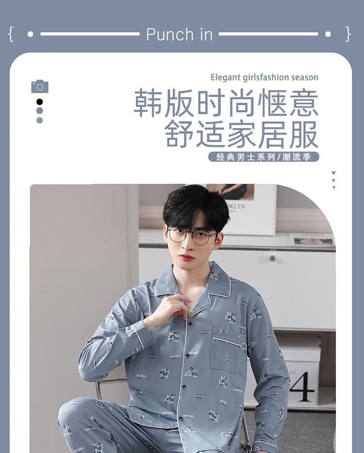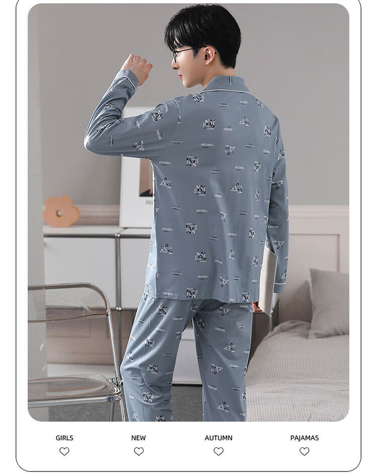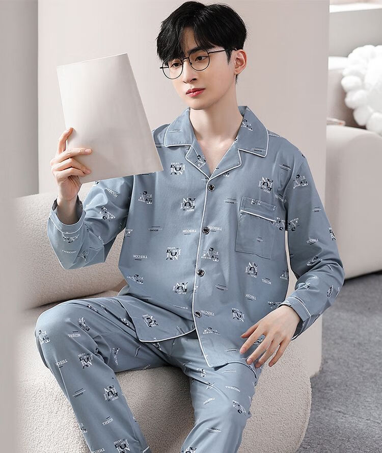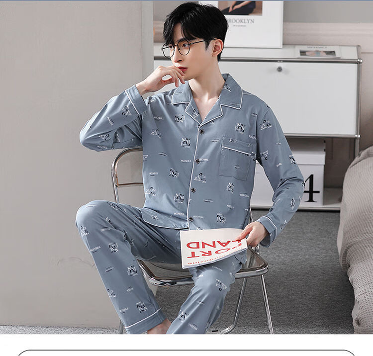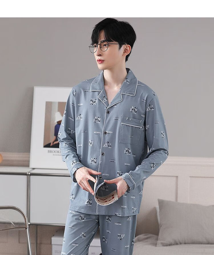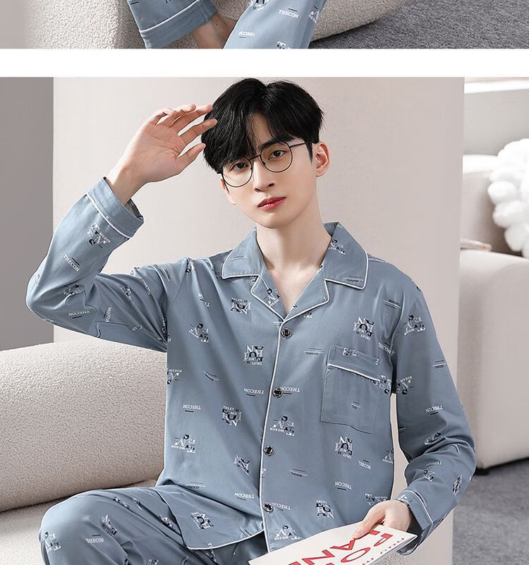 浪莎2024年新款睡衣男士春秋款加绒长袖青少年男式秋季家居服套装 W-自成一格9926男 XL