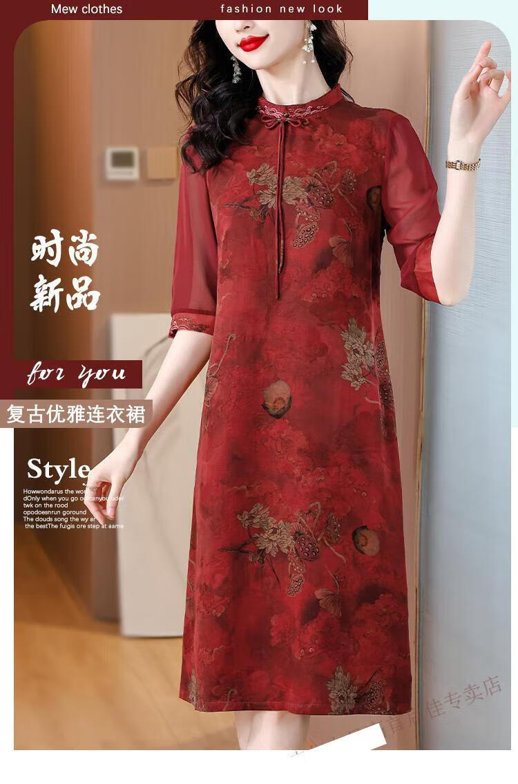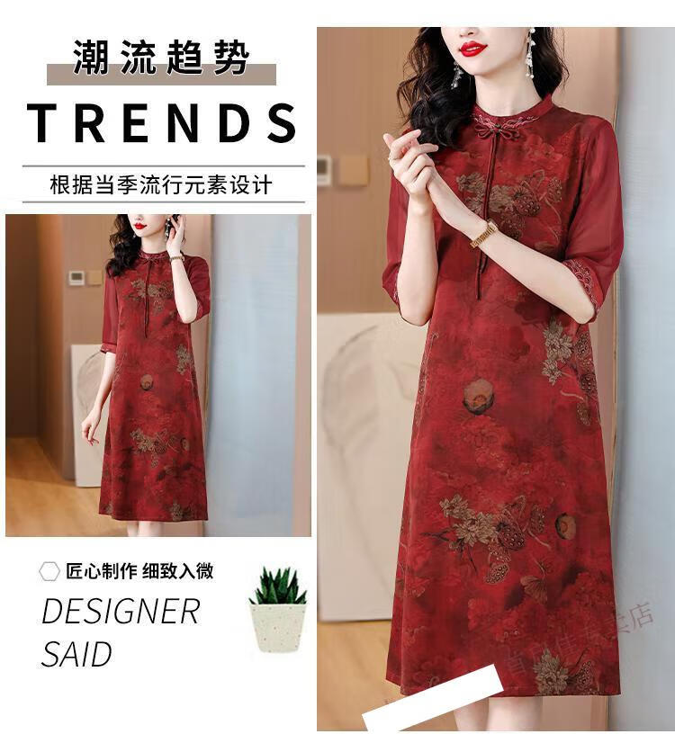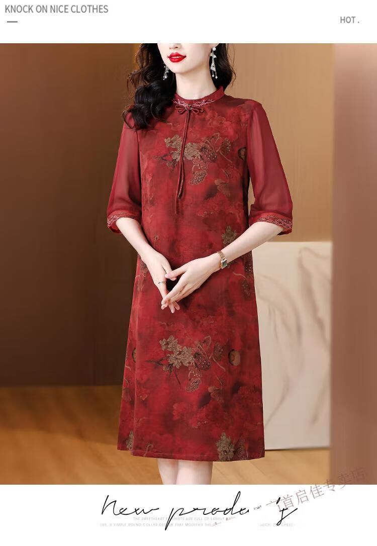 初径香云纱连衣裙新款喜婆婆婚宴装日常可穿高贵年轻礼服改良旗袍 红色 JY-9901 L