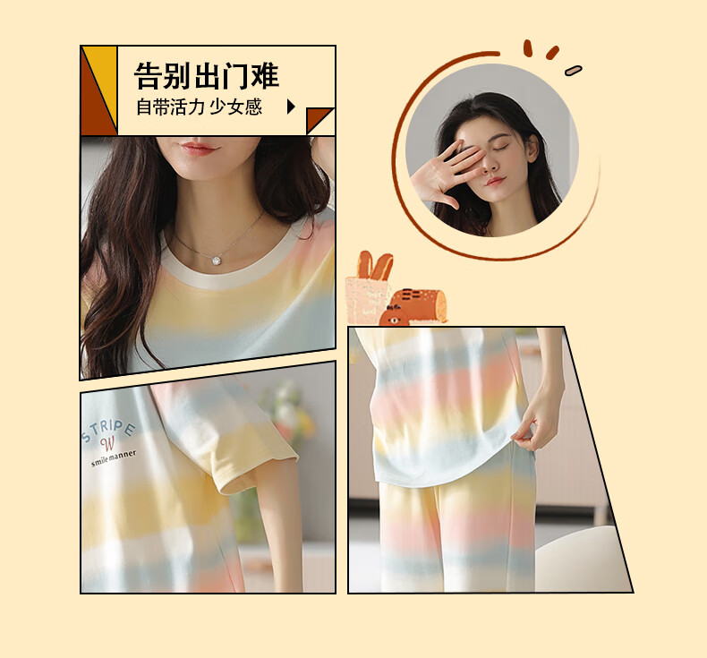 莫代尔睡衣女士夏季纯棉薄款可爱短袖长裤可外穿套装春秋宽松夏天家居服 花色 Y9711 XL (建议115-130斤)