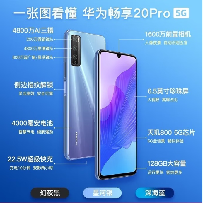 HUAWEI华为 畅享20/ 20Pro 5G全网通 二手手机 游戏手机 手机华为 5G手机 畅享20 亮黑色 4+128G 95新