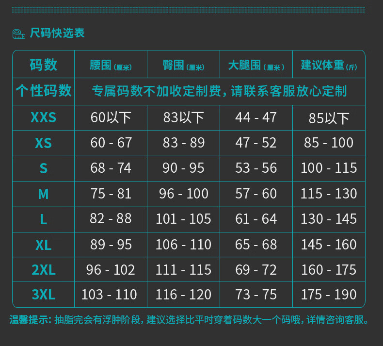 USA(inch) 28-30 30-32 32-34 34-38 38-42