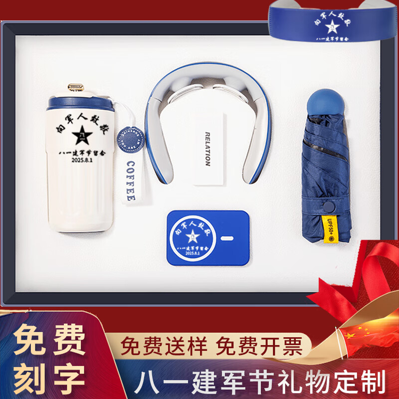 Entre los obsequios, recuerdos de la reunión anual de Año Nuevo de empresa, empresa y unidad, prácticas cajas de regalo de recuerdos para clientes y empleados, práctica taza de café azul con logotipo personalizado 316 + protector para el cuello.