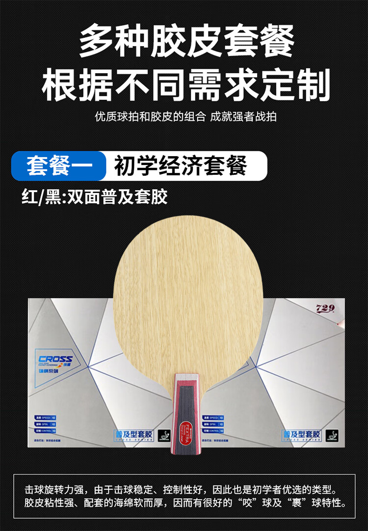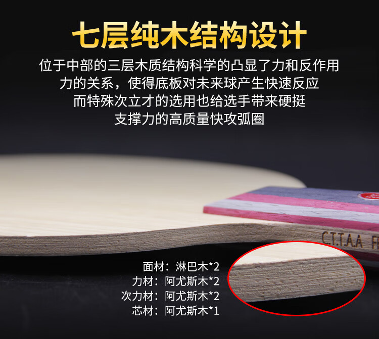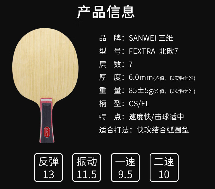 三维三维北欧7乒乓球底板七层纯木球拍板纯木初学学生专业级DIY套餐 北欧7横拍【双面729普及套】
