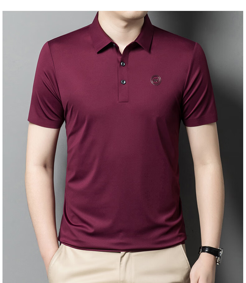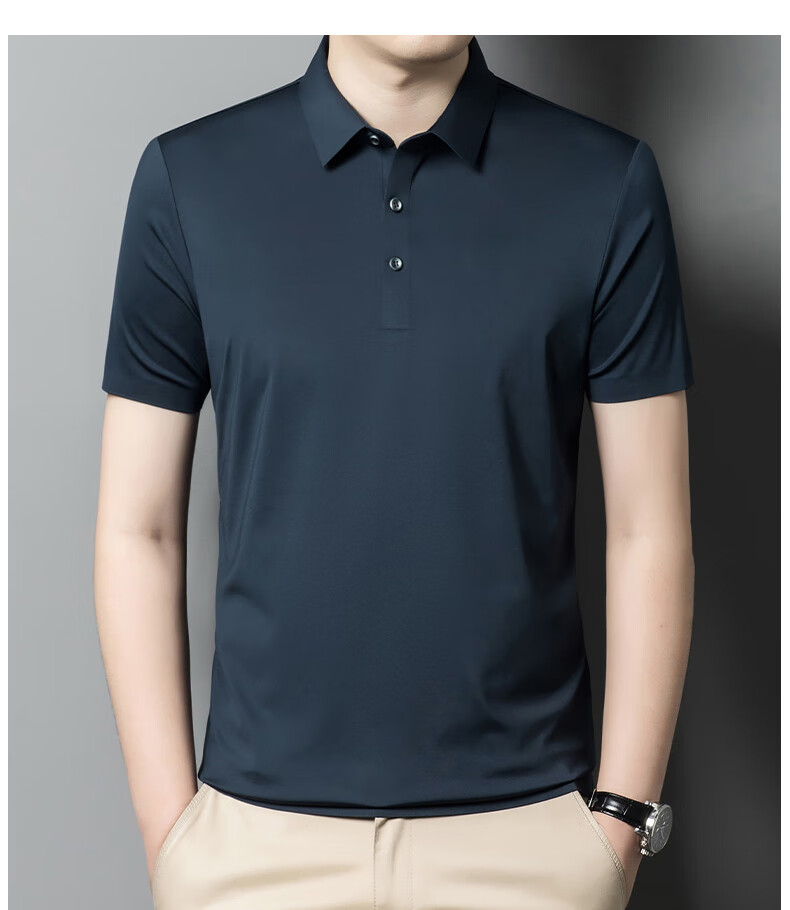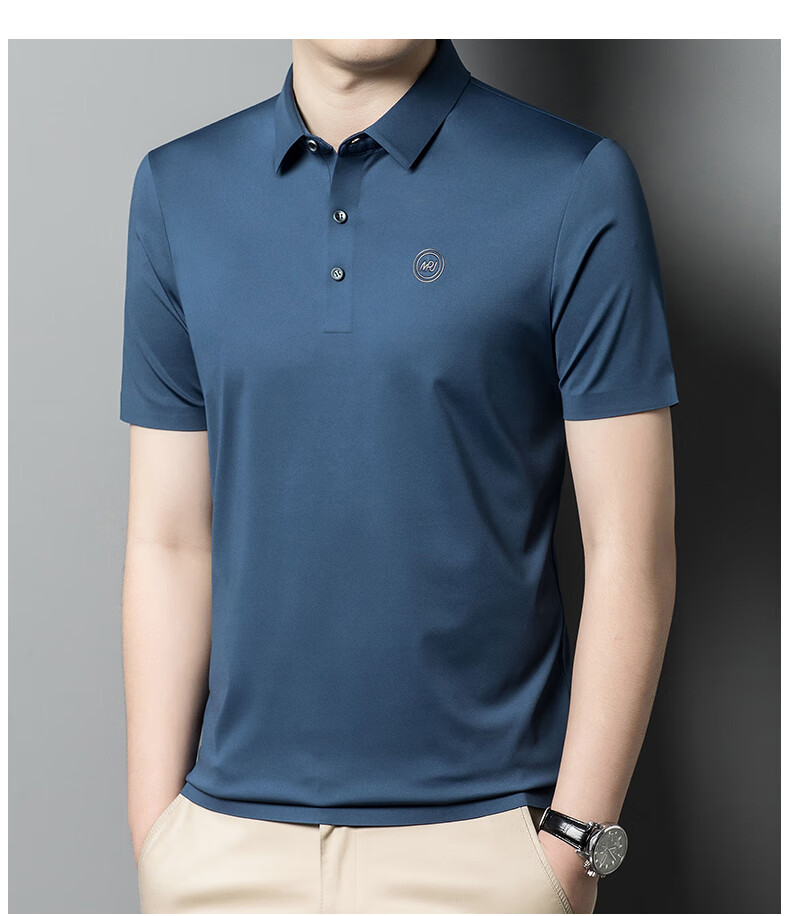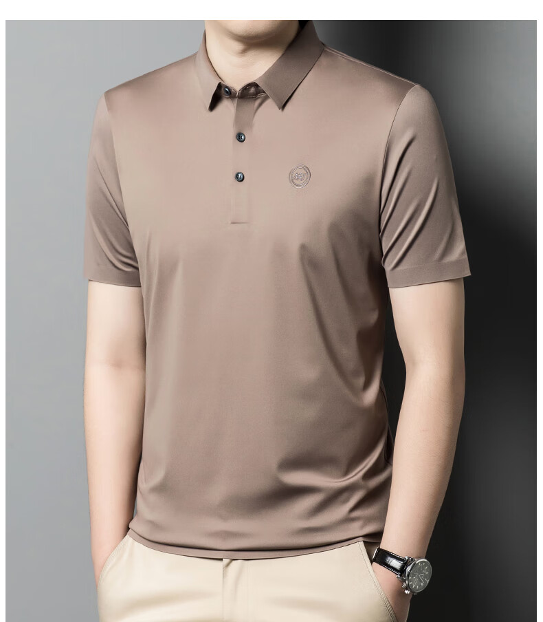 阿尼司伦贵族高端无痕短袖polo衫男夏季薄款纯色亲肤透气百搭上衣t恤男 9859浅咖 L 175码【建议135-149斤】