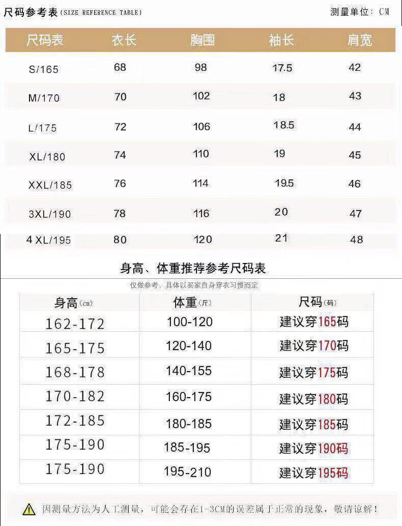 China (cm) 160-165/84-86 165-170 / 88-90 167-172 / 92-96 168-173 / 98-102 170-176 / 106-110