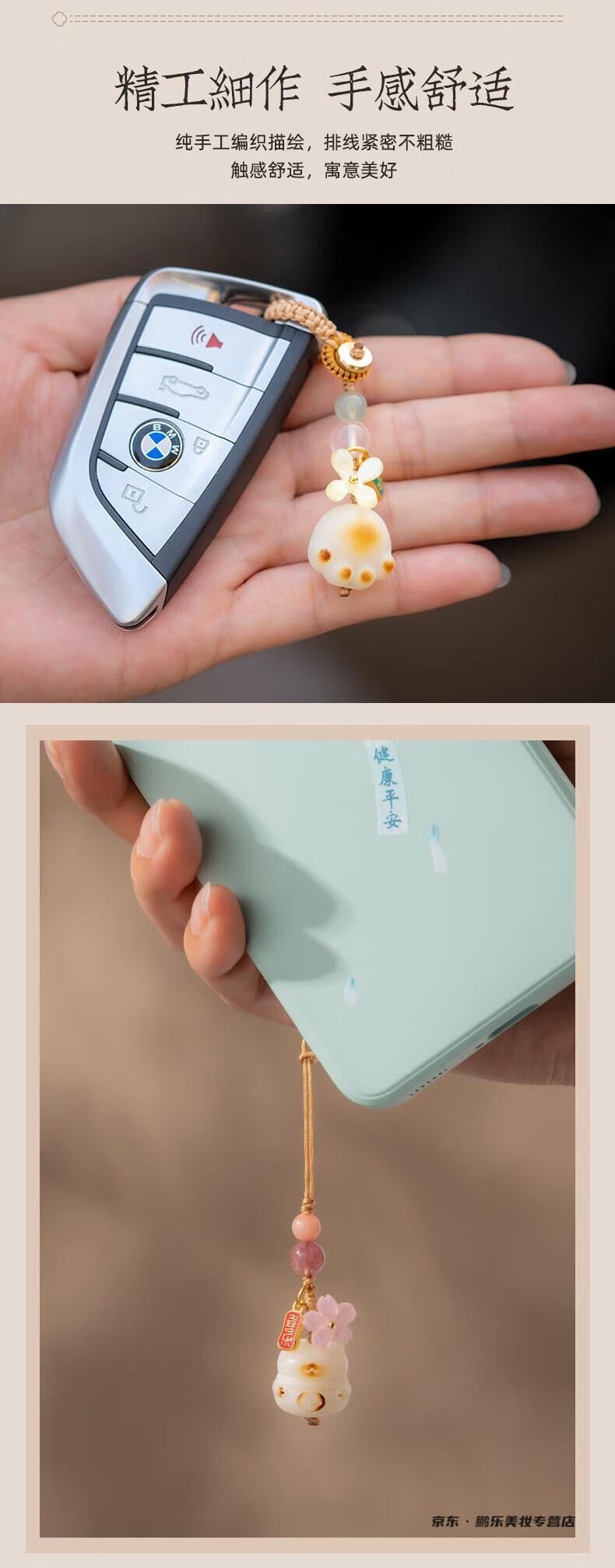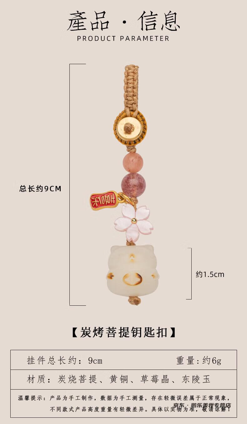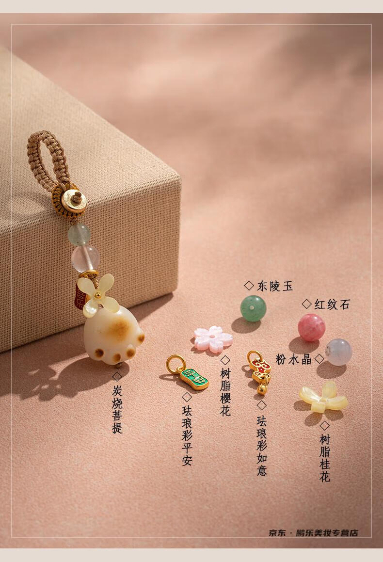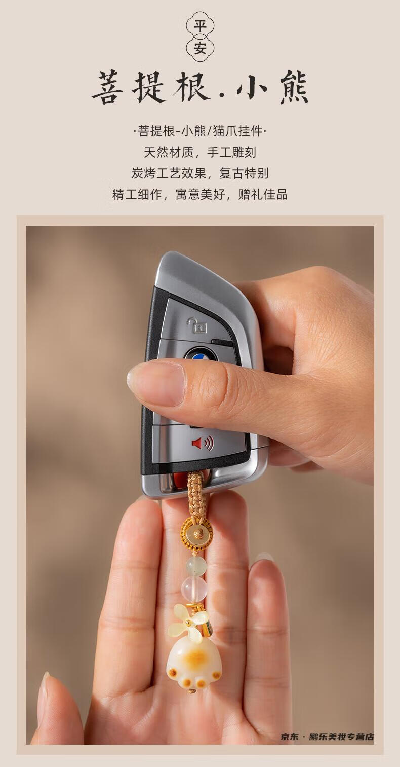 梓嘉福炭烧猫爪菩提根汽车钥匙扣挂件平安挂坠手机链好运小礼物挂饰 【平安喜乐】樱花·小熊菩提手机链