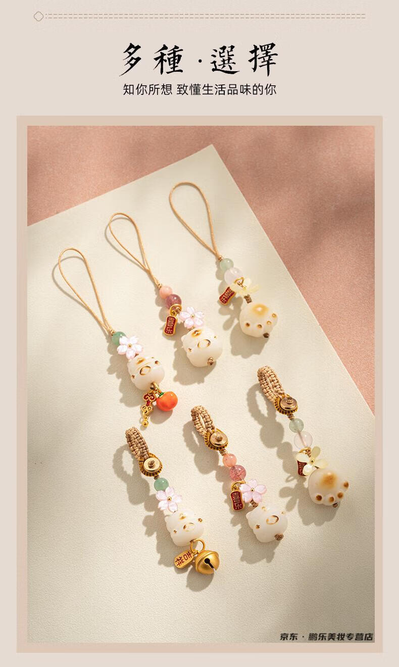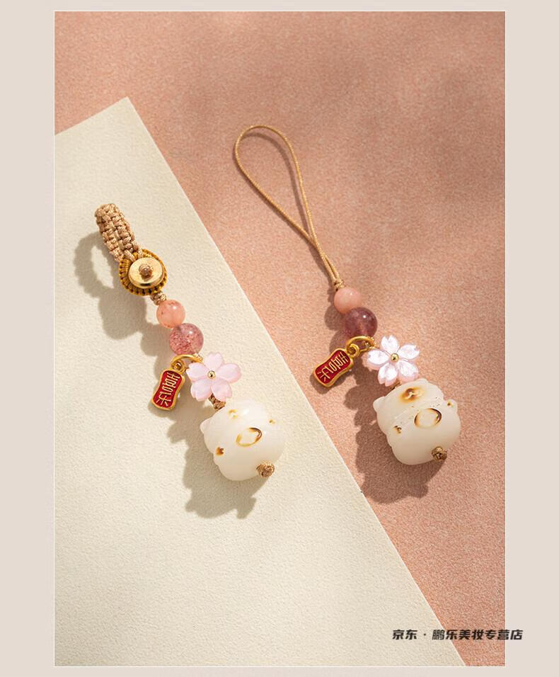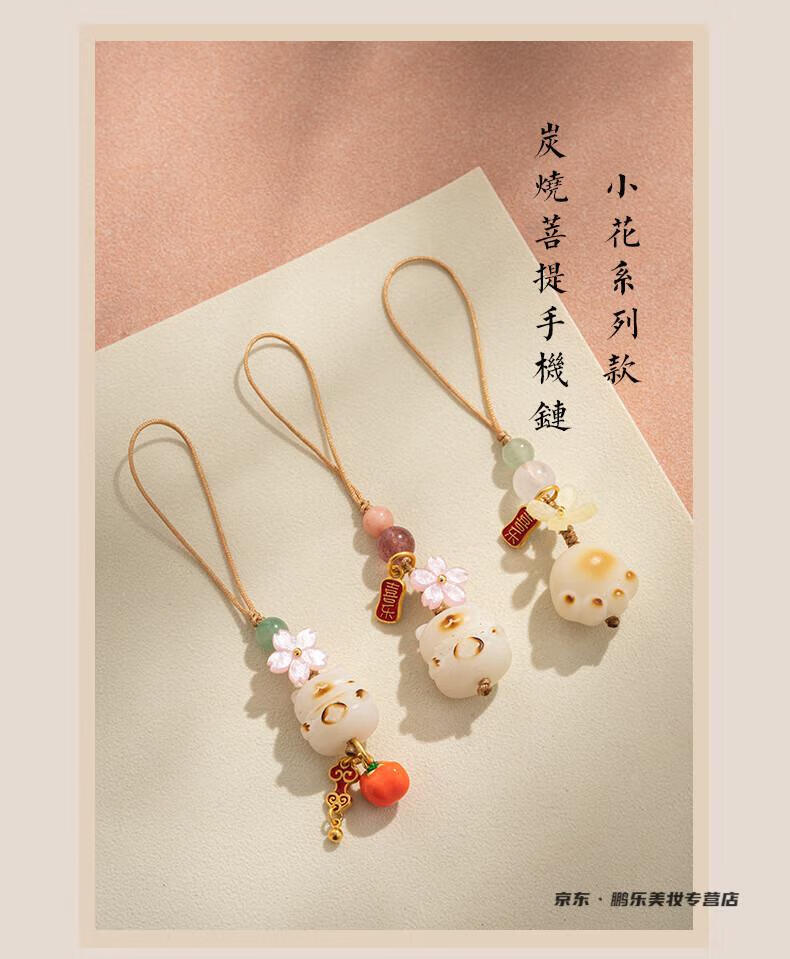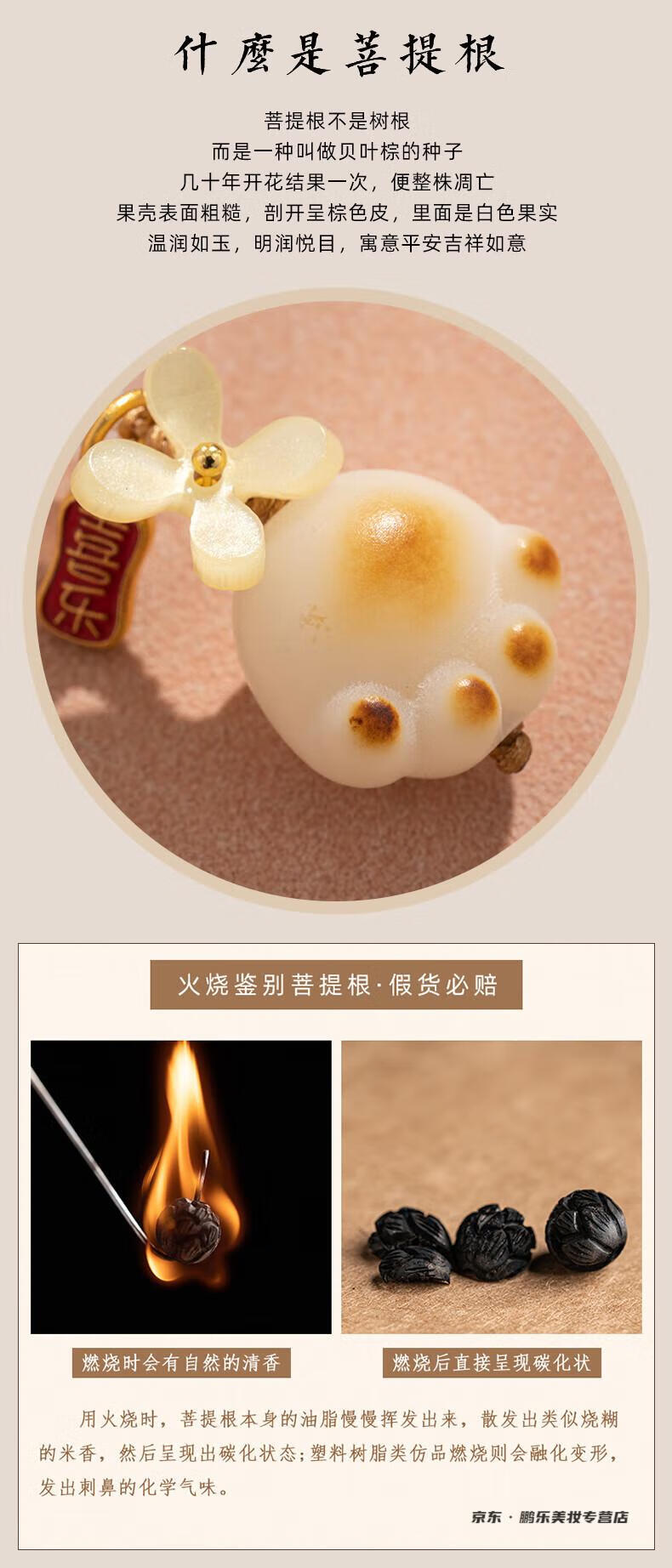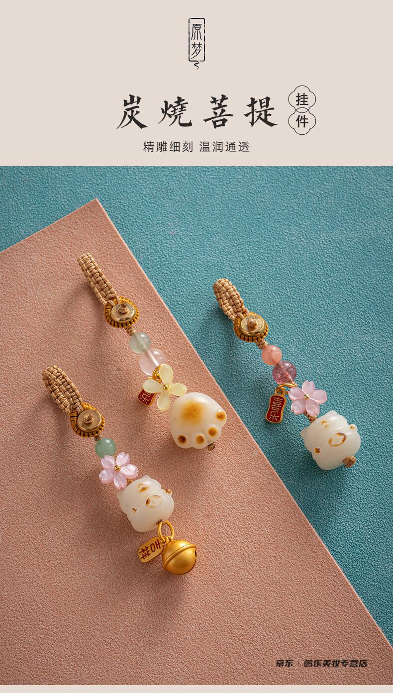 梓嘉福炭烧猫爪菩提根汽车钥匙扣挂件平安挂坠手机链好运小礼物挂饰 【平安喜乐】樱花·小熊菩提手机链