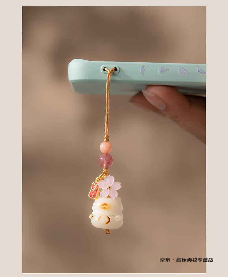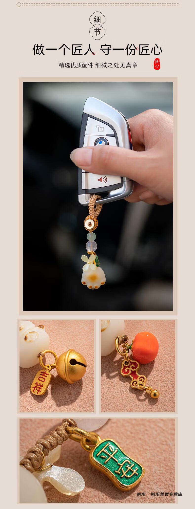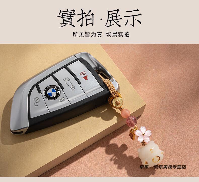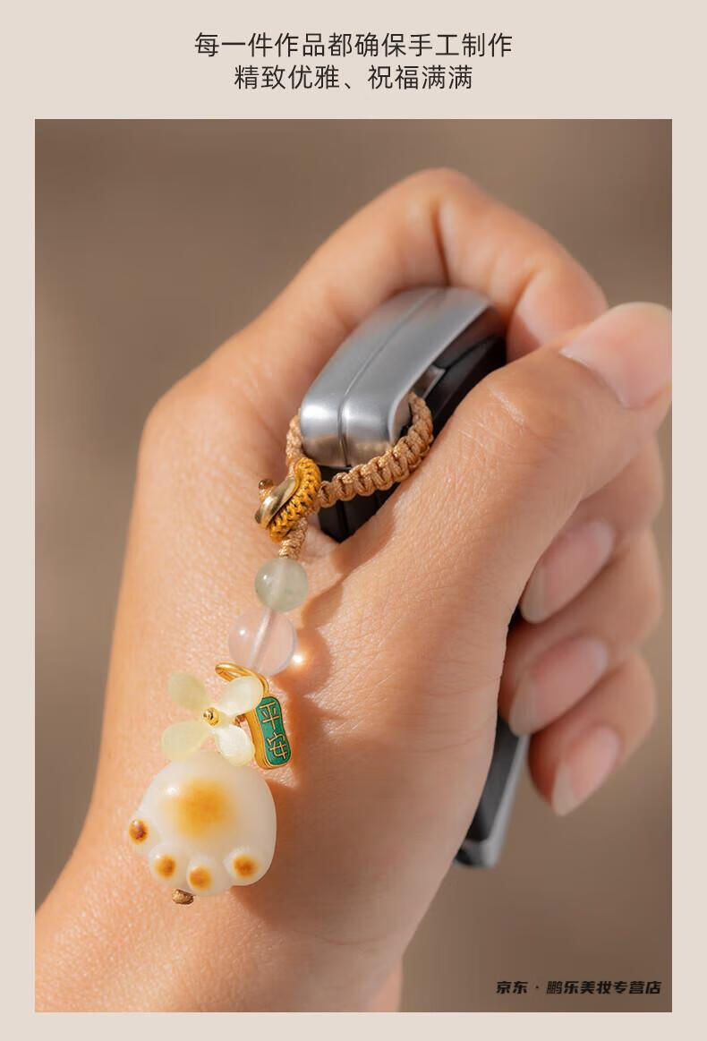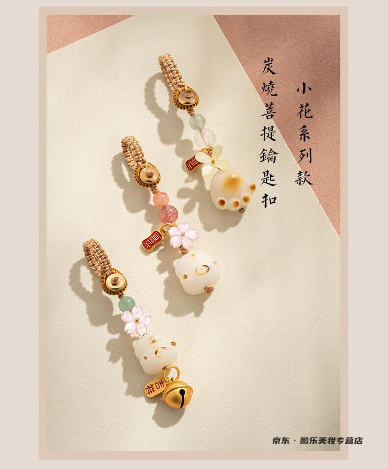 梓嘉福炭烧猫爪菩提根汽车钥匙扣挂件平安挂坠手机链好运小礼物挂饰 【平安喜乐】樱花·小熊菩提手机链