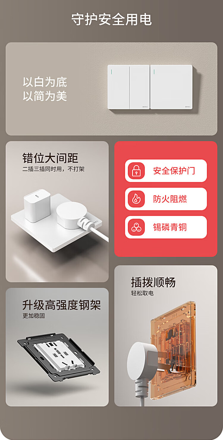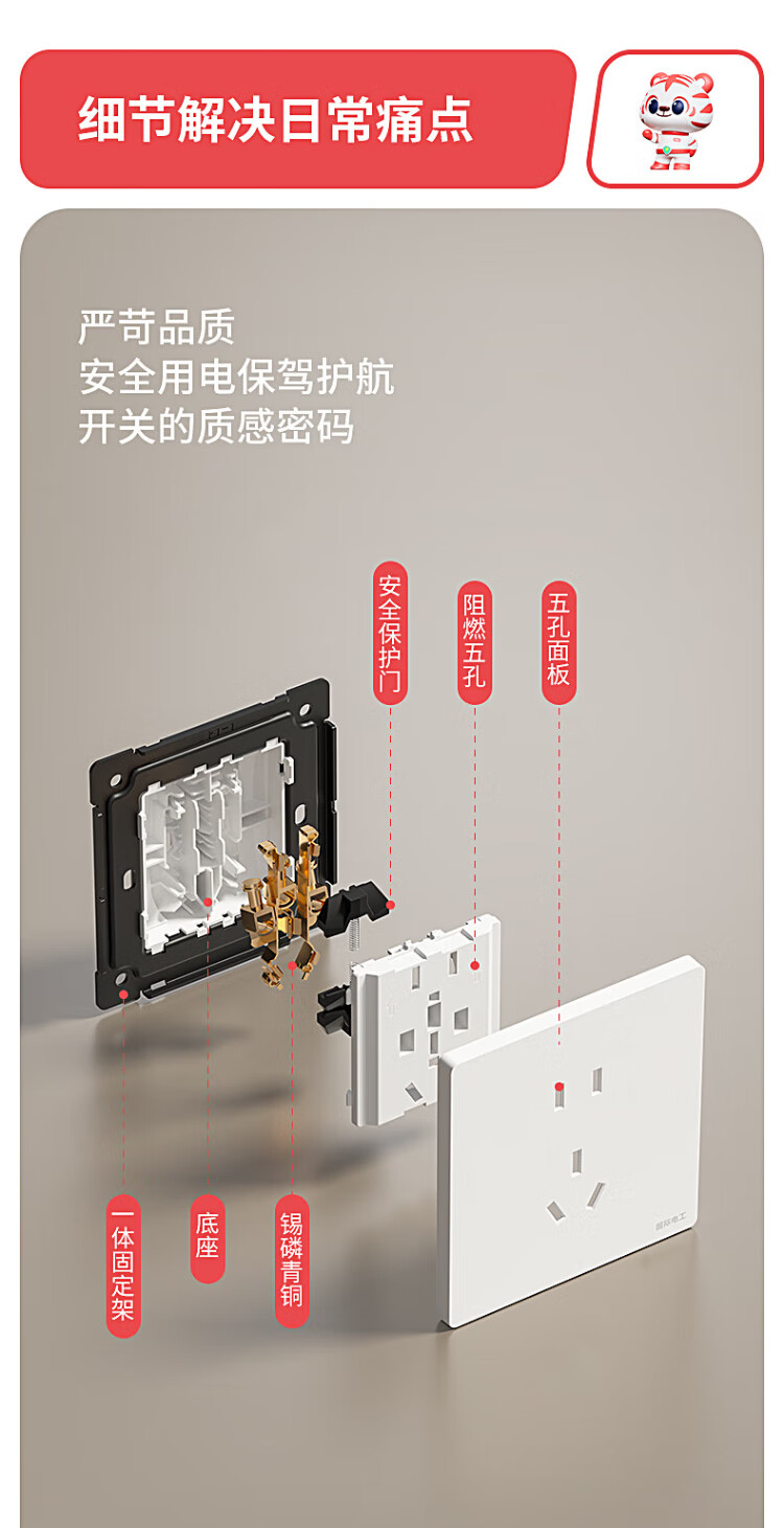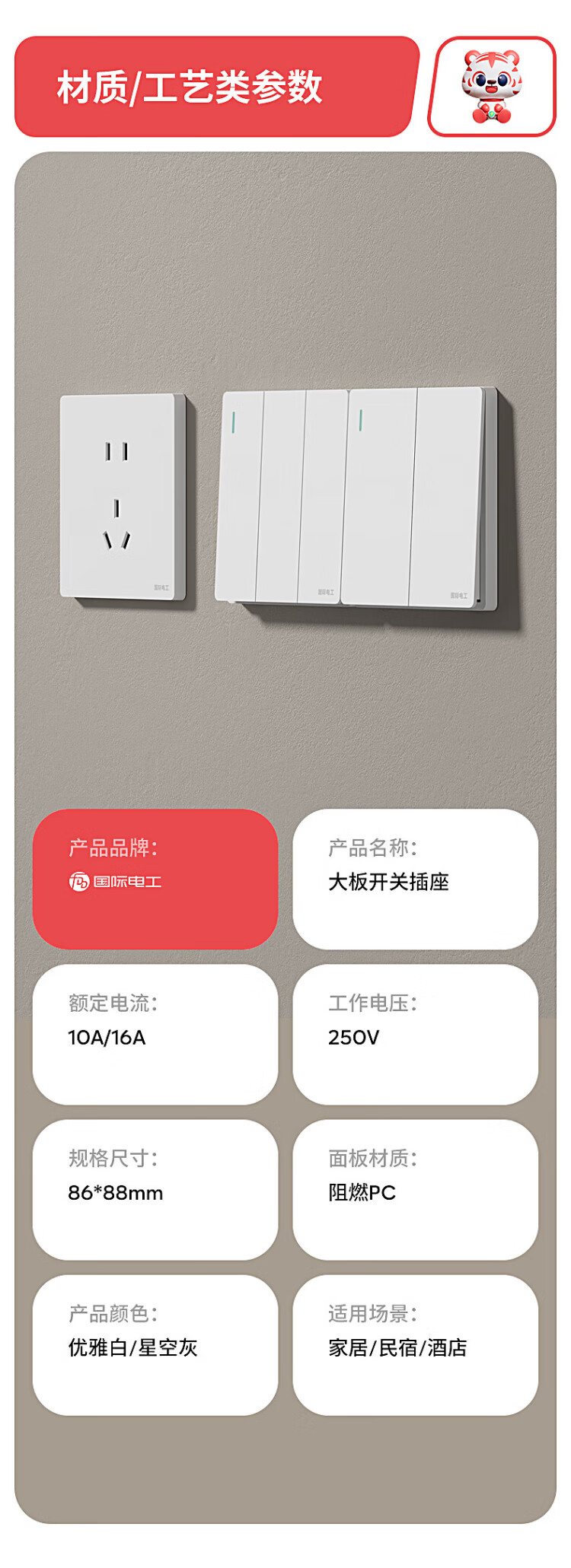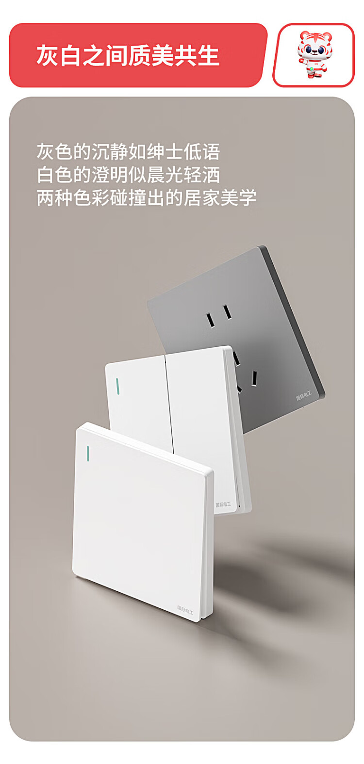 国际电工开关插座86暗装奶油风五孔插座带开关白色面板双控中途开关 五孔插座