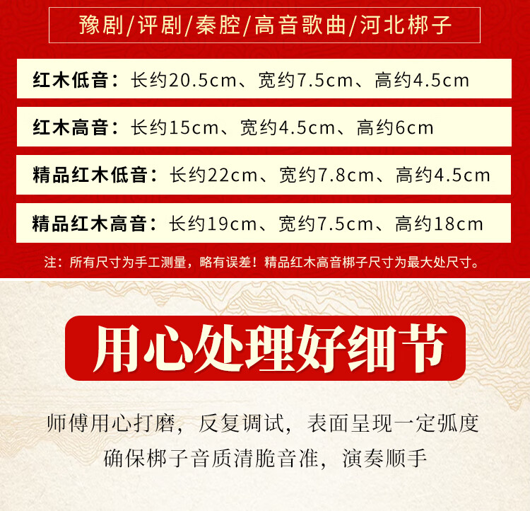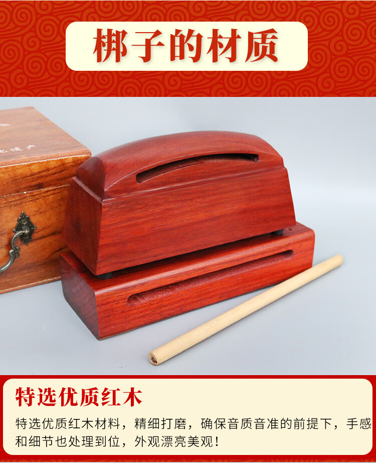 新宝梆子打击乐器红木高音低音梆子高音低音木鱼敲棒双音梆子戏曲梆子 红木(高音梆子)+敲棒