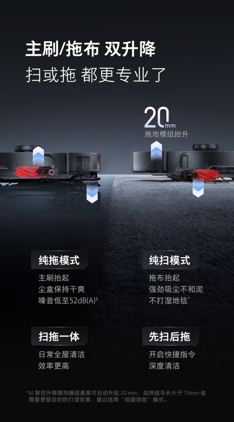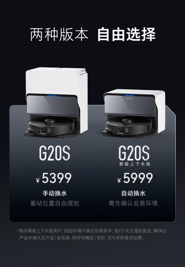石头(roborock)G20S 自动扫地机器人 扫拖一体 自动上下水 清洗集尘 拖布免洗 家用自动清洗拖地机  G20S水箱版「手动换水」