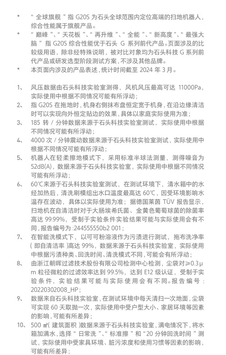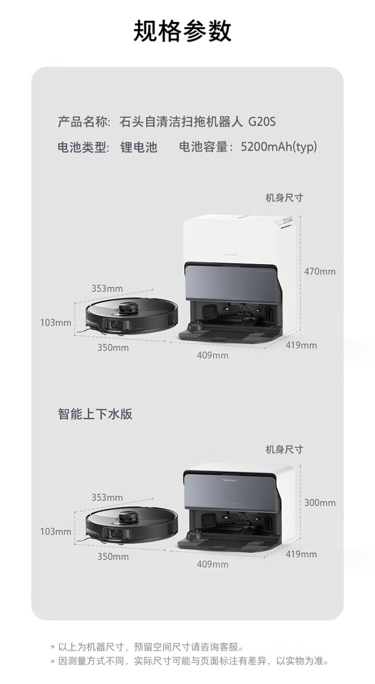 石头(roborock)G20S 自动扫地机器人 扫拖一体 自动上下水 清洗集尘 拖布免洗 家用自动清洗拖地机 G20S水箱版「手动换水」