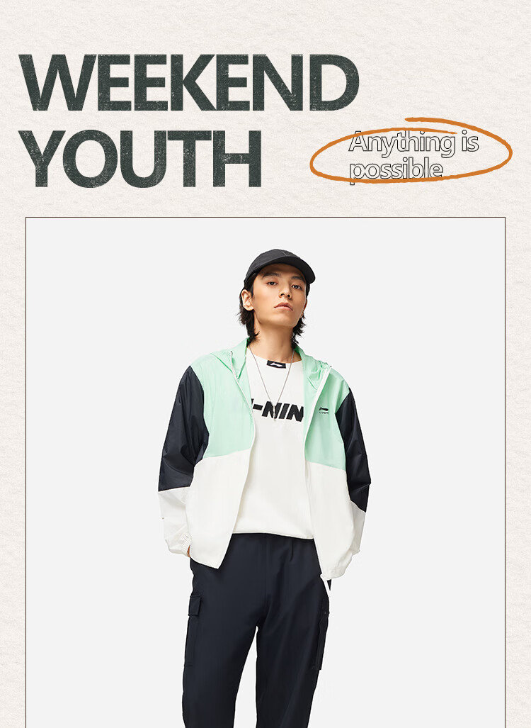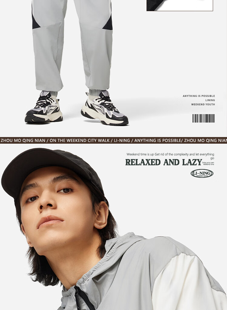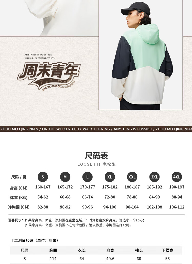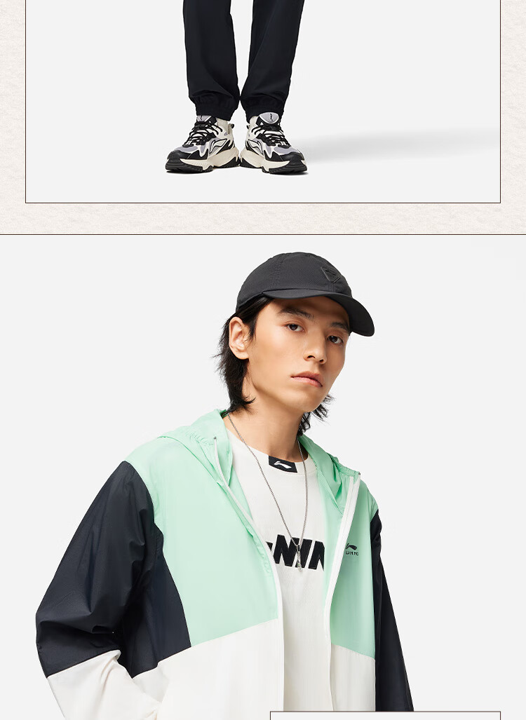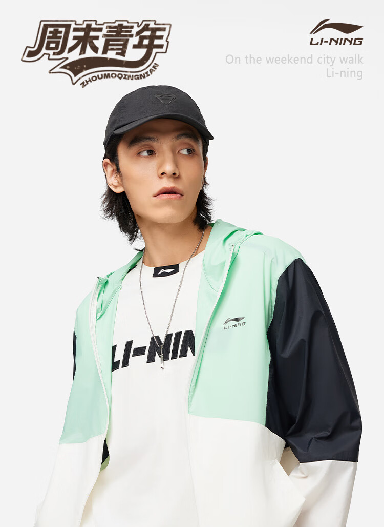李宁运动潮流系列男子24撞色宽松运动夹克风衣 灰黑色拼色AFDU363-1 L