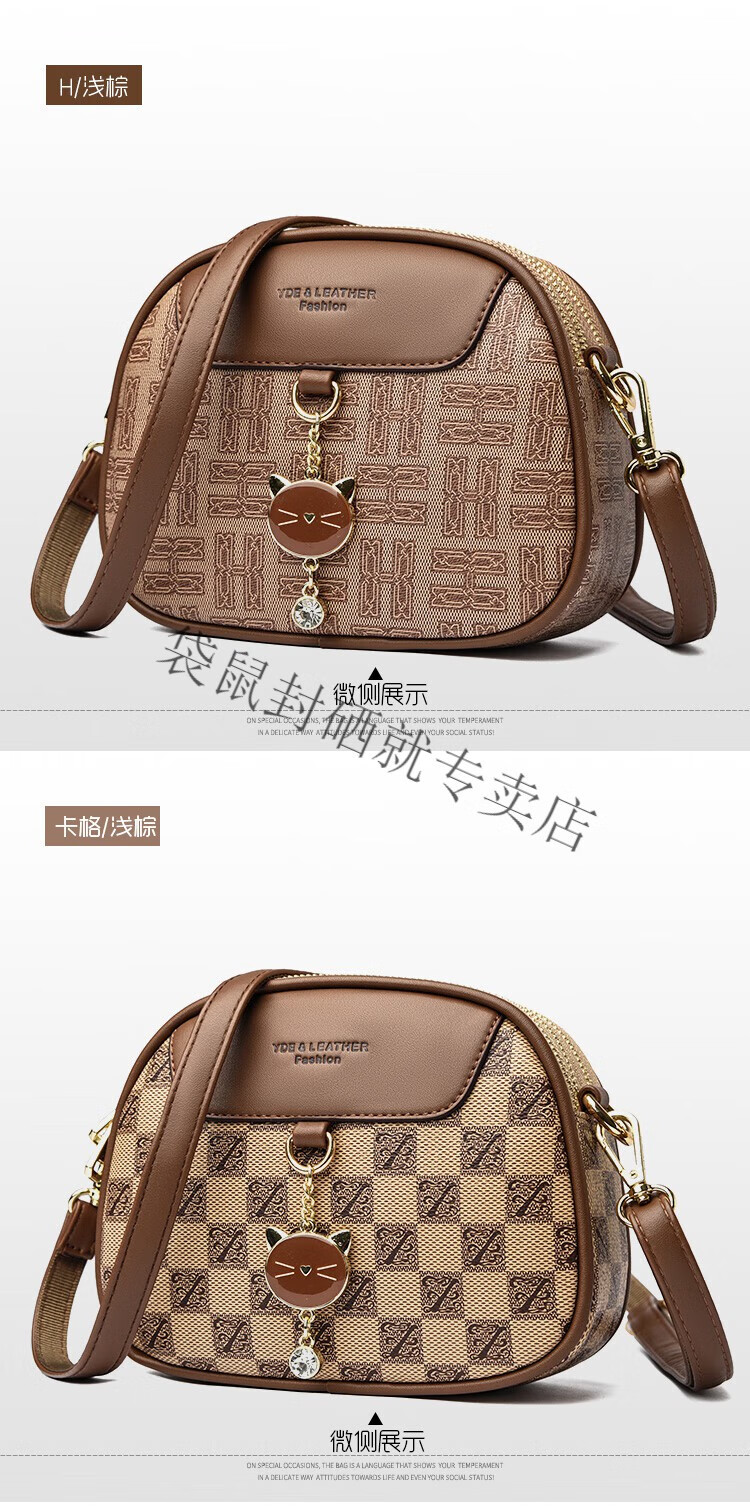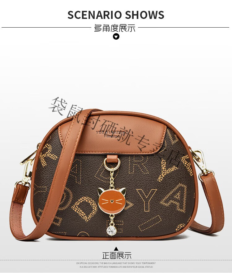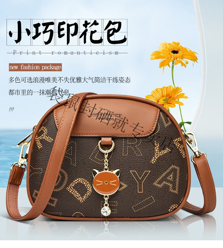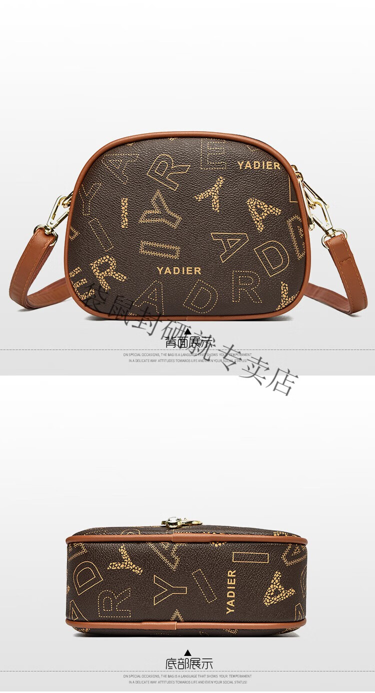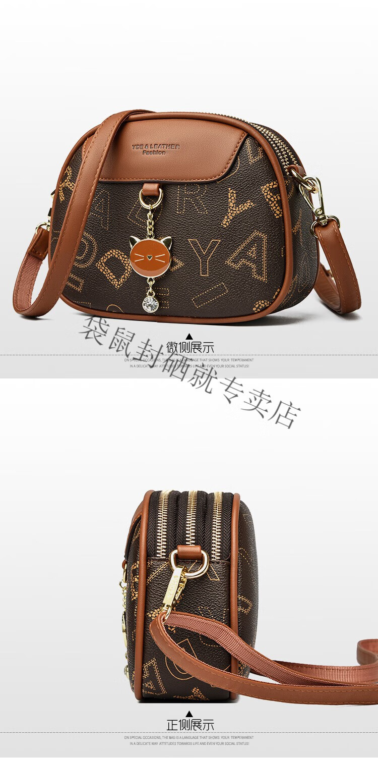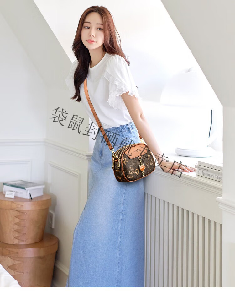 袋鼠真皮包包女2024春夏七夕潮时尚印花小圆包百搭高级感单肩斜挎包 大字母棕色