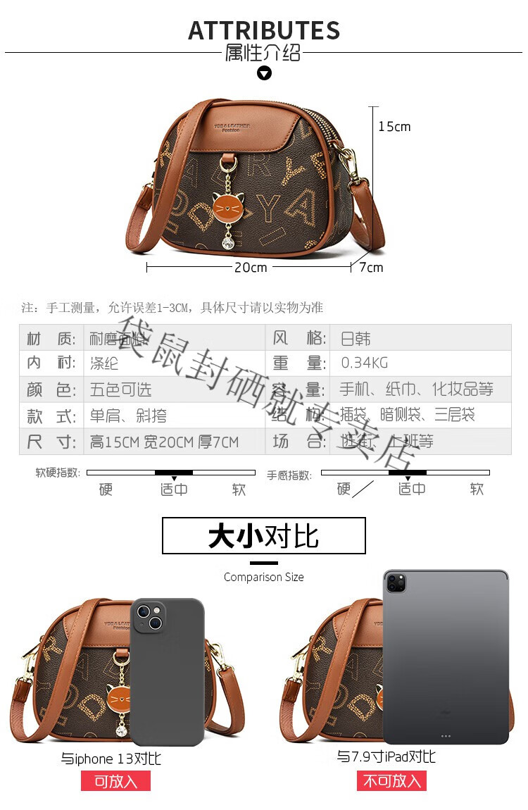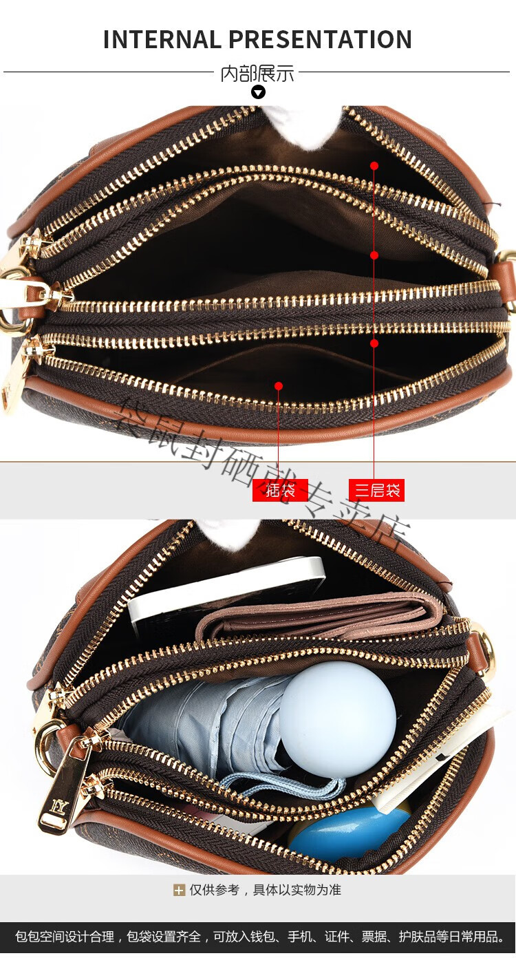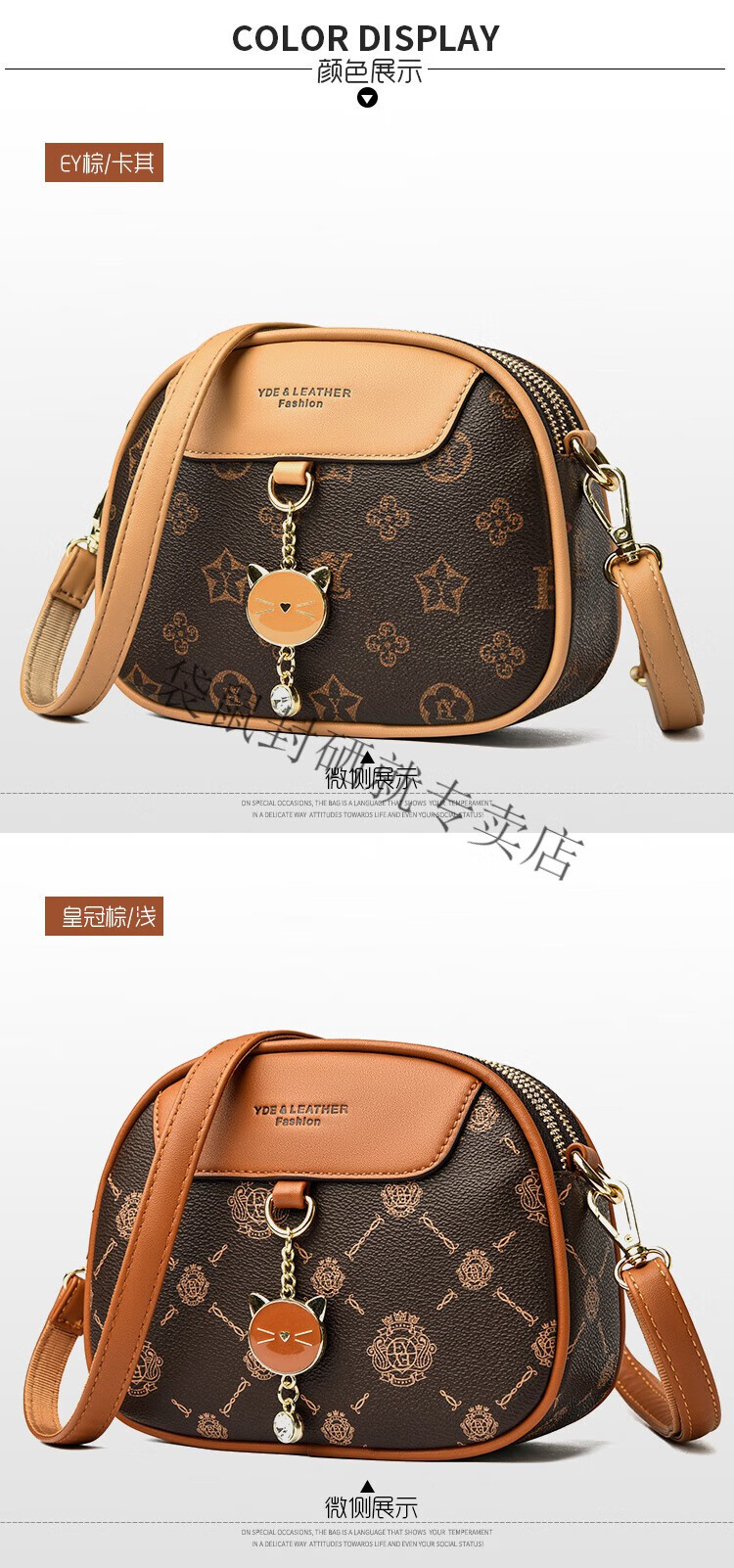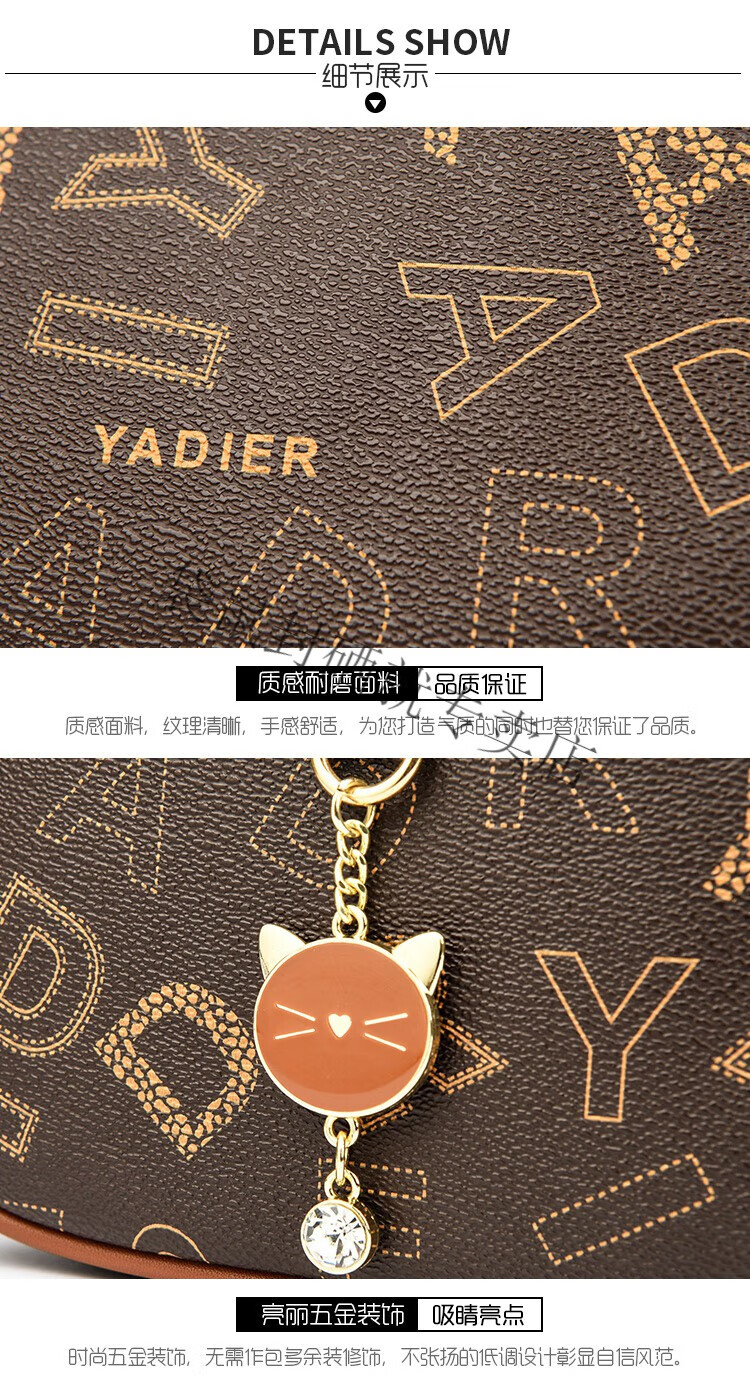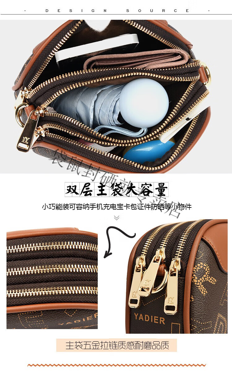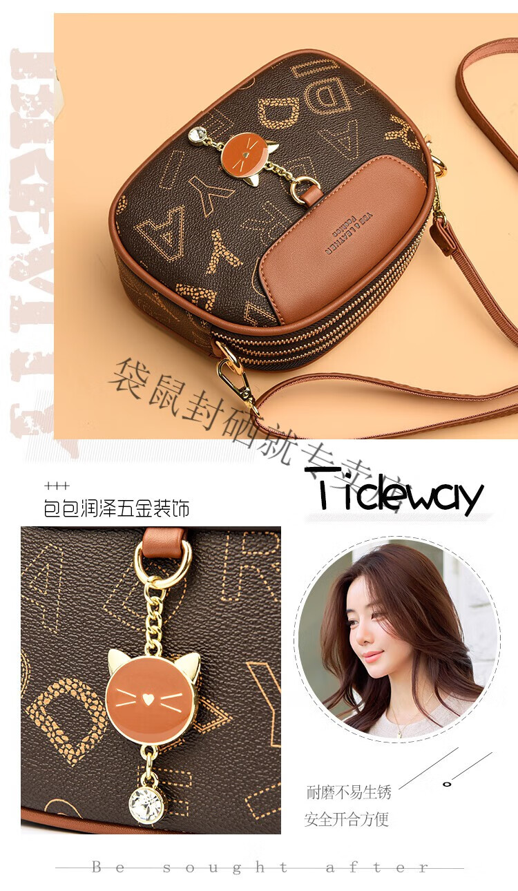 袋鼠真皮包包女2024春夏七夕潮时尚印花小圆包百搭高级感单肩斜挎包 大字母棕色