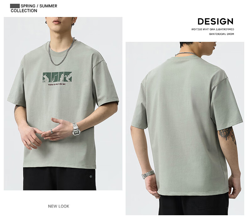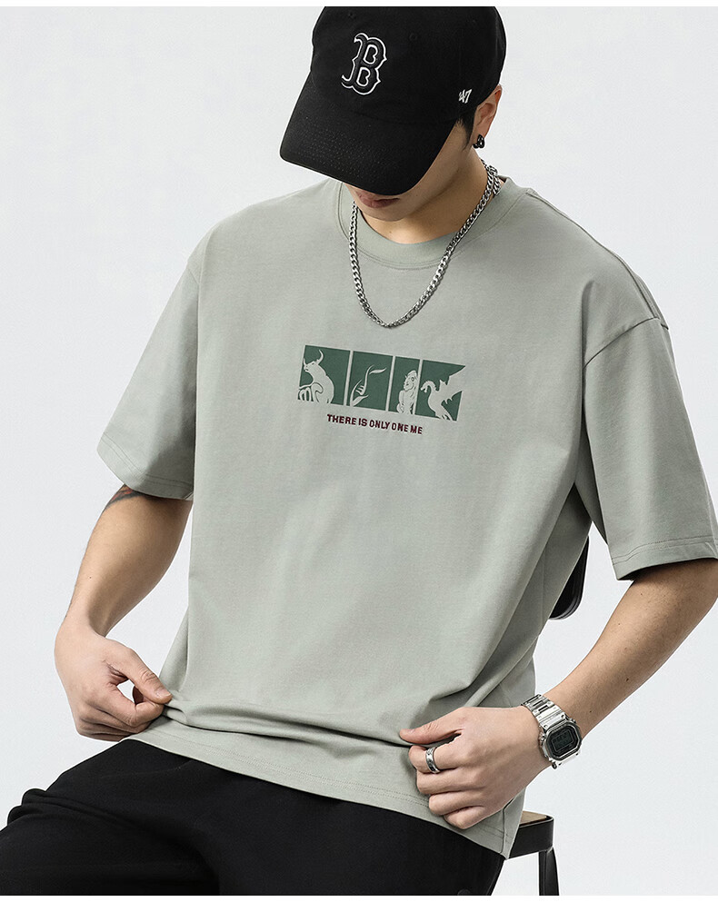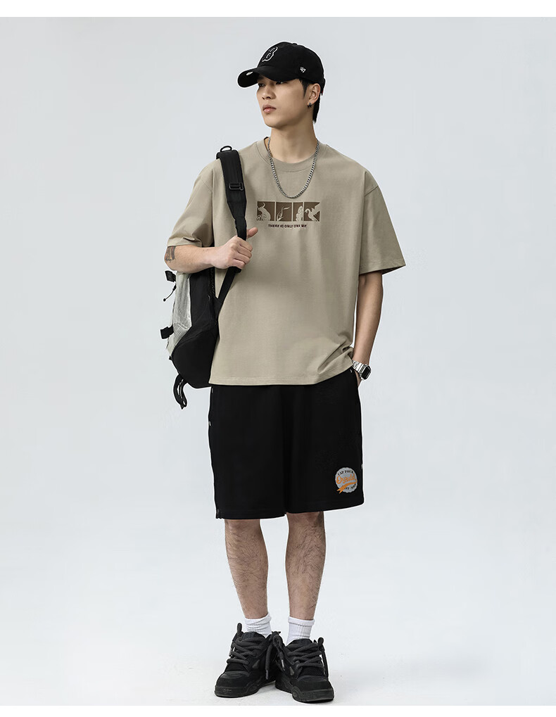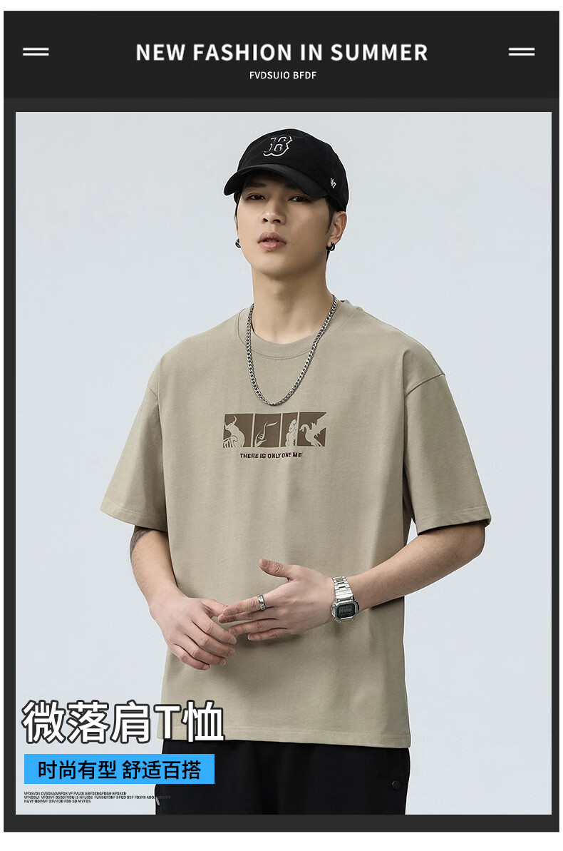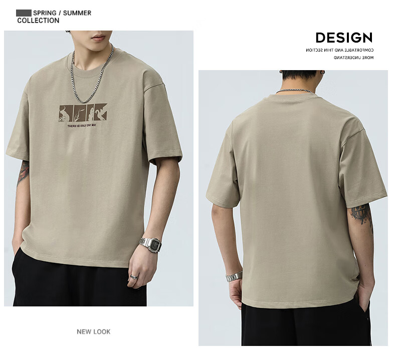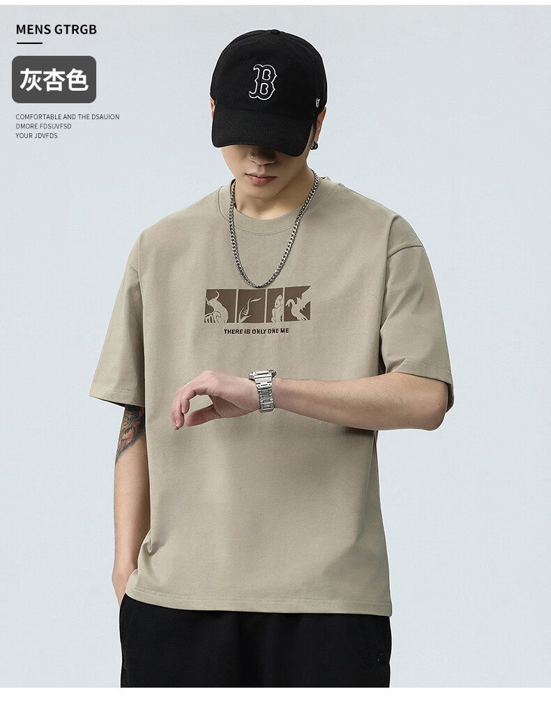 JEEP SPIRIT短袖t恤男夏季新款宽松冰丝五分袖印花男士半袖圆领休闲上衣 8105灰杏色 L