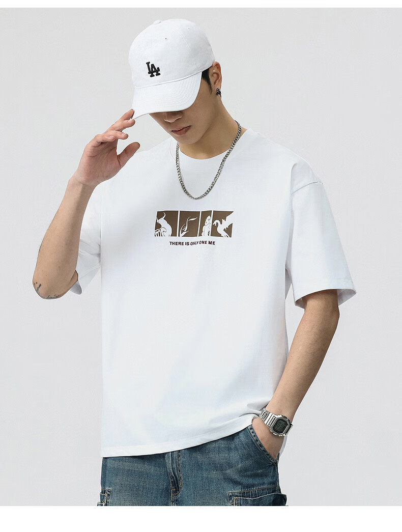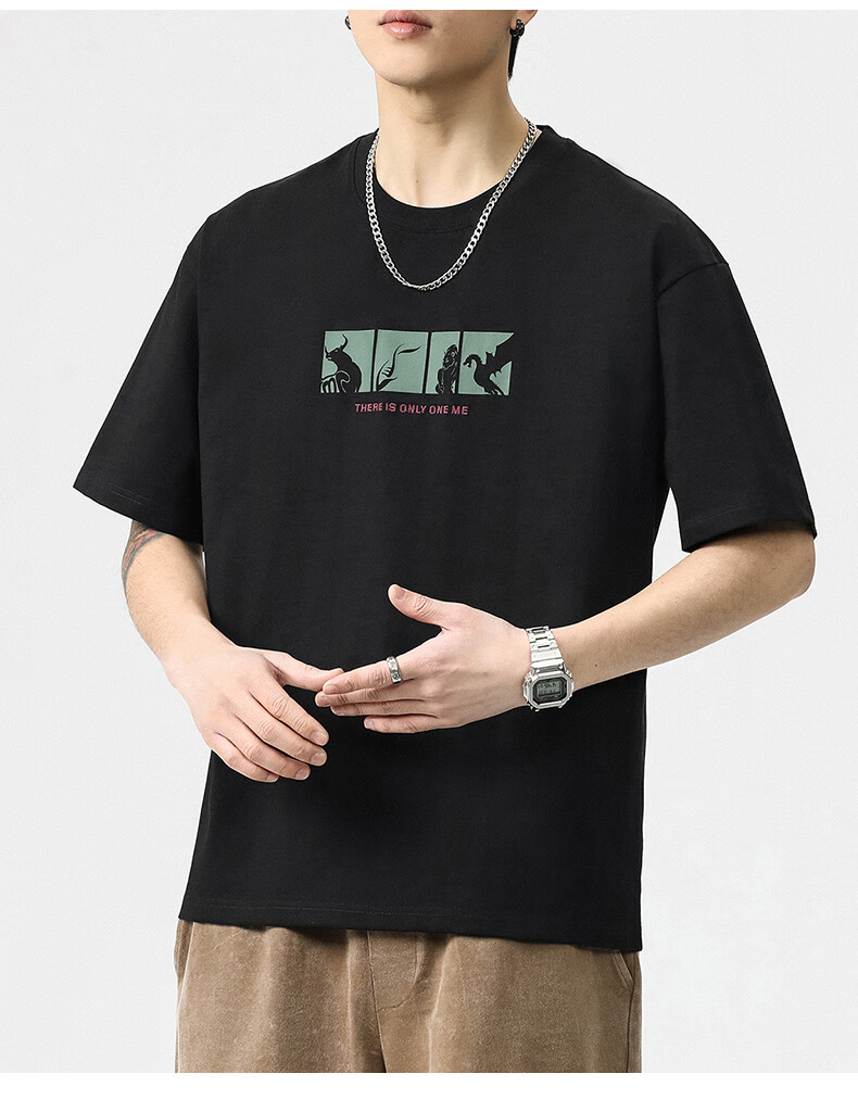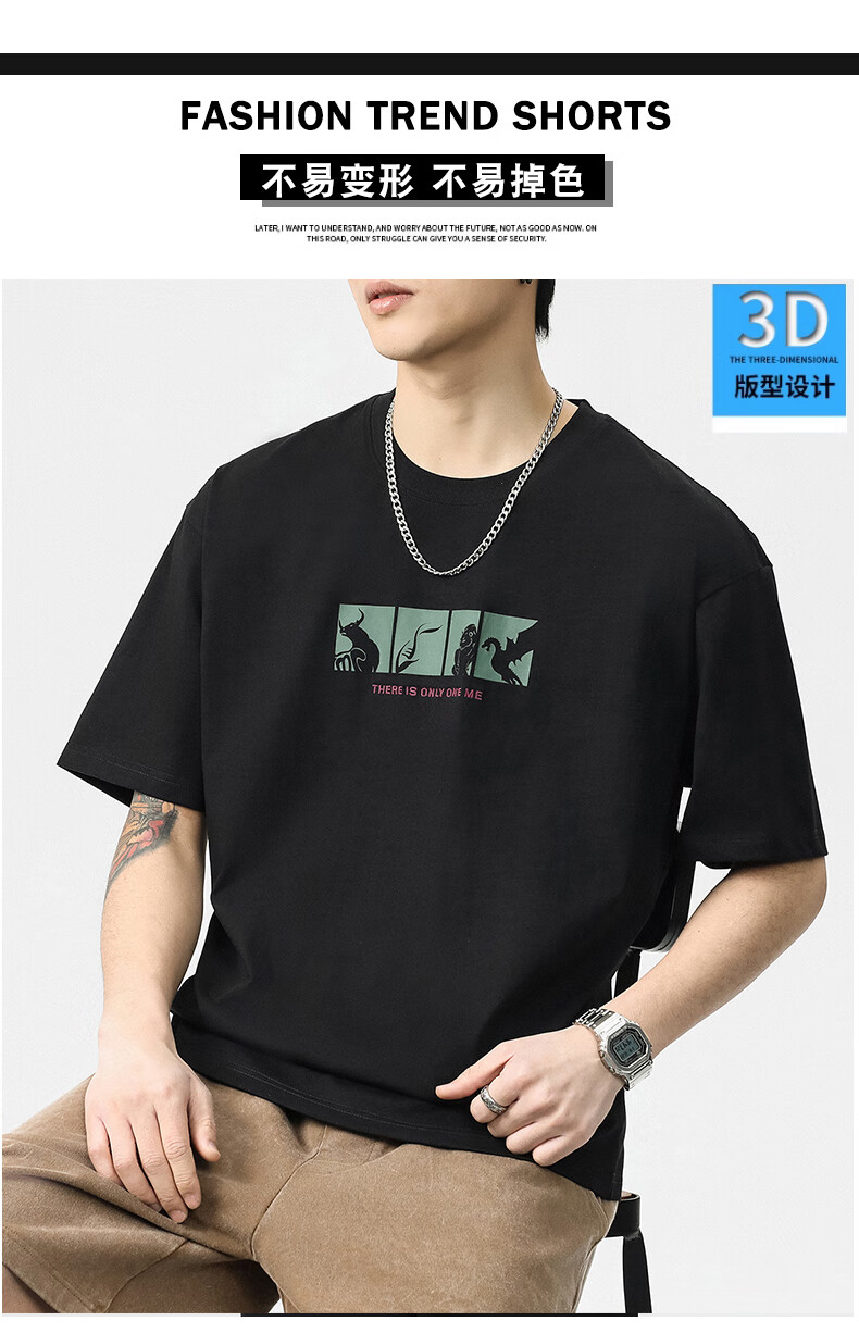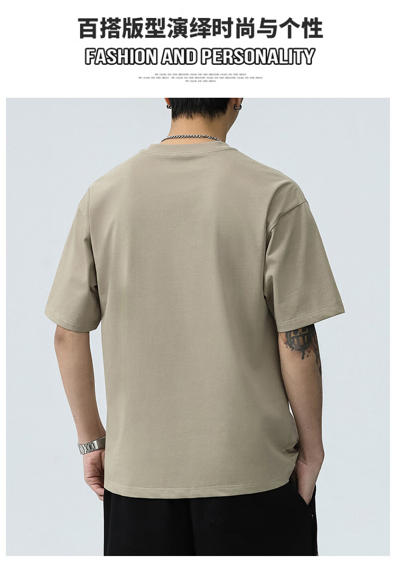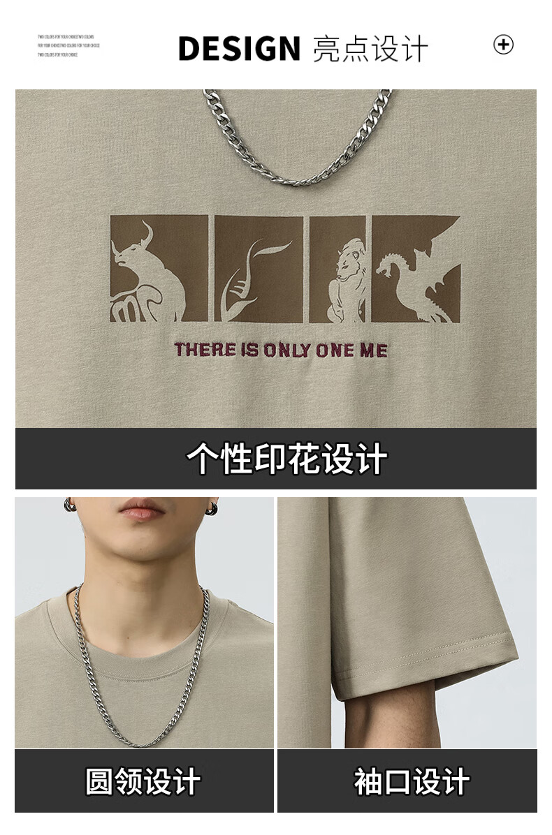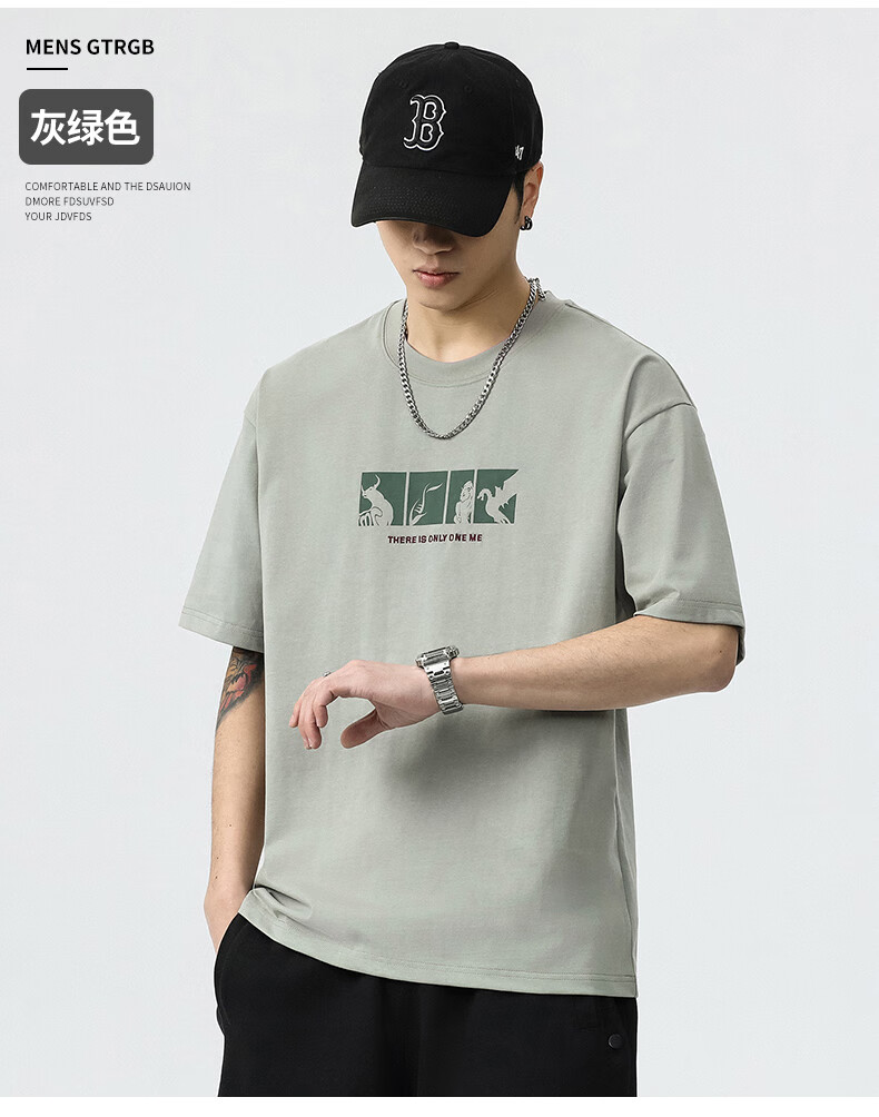 JEEP SPIRIT短袖t恤男夏季新款宽松冰丝五分袖印花男士半袖圆领休闲上衣 8105灰杏色 L