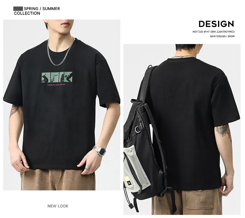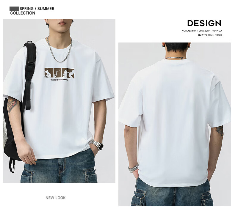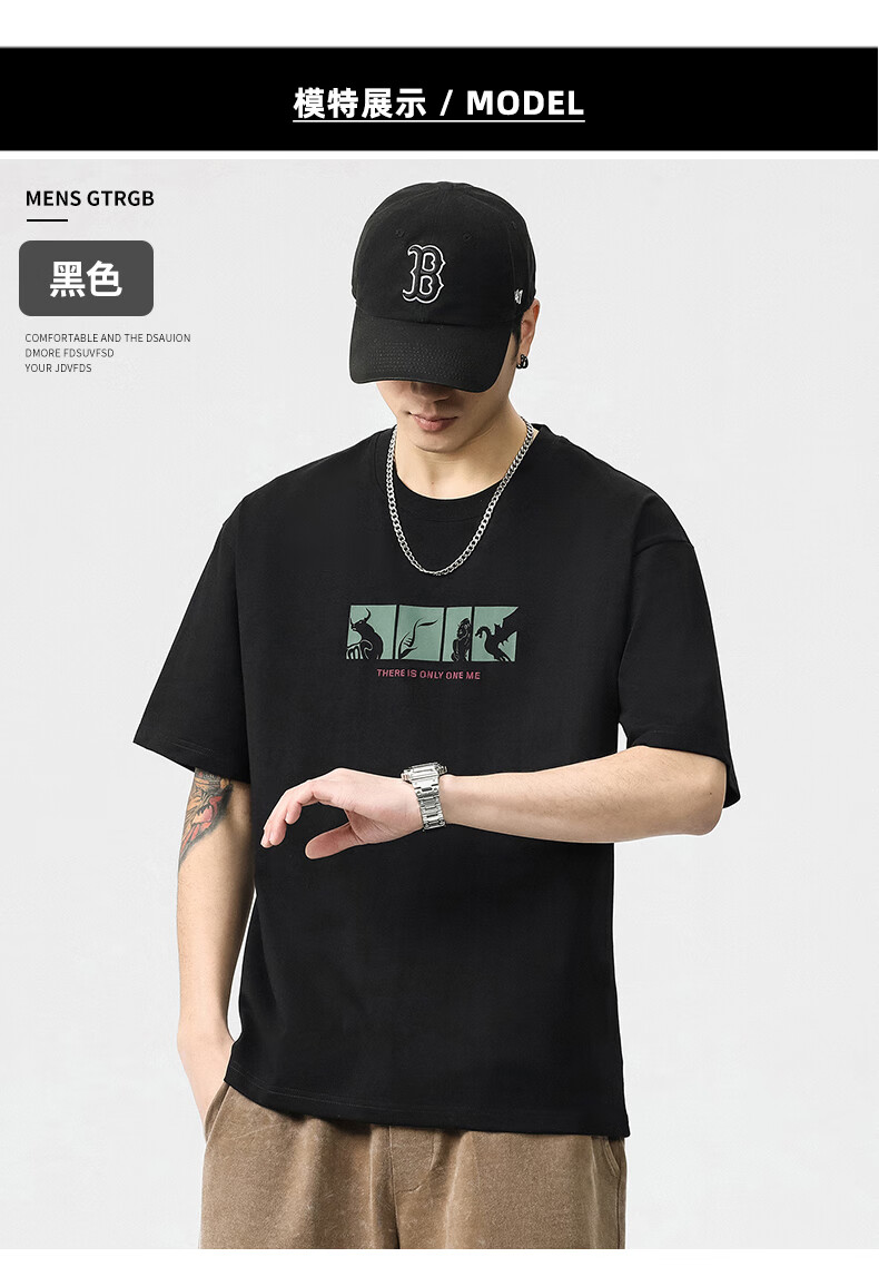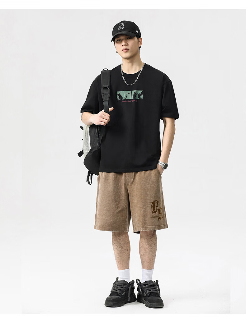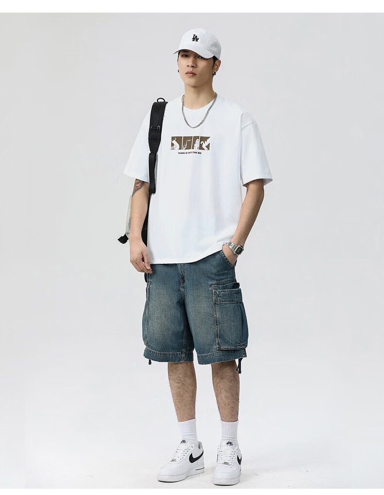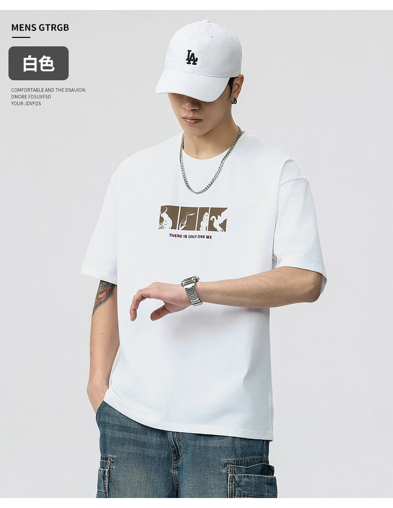 JEEP SPIRIT短袖t恤男夏季新款宽松冰丝五分袖印花男士半袖圆领休闲上衣 8105灰杏色 L