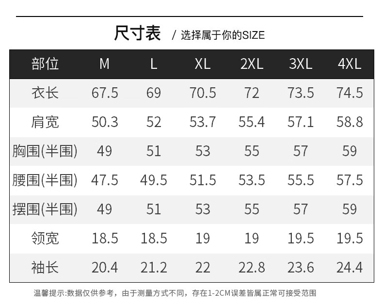 Size (cm) 42 44 46 48 50