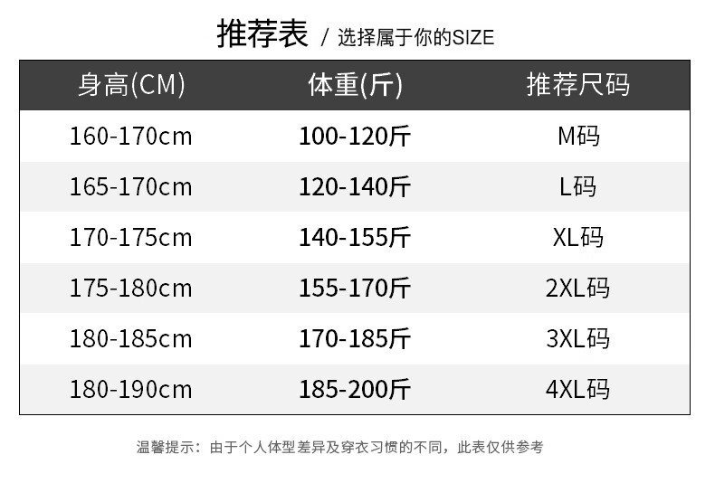 China (cm) 160-165/84-86 165-170 / 88-90 167-172 / 92-96 168-173 / 98-102 170-176 / 106-110