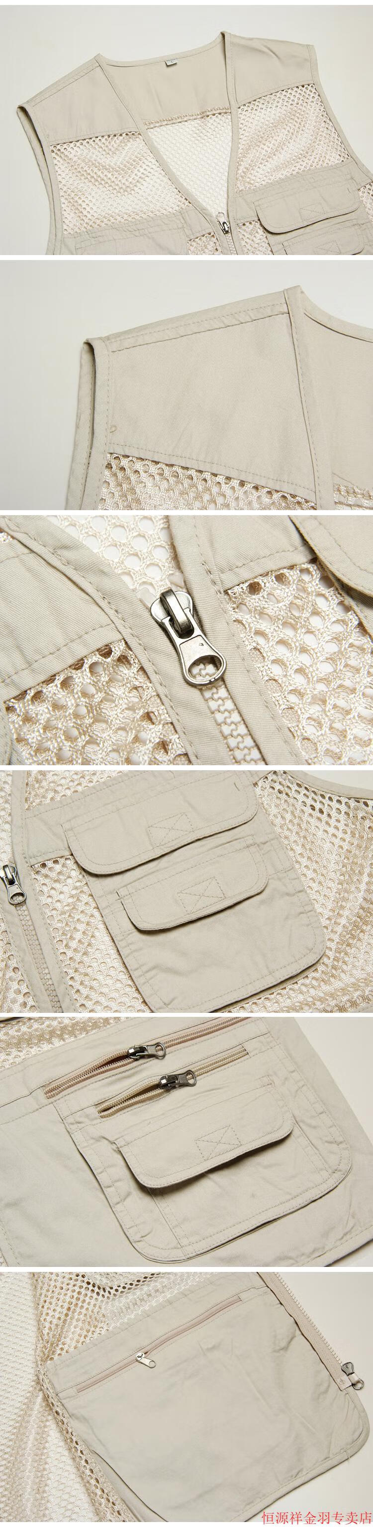恒源祥夏季中老年纯棉马甲男速干透气薄款网眼多口袋马夹摄影钓鱼坎肩男 61-网眼薄-米色 XL(建议穿130斤-150斤)