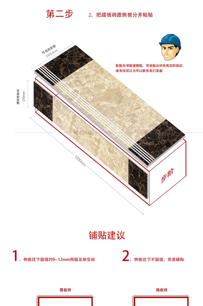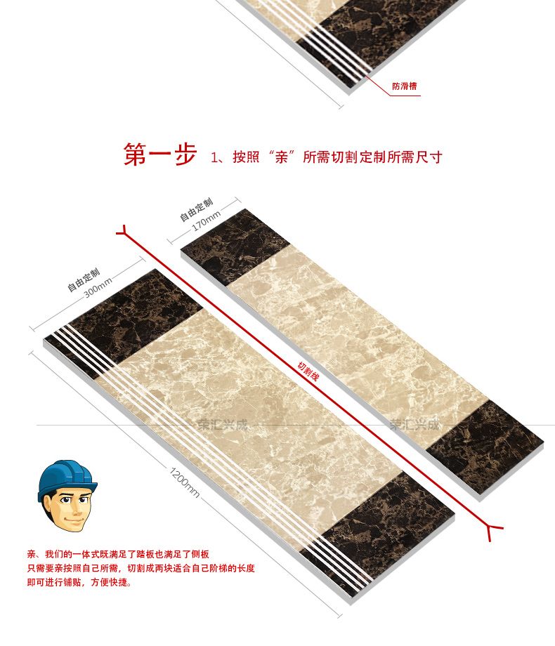 Meikejie integrated stair step bricks 1.2 meters villa non-slip wear-resistant imitation marble step bricks 1.5 soft light 12611 (soft light)