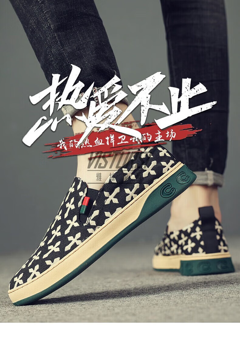 维丝图西 VISTURSI品牌帆布鞋男鞋透气鞋百搭懒人鞋男老北京布鞋潮鞋男一脚蹬休闲鞋 黑色 39